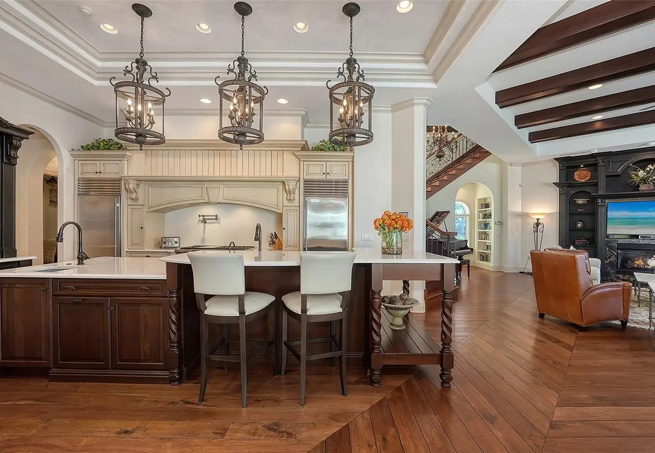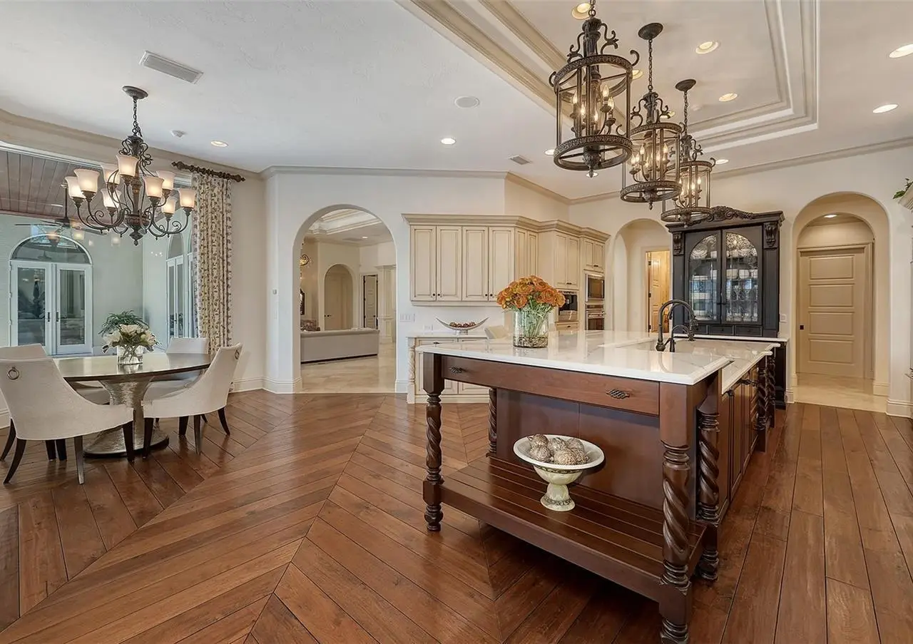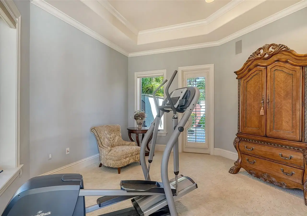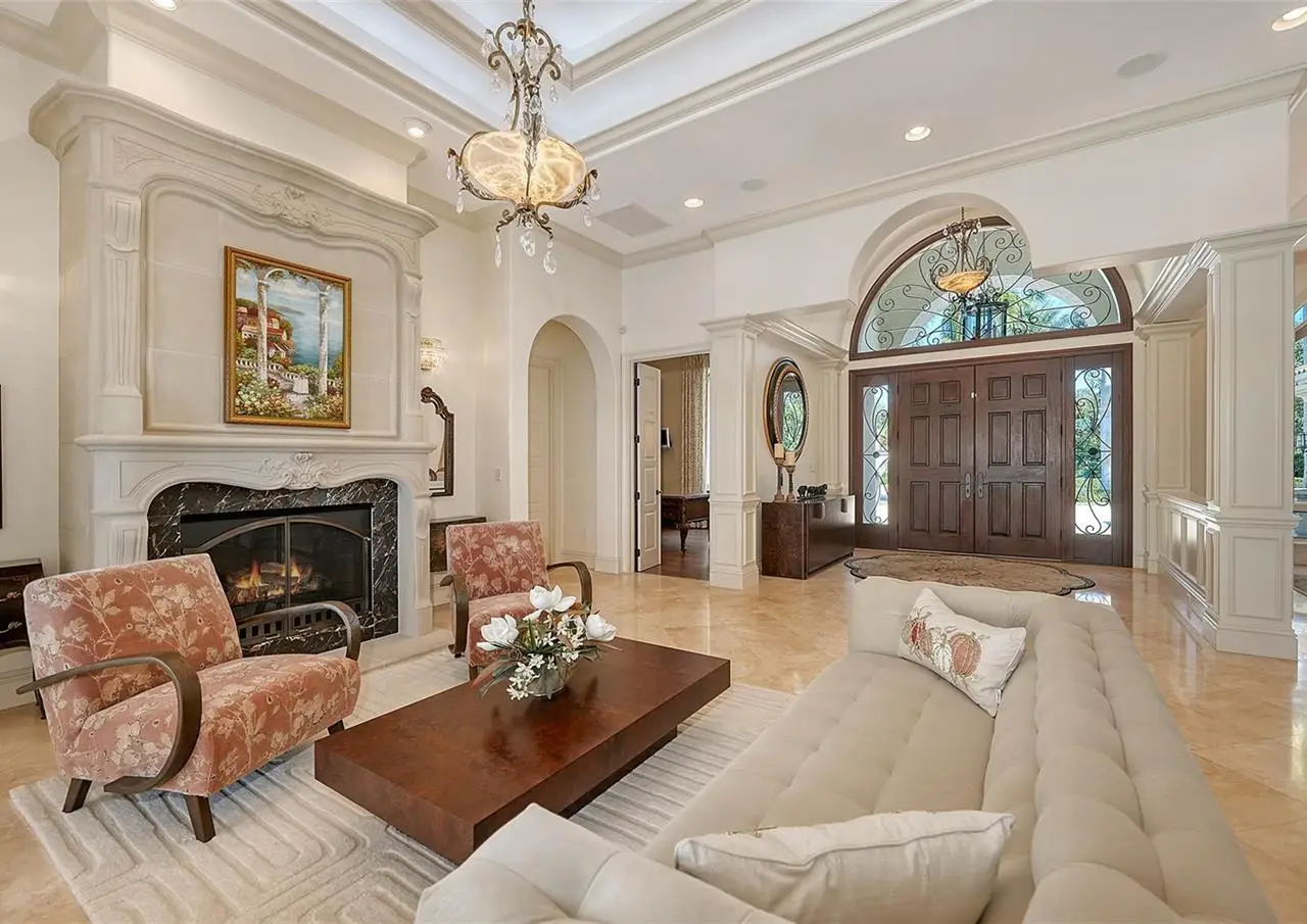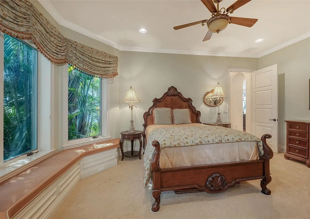 Inside the gates of University Park Country Club in the coveted enclave of Knightsbridge, this notable residence pairs timeless architecture with thoughtful modern UPDATES. Set on ¾ acre and the largest lakefront lot in the Park, the home enjoys complete privacy with sweeping water views and backdrop of the golf course in the distance. Built by one of Sarasota’s premier builders, the home is distinguished by an open-air infinity pool and spa (RE-SURFACED AND NEW TILE), fountains, a detached gazebo, and landscaping groomed to the hilt. The interior with travertine and walnut-plank flooring and custom millwork throughout is a testament of the finest craftsmanship. The everlasting finishes are enhanced with freshly painted walls, updated window treatments and other refinements throughout. The chef’s kitchen is a true centerpiece, recently enhanced with new quartz countertops. Custom cabinetry, a Butler’s Pantry and premium appliances include a six-burner Wolf range, separate wall oven, two Sub-Zero refrigerators, three dishwashers, and a built-in Miele coffee bar—ideal for entertaining on any scale. For those who pine for excellence in construction and everlasting elegance – the talent in this craft of fine carpentry has become more precious with time. The first-floor primary suite features custom closets, updated lighting and electronic shades, a dramatic fireplace, Anderson doors to the pool, and access to a private courtyard. Second level, accessed by ELEVATOR or a grand staircase, you’ll find a theater room for 8, a large bonus room with built-in media wall, full bar, sumptuous guest suite and a covered terrace. Additional highlights include a side entry 4-CAR AIR CONDITIONED GARAGE plus golf cart bay and a separate air-conditioned storage room. A whole house GENERATOR, water filtration and RO, smart lighting system, newer aluminum fencing to secure the entire rear side boundary lines, screened and full outdoor kitchen with stone fireplace, and updated audio system. This is resort-style living in one of Sarasota’s premier gated country club settings that continues to enjoy a reputation of the finest (optional) golf, tennis and racquet sports around. Social mixes and club dining is part of the lifestyle. Appreciate the unequivocal convenience to University Park’s shopping mecca nearby, fine dining, SRQ International Airport and downtown Sarasota just a short 20 minute drive.