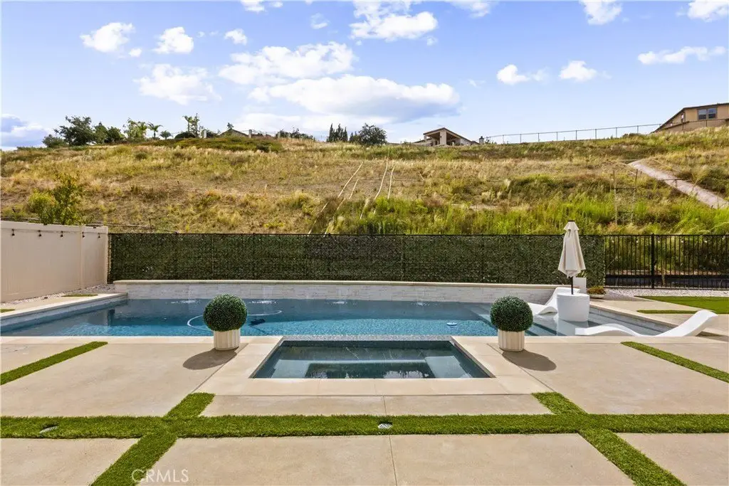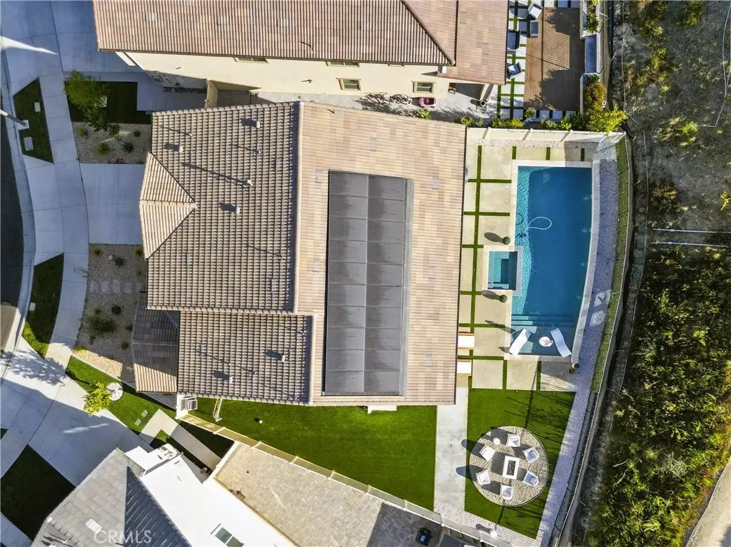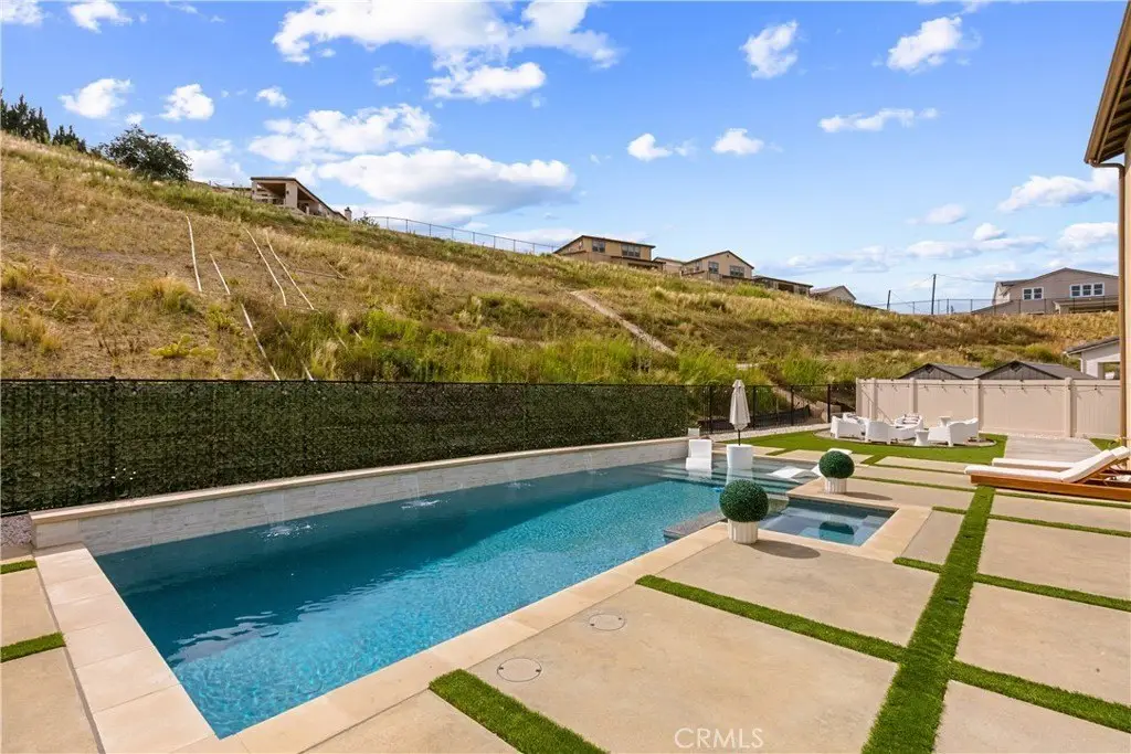 Modern Luxury with over 300K in Designer Upgrades & Resort-Style Backyard! Welcome to this brand-new, meticulously upgraded 4-bedroom home—with potential for a 5th bedroom—where the sellers spared no expense in the design studio. Every inch of this home exudes style and quality, from the stunning custom tile work on the stairs, bathrooms, and kitchen, to the beautifully curated lighting throughout. The heart of the home is the chef’s dream kitchen, featuring top-of-the-line Monogram appliances, an expansive island, and a spacious walk-in pantry, 6 burner stove with griddle and warming light, smart oven, and built-in refrigerator/freezer. The open-concept design flows effortlessly into the great room and out through stacking sliding doors to the covered California room, creating a seamless blend of indoor and outdoor living. Upstairs, a large loft provides flexible space for a media room, office, or additional lounge area. Each bedroom is generously sized, and the layout offers versatility for a growing family or multi-generational living. Step into the oversized backyard oasis, complete with a sparkling pool and jacuzzi, baja shelf, waterfalls, sleek fire pit lounge area, and plumbing ready for an outdoor shower—perfect for relaxing or entertaining in style. This home is not only stunning but smart and efficient, featuring paid solar with 2 battery banks, dual EV chargers, and energy-conscious systems throughout. Why wait for new construction when this move-in-ready masterpiece is available now? Come experience luxury, comfort, and cutting-edge efficiency in one incredible home. Schedule your private showing today!