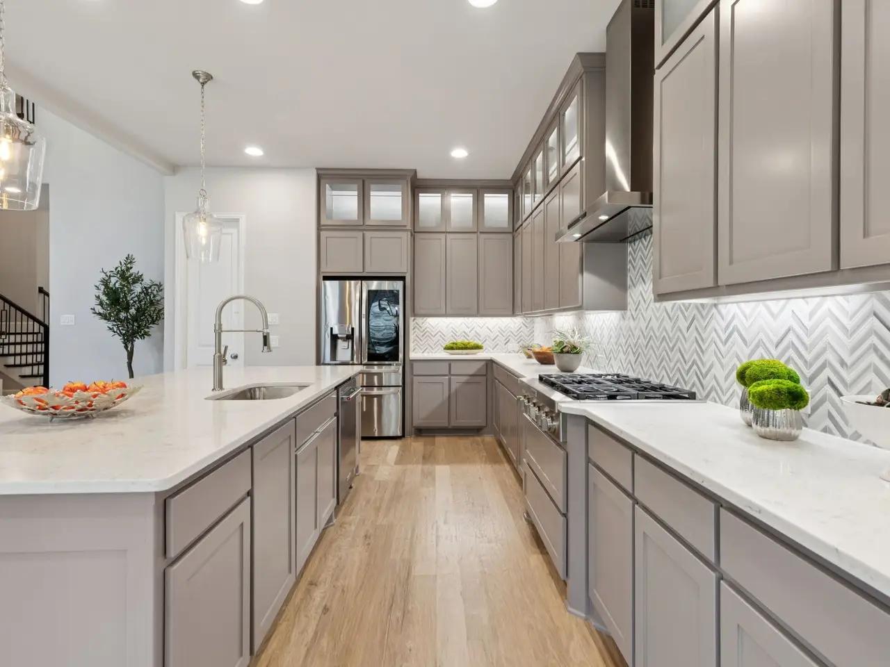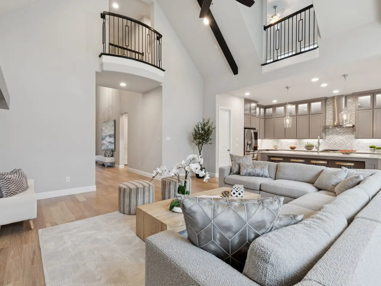 Amazing opportunity perfectly positioned in the coveted community of The Grove! This home has been meticulously maintained, and the entire first floor now boasts new hardwood floors and a brand-new kitchen island. The kitchens open layout spills effortlessly into the family and dining room, creating one spacious, light-filled hub thats tailor-made for entertaining. The secluded primary suite feels like a private resort, featuring a spa-inspired bath with a deep soaking tub, an oversized glass-enclosed shower, and a spacious walk-in closet. The first floor also hosts a secluded guest suite with its own en-suite bath and generous walk-in closet. The house also has a private study ideal for working from home. Upstairs, youll find two well-appointed bedrooms plus a generous game room that opens directly into an adjoining media room perfect for movie nights or game-day gatherings. The home is complemented by a three-car tandem garage, offering ample space for vehicles and storage.