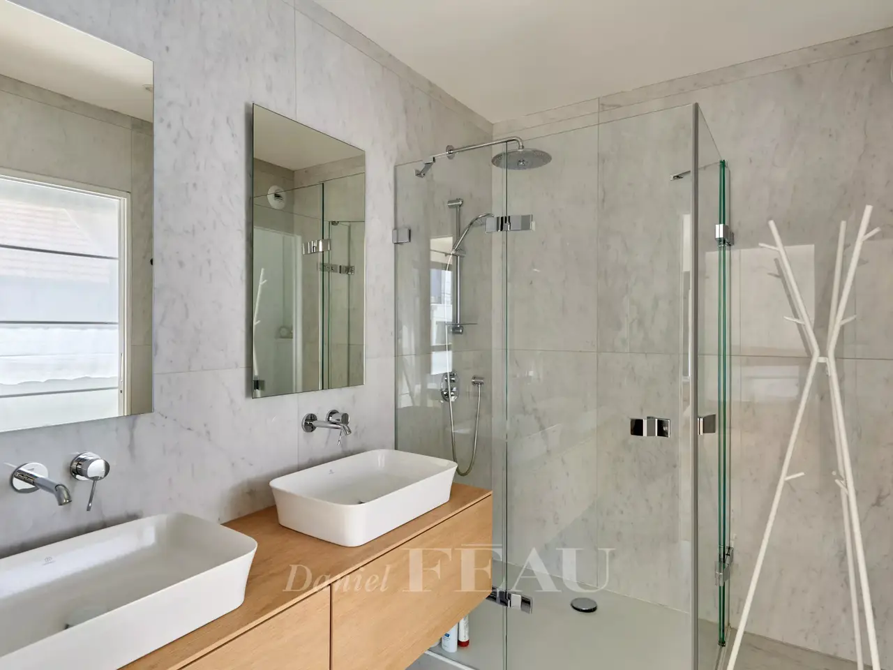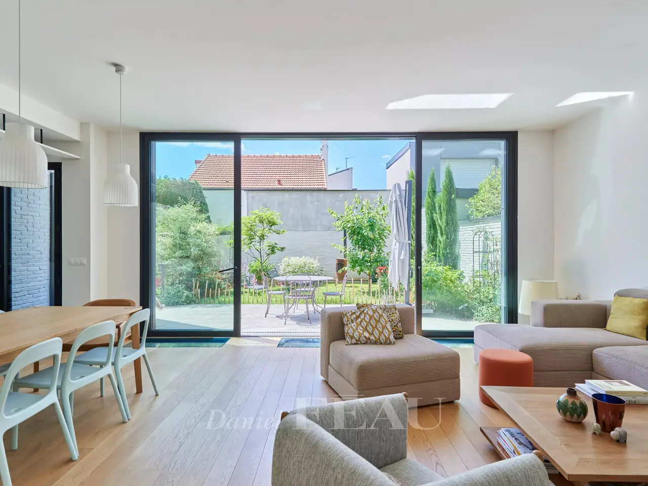 In a green bower, nearby Vanves train station, architect house dating from 2022, offering 284 sqm of living space and a garden-terrace space of 62 m². On ground floor, the entry leads to a separate and equipped kitchen, a spacious living room opening onto the garden, a suite and its shower room, a study and a separate wc ; on the upper floor, four bedrooms, three shower rooms and a separate wc on the landing. In the basement, a utility room, a living room, a fitness room, a pantry and a technical space.