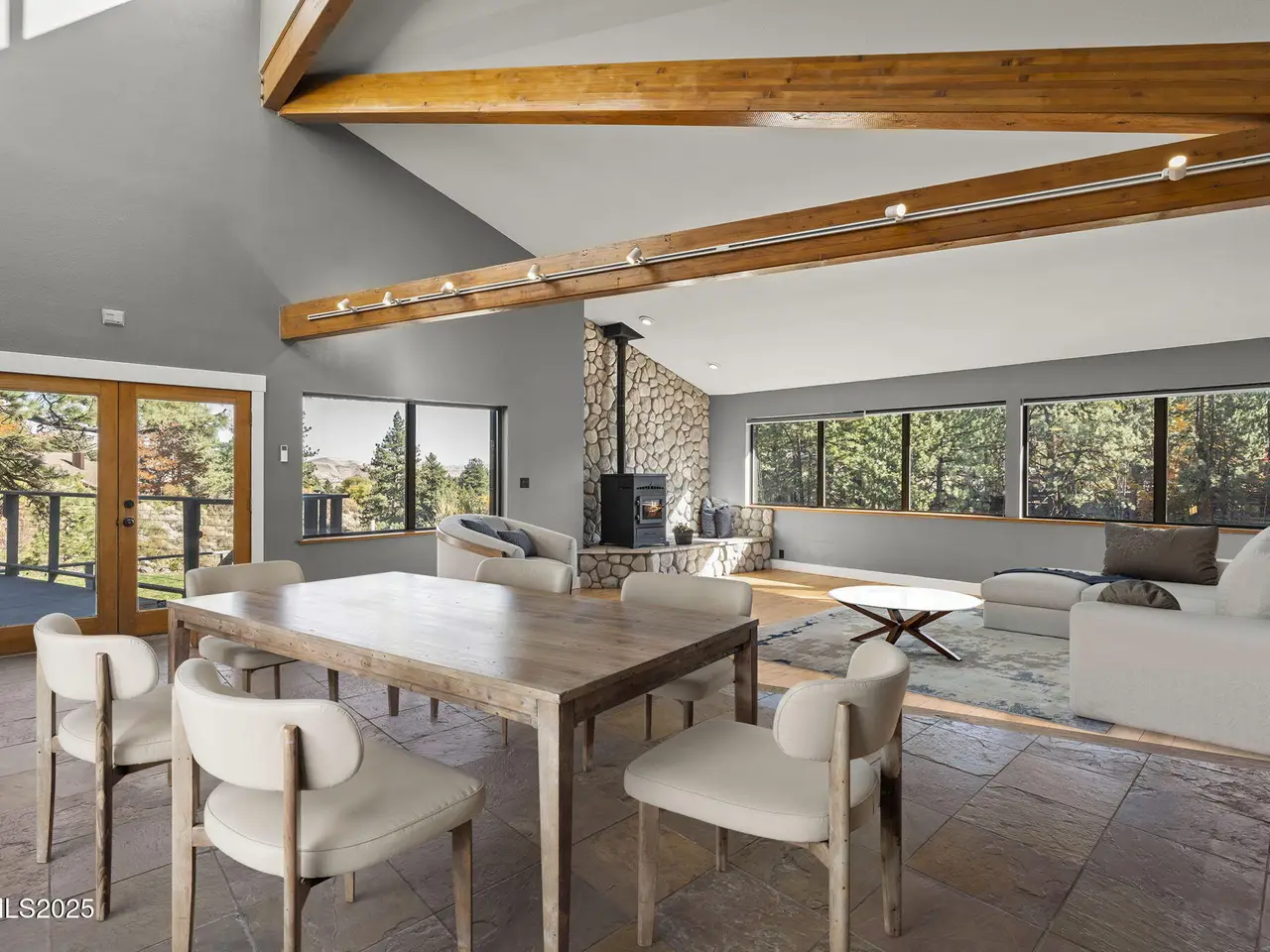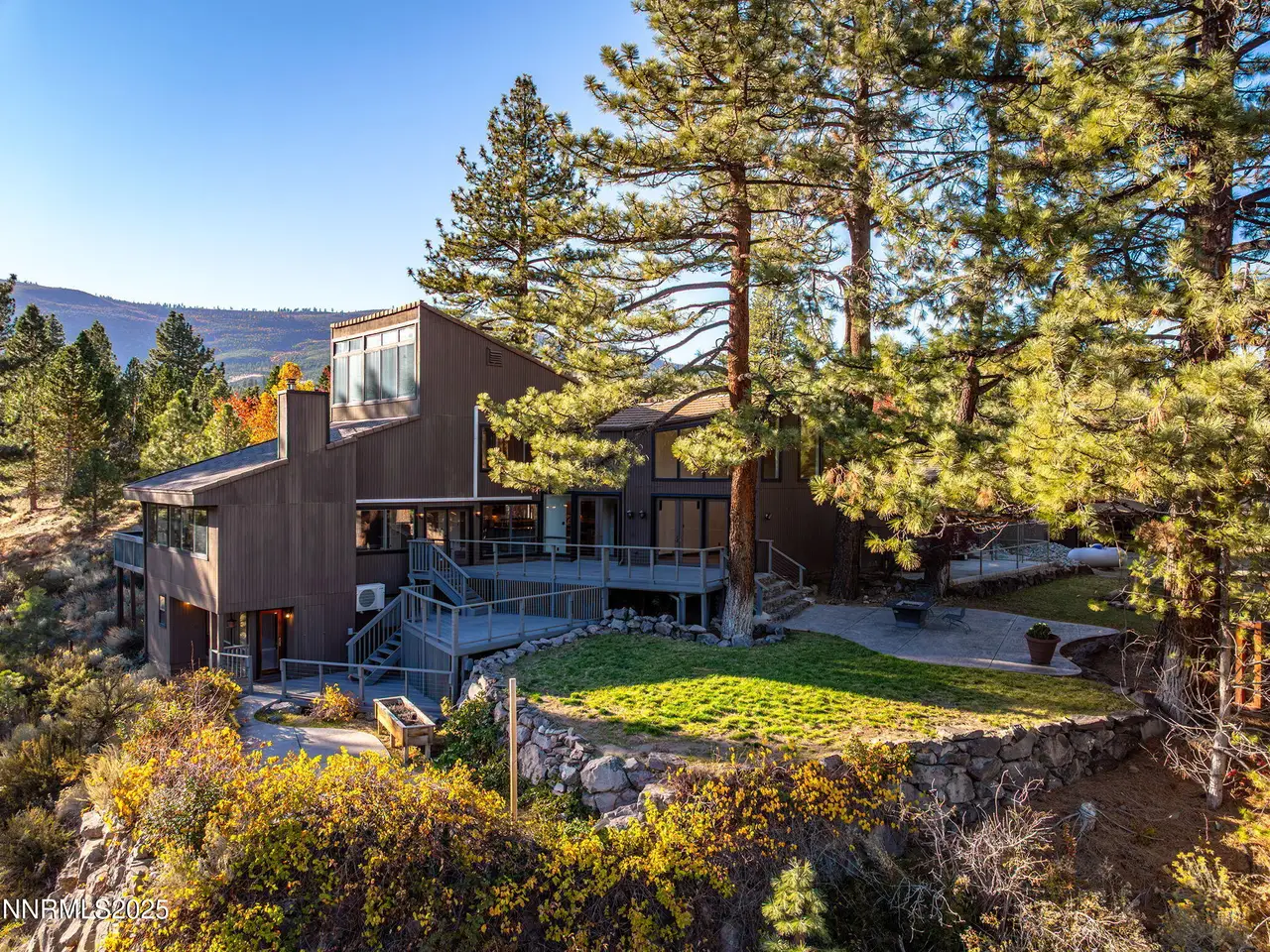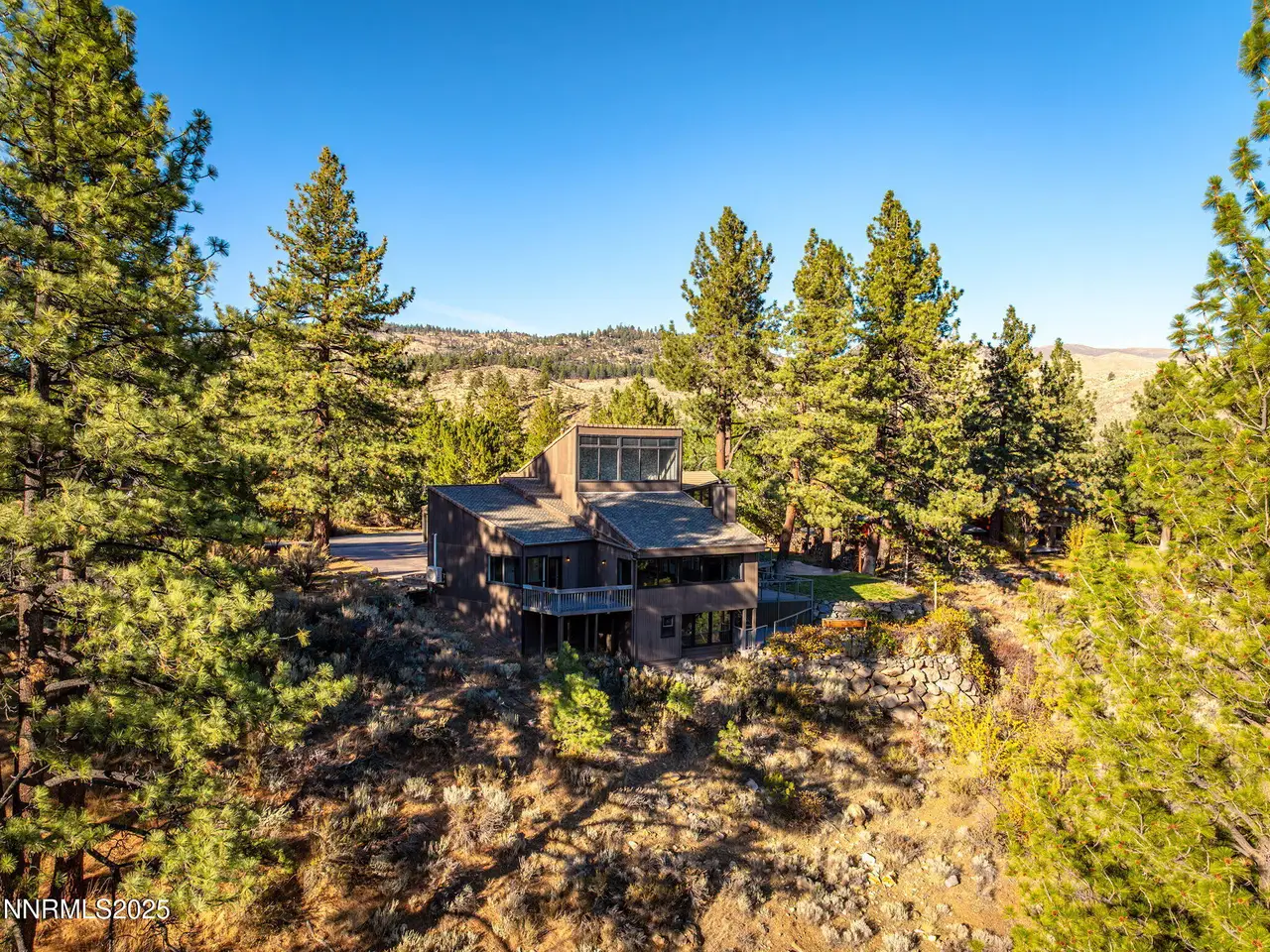 Stunning Contemporary Mountain Retreat set on 1.45 Acres! Nestled among the pines in beautiful Verdi, Nevada, this custom-built 4-bedroom home offers a perfect blend of luxury, comfort, and nature. Enjoy majestic valley views and seasonal Sunrise Creek just below, this property is a true serene retreat just minutes from Reno! Inside, the open floorplan showcases soaring ceilings and light-filled living spaces designed for both relaxation and entertaining. The chef's kitchen features custom cabinetry, massive dual islands, natural stone countertops, and a professional 6-burner range—an ideal setting for culinary creativity! With garage space for up to 6 cars, there is also plenty room for all your recreational vehicles and toys. There is a dog run and a detached utility garage too! Additional rooms provide flex space for a 5th bedroom, a gym, office, crafts, or hobbies! Outdoor living areas including multiple decks and a stone veranda invite you to unwind and enjoy the peaceful natural surroundings. Additional bonuses include- No HOA, Nevada tax structure, just a short drive to Lake Tahoe and ski resorts!