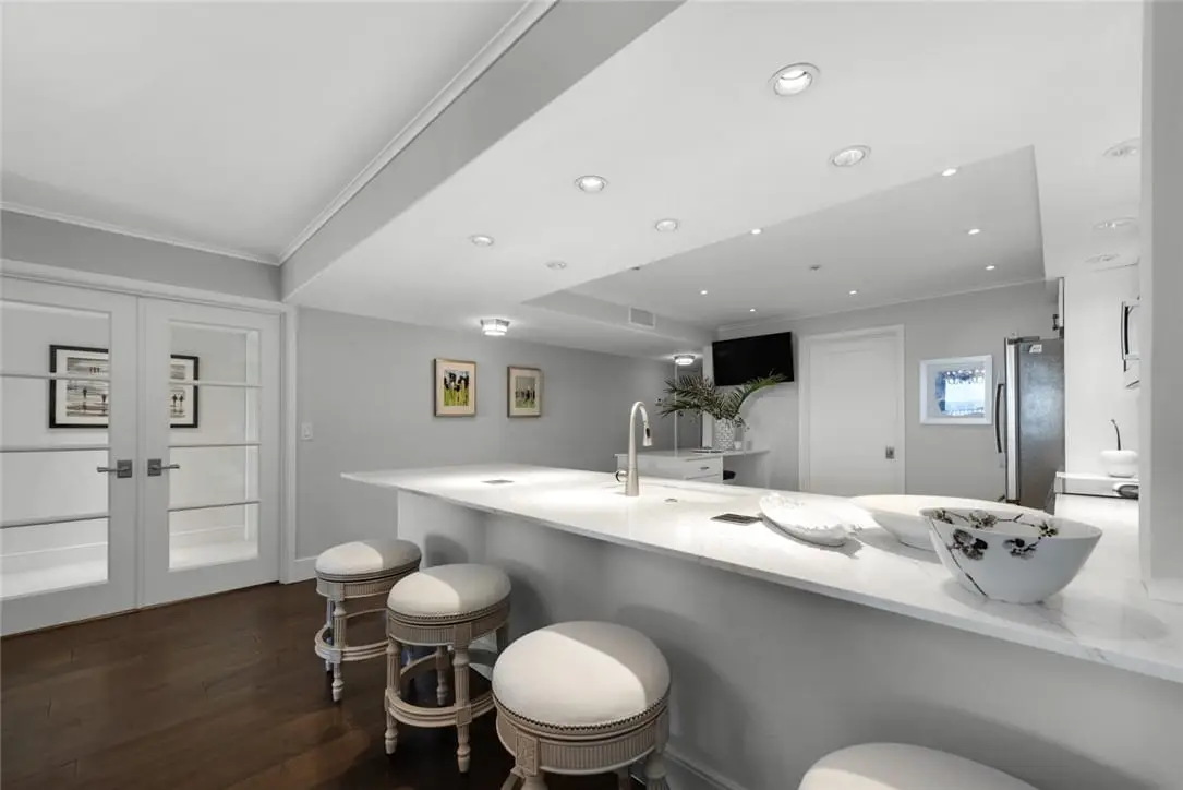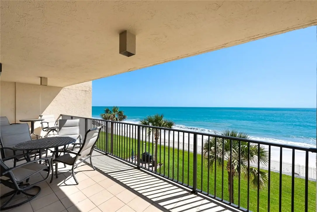 Experience the epitome of luxury with this oceanfront condo! Elegantly designed throughout. The modern kitchen features bright cabinetry, Quartz counters, marble floors & stylish recessed lighting. A bar area with a marble counter & wine cooler. The primary bedroom offers stunning ocean views & access to a oceanfront balcony. Den/office off guest suite. Step out onto the covered balcony & soak in the breathtaking ocean views completing the ultimate coastal living experience. A/C 2023. Amenities include a private fishing pier, pool, game room & exercise room. Sizes approximate/subject to error.