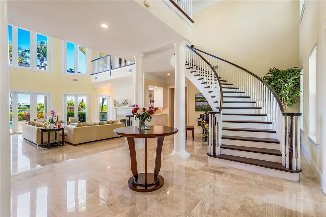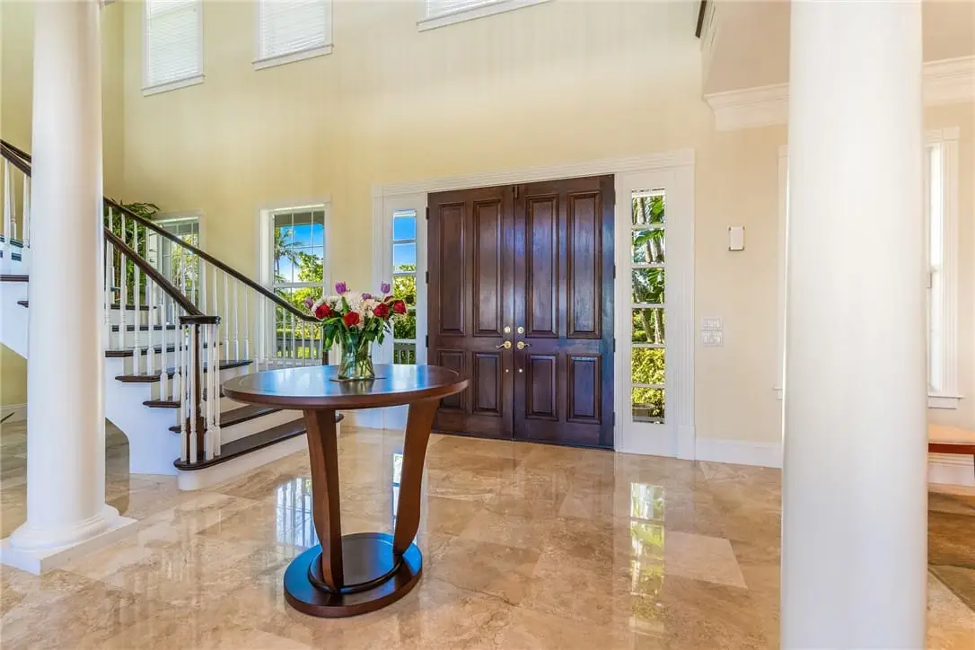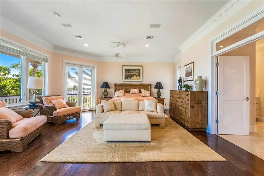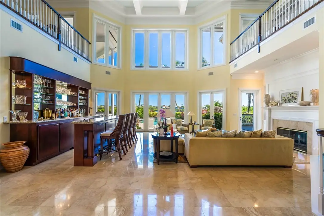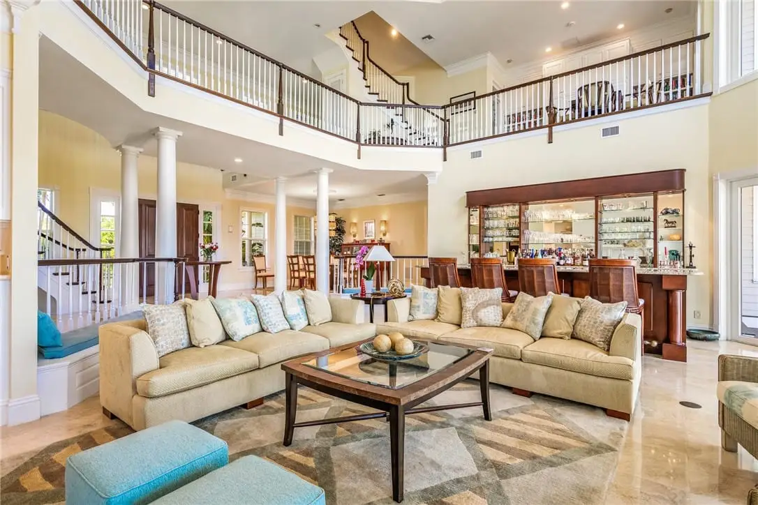 Stunning Key West-style riverfront home w/ 5BR, 6.5BA, & over 5,500 sqft of luxurious living space. Features 2 primary suites, formal living, dining, & library, plus an exercise room & 2 utility rooms. Set on an extremely private 145x250 lot w/ water surrounding. Vast views from a 250' dock (water, electric, & 2 lifts). Pool, summer kitchen. 3-car garage & incredible outdoor space perfect for waterfront living. Experience unparalleled luxury in this one-of-a-kind estate. Sizes are approx/subj to error.
