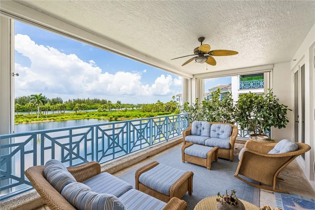 Elegant condo offers unobstructed views of Indian River Intracoastal waterway. Beautifully finished w/Saturnia marble floors in Living Area, custom built-ins, crown moldings, custom window treatments, gas fireplace. New kitchen quartz counter tops, new top of the line appliances, buffet bar, interior painted 2020. New AC units in 2024. Electric roll patio screens, private elevator entry, 2 Car AC garage. Heated pool & fitness room across from Clubhouse. Deeded Beach Access. Seller paid the $35,000 assessment for Exterior Painting, new roof plus the Clubhouse. Incorrect Sq. ft. in tax record.