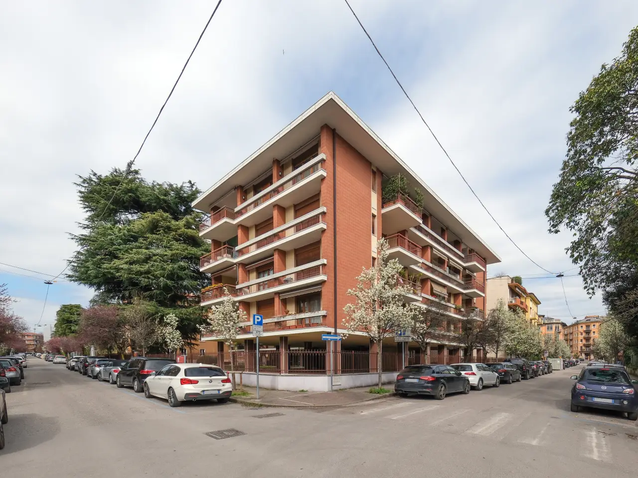 In an elegant and refined condominium context in the exclusive Borgo Trento district, a bright and fantastic apartment of generous dimensions is offered for sale with its terraces and balconies. The property is located in a strategic area being close to the city center and is convenient to all services. The apartment is located in a very suggestive condominium being surrounded by greenery with also a nice private internal parking and is composed of: an entrance hall, a large and bright living room with large terrace, large dining area connected to a large eat-in kitchen with attached laundry / bathroom, a long corridor that houses the wardrobes and a closet, 3 large bedrooms and two bathrooms with windows. The presence of large windows along the perimeter of the house makes it very bright at all hours of the day. A large cellar and a double garage complete the property. The finishes, even if original from the time, are very elegant, alternating parquet floors with marble floors, some shutters are electric, presence of air conditioning and central heating.