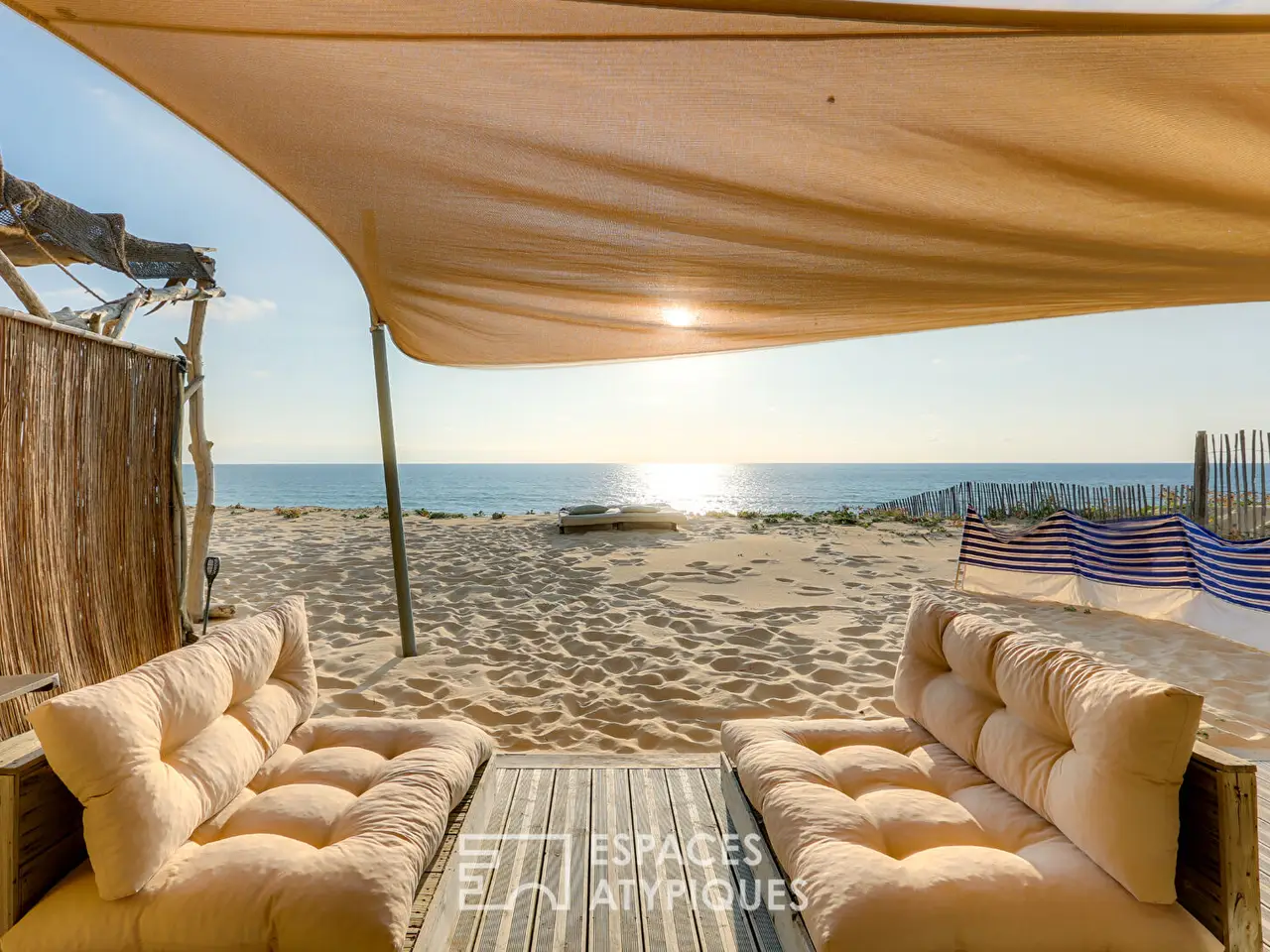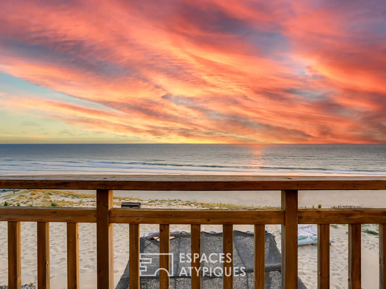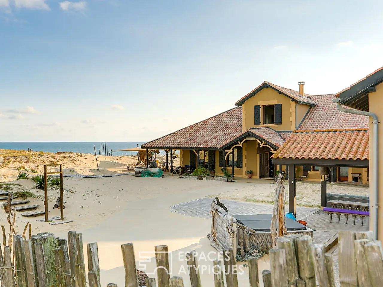 On the front line of the dune, facing the Atlantic Ocean, this iconic property in Vieux Boucau consists of two houses, completely renovated with care and authenticity. This rare property privatizes more than 3600 sqm of dune. It offers an exceptional living environment with direct access to the beach where the rhythm of the waves accompanies each day. A unique address on the Landes coast made for lovers of poetic and inspiring living spaces.The property, with its characterful architecture and eclectic decor, combines charm and authenticity.The main house, built at the end of the 19th century, offers 265 sqm of generous volumes. The living rooms open onto the sea horizon, combining original parquet floors, noble materials and vintage touches. A vast living room with fireplace is dominated by a porthole offering a breathtaking view of the ocean. The discovery continues towards a retro kitchen equipped with solid wood. The four bedrooms, all unique, display a singular charm and amenities designed for comfort.The second house, measuring over 100 sqm, is more intimate and can accommodate friends or family in complete autonomy: a vast living room opening onto the kitchen extends onto a welcoming terrace. The sleeping area upstairs is arranged around a straw hut revealing five sleeping areas.Each house displays its own identity while maintaining overall harmony.Outside, the chic cabin spirit is expressed through furnished terraces, lounge areas, and panoramic balconies. With its feet in the sand, the garden naturally continues the beach, offering a setting for absolute relaxation. In the evening, subtle lighting enhances the facades and creates a peaceful, bohemian atmosphere.With its exceptional location, its characterful renovation, and its unique atmosphere, this property combines discreet luxury, authenticity, and the art of living by the sea. An atypical property that could become a primary residence, vacation home, or high-end rental project.REF. 12325EALDAdditional information* 16 rooms* 5 bedrooms* 2 bathrooms* 4 shower rooms* Outdoor space : 3381 SQM* Property tax : 1 985 €Energy Performance CertificatePrimary energy consumptiond : 205 kWh/m2.yearHigh performance housing*A*B*C*205kWh/m2.year6*kg CO2/m2.yearD*E*F*GExtremely poor housing performance* Of which greenhouse gas emissionsb : 6 kg CO2/m2.yearLow CO2 emissions*A*6kg CO2/m2.yearB*C*D*E*F*GVery high CO2 emissionsEstimated average annual energy costs for standard use, indexed to specific years 2021, 2022, 2023 : between 3610 € and 4950 € Subscription IncludedAgency feesThe fees include VAT and are payable by the vendorMediatorMediation Franchise-Consommateurswww.mediation-franchise.com29 Boulevard de Courcelles 75008 ParisInformation on the risks to which this property is exposed is available on the Geohazards website : www.georisques.gouv.fr