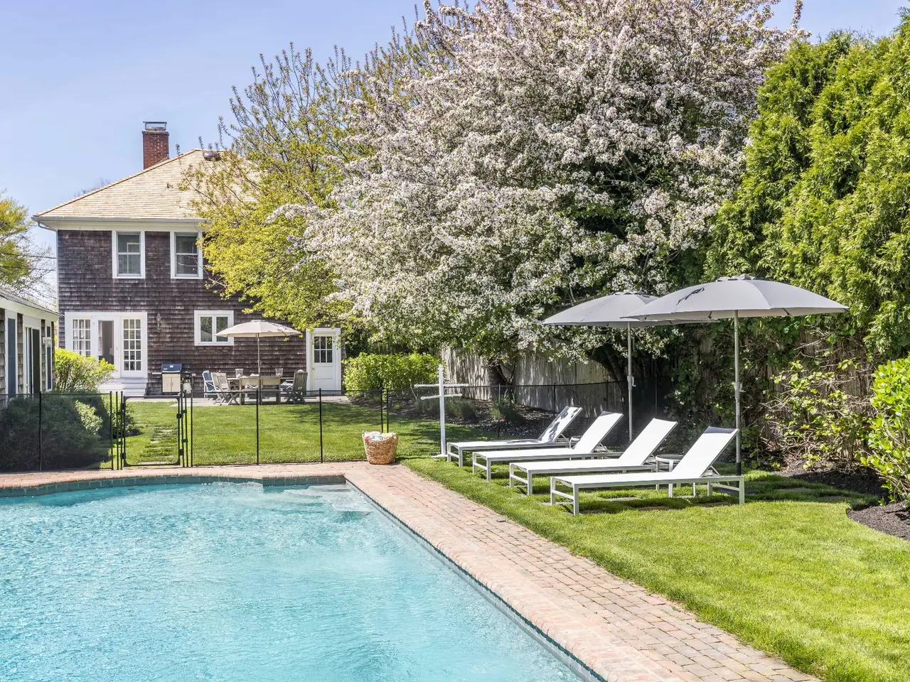Nestled on a quiet street just steps from the heart of Southampton Village, this beautifully updated home combines charm with convenience. The light-filled interior features modern updates throughout, with two separate sitting areas leading to the kitchen and dining room overlooking the backyard. On the second floor, the house features three spacious bedrooms and two baths. The backyard is beautifully landscaped and private, including a spacious patio for outdoor dining and relaxation and a heated gunite pool. The property includes a charming pool house, complete with a comfortable sitting area and a full bathroom. This serene retreat offers the perfect blend of comfort, style, and summer fun, with easy access to world-class restaurants, boutique shops, and pristine ocean beaches-all just a stone's throw away.