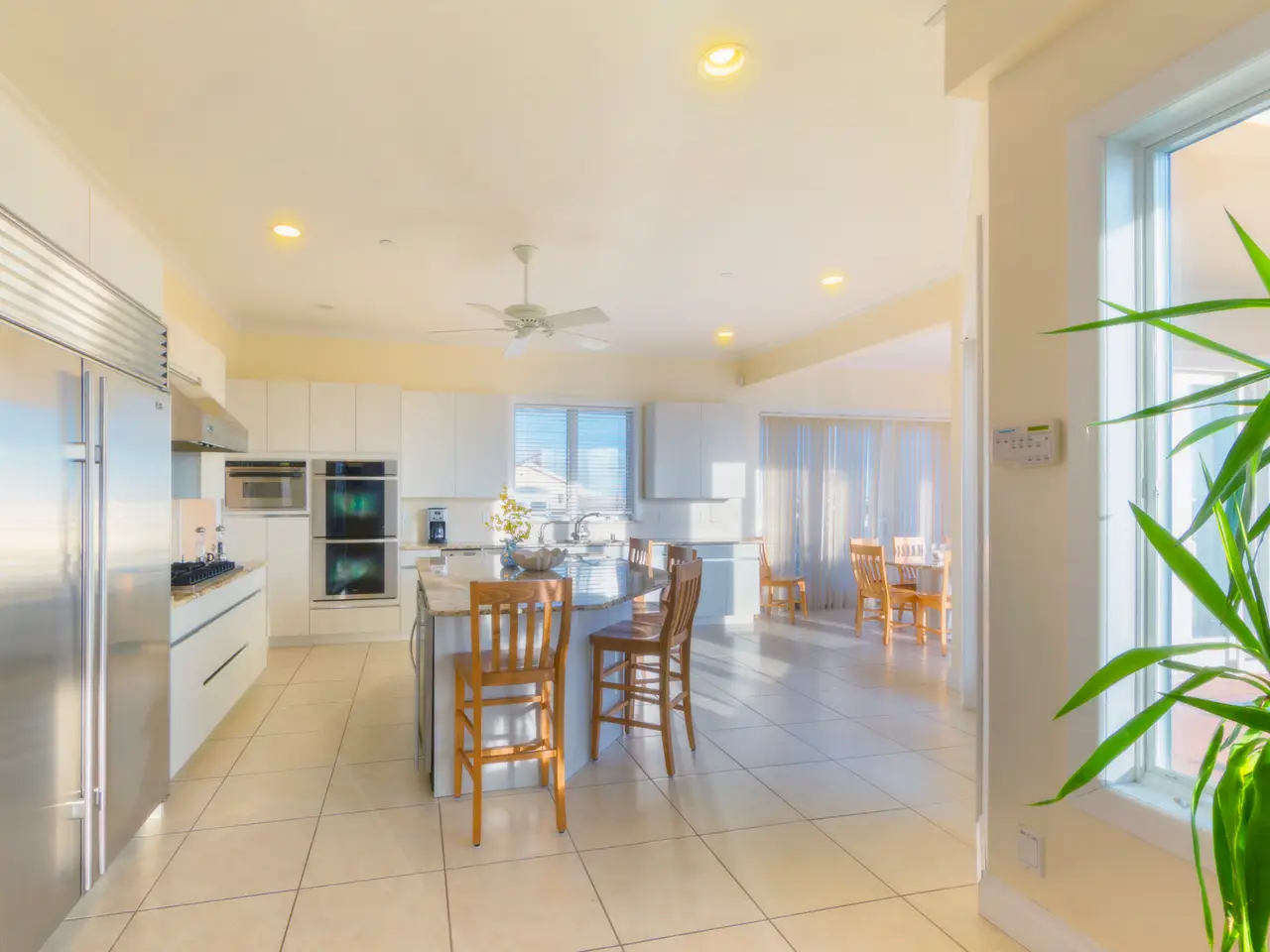 Fabulous ocean views from almost every room in this contemporary style home featuring eight bedrooms, six full and one-half baths. Spacious open living areas showcase dramatic ocean views through oversized windows and sliding glass doors. Amenities include a large gourmet kitchen, two dining areas, multiple balconies, marble bathrooms, central air, and two fireplaces. Outdoors there's a large deck that is great for entertaining, and a heated pool on the ocean side with a private walkway to the beach.