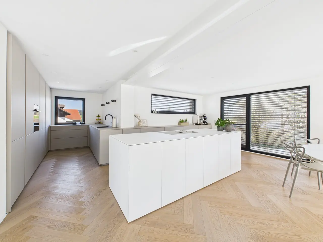 A place that provides a sense of security, radiates clarity and offers space for new stories: This high-quality renovated detached house in Vilsheim / Langenvils combines rural idyll with modern living culture. Nestled in the tranquil natural surroundings of the Vils valley, yet close to the city, this home has a very special aura - harmonious, stylish and authentic. The property was extensively and sensitively renovated in 2021/22. The approx. 209 m² living space comprises six spacious rooms that impress with their open floor plans, natural lighting and clear design language. Fine materials and harmonious color schemes create a warm, inviting atmosphere. The custom-made kitchen by a carpenter with modern appliances and high-quality surfaces is not only a functional focal point, but also a meeting place. Floor-to-ceiling windows seamlessly connect the interior with the exterior - here, life opens up to the garden, to nature, to light. The plot of around 839 m² has been lovingly landscaped: A spacious terrace with fine natural stone, a near-natural swimming pond with wooden deck, outdoor shower and an automatic irrigation system make the outdoor area an oasis of relaxation. The house is also technically impressive with a modern, energy-efficient concept - including photovoltaics, solar support and intelligent control. High-quality windows, smart shading and harmonious fixtures underline the high standards. A well thought-out floor plan, a stylish bathroom with laundry chute, custom-made wardrobes, exposed screed and many other lovely details round off the overall picture. Three outdoor parking spaces and a garage offer ample space for vehicles. The quiet location on the outskirts promises privacy! This house is more than just four walls. It is a way of life. A home that radiates warmth, gives freedom and leaves room for the essentials.