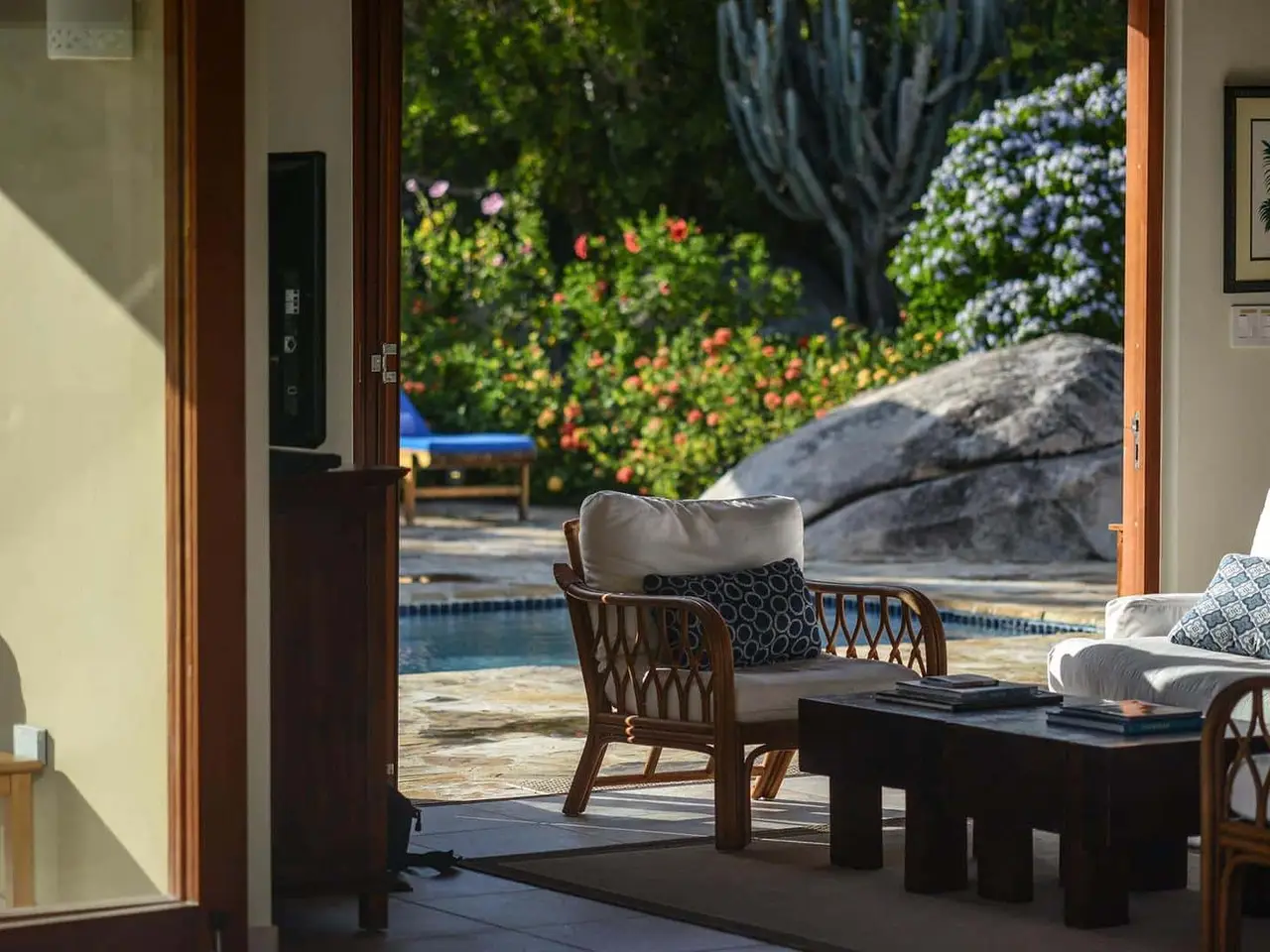 Sun-drenched pool deck