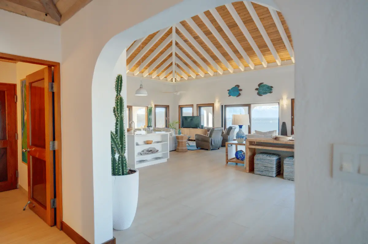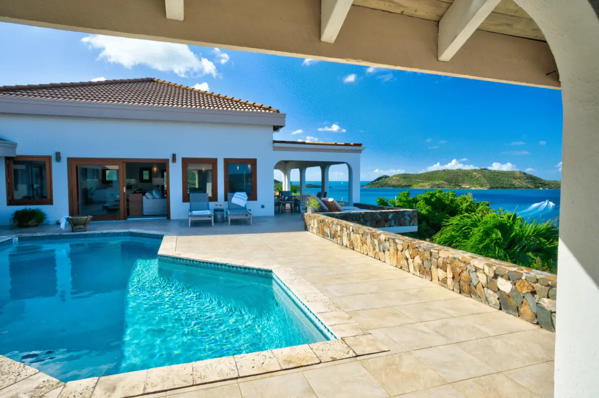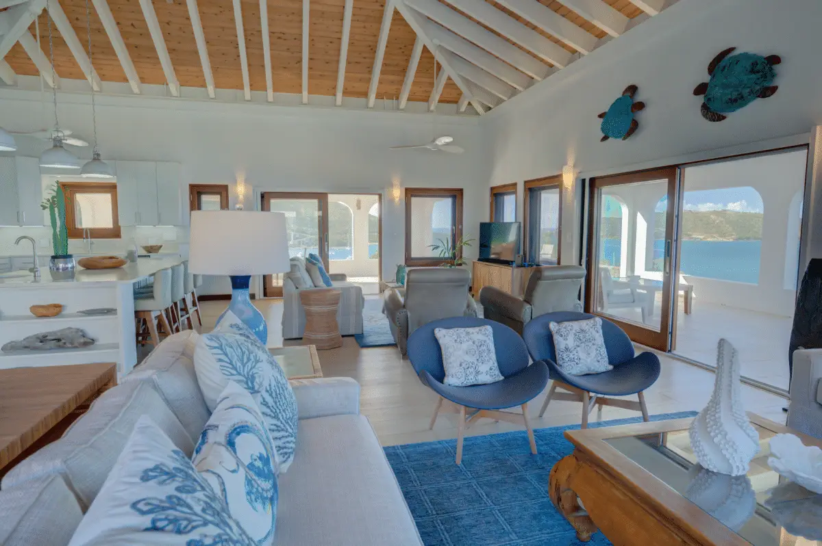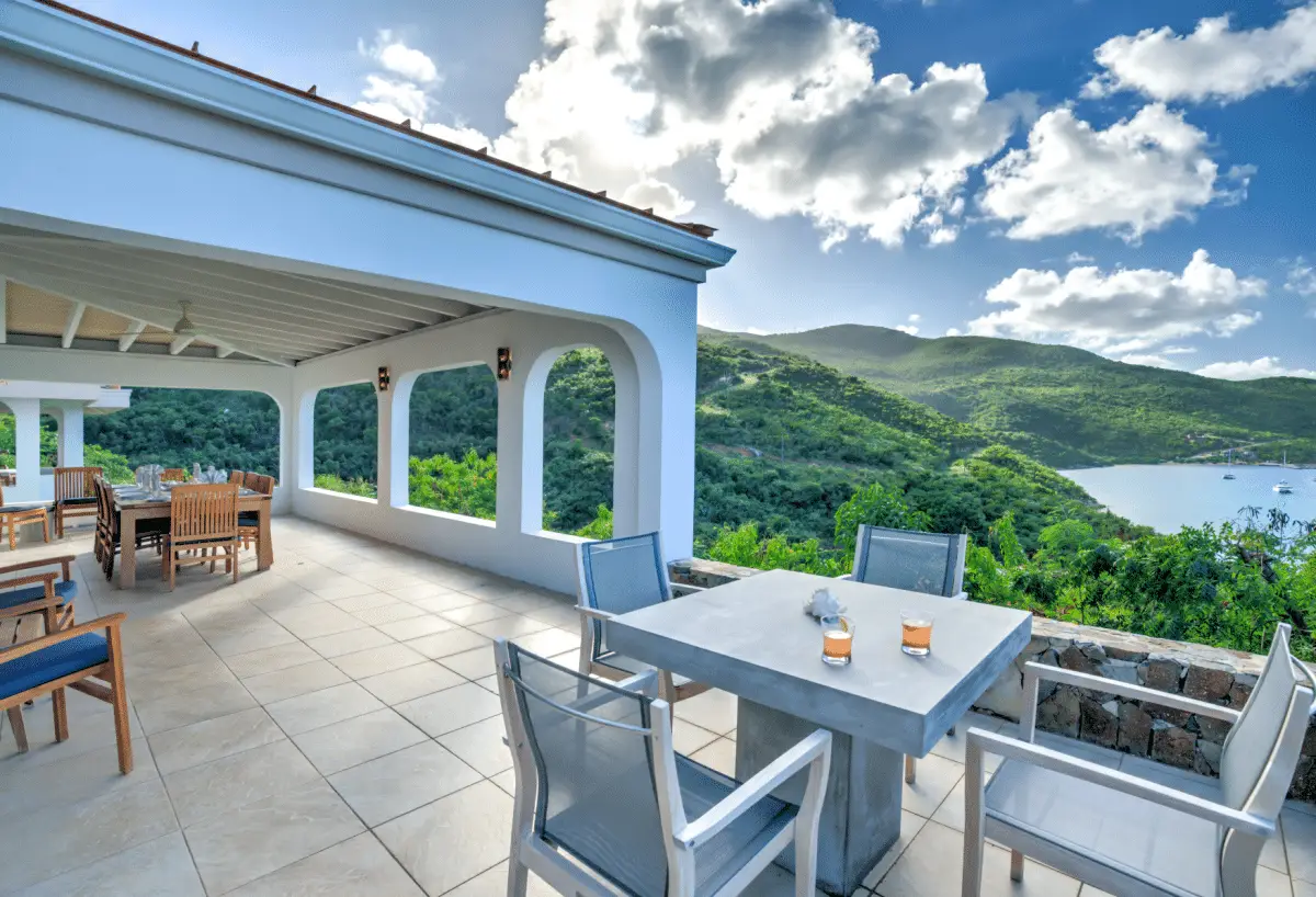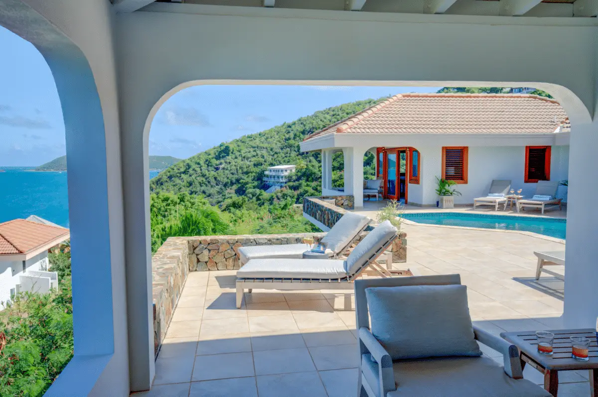Located above Leverick Bay, with the most spectacular view in the North Sound, this beautiful property affords island living in luxury and style. A short drive from the Leverick Bay Marina, Christa Villa is conveniently located near to shops, two excellent restaurants, spa, watersports, and the marina.<br /> <br /> Christa Villa is unobtrusively set at the front of a hillside overlooking the islands of the North Sound Channel. This superb residence was recently renovated and now sets a new benchmark in contemporary living in the Leverick Bay Estate. From its magnificent Great Room and each of the six ensuite bedrooms, there are unobstructed views of the brilliantly blue Caribbean Sea. The vista spans Blunder Bay to the west, Moskito Island, Necker Island, Eustatia, Saba Rock and Bitter End Yacht Club to the east.<br /> <br /> Christa Villa is set on 0.8 acres of freehold land with well-tended, mature tropical landscaping. A short walkway leads from the garage and four-car parking area to the upper level of this beautiful home. Stepping into the Great Room, with its cathedral-ceiling, and magnificent views, there is an undeniable, awe-inspiring WOW-moment. German custom-made mahogany doors frame impact-resistant glass panes that let in plenty of light keeping the room bright and airy.<br /> <br /> The open-plan Great Room encompasses a sleek, modern kitchen, expansive stone-topped island with bar-height seating, a luxurious drawing room, and a relaxed family/TV area. To capitalize on the panoramic view and cool Trade Winds, the Great Room is surrounded by wide, covered verandahs. There is seamless flow from the Great Room to the outdoor dining table on the west-facing verandah, and to the multiple seating clusters, and sparkling swimming pool. The 3,500 square feet of covered space is superbly finished and topped by dramatically high ceilings of pickled white cypress under concrete tiled roof. There is an additional 2,000 square feet of exterior space that includes the swimming pool deck, terraces, and walkways.<br /> <br /> Masterfully designed, the five luxuriously, spacious bedrooms on the upper level are built, so each enjoys amazing seascape views, and has easy access to the pool deck. The free-from pool is centrally located to capture morning, mid-day and afternoon sun, keeping it naturally heated all day. The spacious pool deck is sun-filled year-round and affords plenty of room for lounging.<br /> <br /> A stroll along a path of native stone, accesses the lower level of Christa Villa, where a comfortable studio apartment provides independent living for staff or guests. This apartment is graced by strong breezes and lush garden views. The tranquility of its secluded setting makes it a peaceful retreat.<br /> <br /> Generous landscaping allows the villa to meld unobtrusively into the natural terrain. Set well off to one side of the property is a platform of solar panels that powers the entire property. A mechanical building houses the battery storage for the solar power, a generator, garage and ample storage.<br /> <br /> The North Sound of Virgin Gorda is reputed to be the Billionaire’s playground with exquisite yachts, world class sailing and international regattas commonplace.  The value of Christa Villa capitalizes on the scarcity of available property in the area, and means ownership of increasing property values. With the high demand for accommodations in Leverick Bay, owners benefit from various leasing options, including vacation rentals.<br /> <br /> Leverick Bay Estate, where Christa Villa is located, has a small-town charm. As part of the private estate, its owners and guests enjoy resort amenities including a pristine beach, sun-warmed pool; two excellent restaurants, spa, shops, commissary, private dock and marina. The Virgin Gorda airport and Yacht Harbour are twenty minutes’ drive away while the airport at Beef Island is twenty minutes away by boat.<br /> <br /> &nbsp;<br /> <h3>Additional Details</h3><br /> <strong>Furniture</strong><br /> Modern Contemporary. Jaipur and Beacon rugs were handwoven in India. Furniture coordinated from Blu Dot, Room and Board,  Pottery Barn, Restoration Hardware and other top-of-the-line designers.<br /> <br /> <strong>WiFi</strong><br /> Wireless, high-speed internet is available throughout the Upper and Lower levels and on Terraces and Pool area. Also available is fibre-optic internet, television and landlines.<br /> <br /> <strong>Doors and Windows</strong><br /> German; Custom-made Mahogany;  Glass Panes are engineered specified to hurricane ready specifications.<br /> <br /> <strong>Cabinetry</strong><br /> Custom-made Cabinets and centre island topped with Quartz<br /> <br /> <strong>Solar Power</strong><br /> Solar Panels and battery storage with the capacity to power the entire property.<br /> <br /> <strong>Generator</strong><br /> FG Wilson AC Synchronous Generator with Triple Phase, Automatic Transfer switch. Backup 250KW Diesel Generator<br /> <br /> <strong>Central A/C</strong><br /> Bedrooms have Split AC Units to allow for independent temperature control.<br /> <br /> <strong>Pool</strong><br /> Salt-water pool<br /> <br /> <strong>Landscaping</strong><br /> Multi-Zone drip irrigation system<br /> <br /> <strong>Water</strong><br /> 3 cisterns are located under the Great Room with a total capacity of 45,000 gallons. Property is also fed by government mains for back-up.<br /> <br /> <strong>Laundry</strong><br /> On the Upper Level<br /> <br /> <strong>Sewage/Waste</strong><br /> Traditional Soak-away Sceptic in multi-chambers<br /> <br /> &nbsp;