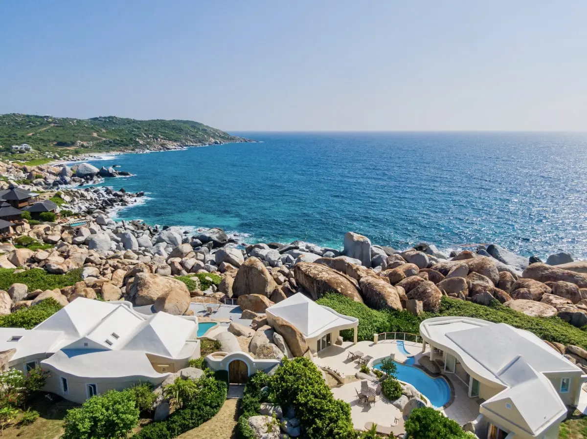 <strong>REDUCED FROM 4.5 MILLION </strong>Water's Edge was constructed in the heart of one of nature's great wonders. Located among the giant granite boulder fields of Virgin Gorda, this is a contemporary Caribbean fantasy home. It lies close to the World famous “Baths” National Park, but in a secluded, quiet and private estate. Any new owner of this unique home will enjoy sharing both the spectacular natural scenery whilst relaxing in deluxe accommodations, in a one-of-a-kind setting for one of the most extraordinary experiences in the BVI.<br /> <br /> Water's Edge was designed so that construction of the house would live in harmony with the natural environment and not distract from the location's spectacular beauty. Tucked away in a cavernous area, the exterior garden walls enclose the villa and you enter through Brazilian hardwood doors to discover the treasurers beyond.<br /> <br /> Once inside, an instant sense of awe is felt as the home is designed around a collection of huge volcanic boulders. The sensation of tranquility is instant as the panoramas of the Caribbean Ocean lure the eyes to embrace the turquoise waters. Water's Edge is uniquely connected with outdoor living as all three of the property's buildings have been constructed to fit amongst the granite rocks. Cream coloured exteriors with white peaked-roofs and orange clay tiles provide soft tones to contrast against the vibrant scenery. Large folding glass doors and picture windows frame the unhindered views while enabling a refreshing breeze to travel throughout the indoor living spaces. The patio and deck afford plenty of space featuring an outside bar area equipped with power points and a spot for an extra fridge. In addition to various hidden spaces for stargazing and sun lounging, when it's time to cool off, the 24ft pool with its unique little river and footbridge are a blessing for a refreshing dip.<br /> <br /> The home is a blank canvas waiting for the personal touches of its new owners to be implemented into the design, furnishings, and decor. The first building contains the kitchen and dining area, with state-of-the-art cooking facilities, sparkling tortoise shell granite countertops and custom wooden cabinetry. This great room offers an ocean view and is flooded by natural light from the floor length folding glass doors, which open to the outer decks. In addition to the luxury, fully equipped kitchen, a central island in the cooking area comprises bar stools and an additional small sink and station for preparing cocktails. A wine fridge compliments the open space where you can serve and entertain your guests relaxing on a unique built-in stone sofa. An expansive pantry with additional kitchen prep area links the great room to the indoor and outdoor shower, bath and laundry areas which are all accessible for pool use.<br /> <br /> From the second building, the expansive windows deliver a dramatic view of the ocean. This room was intended as the main indoor living area, and the design possibilities are endless for any new owner to craft the room with the comforts and amenities they desire. Currently this room doubles as another bedroom with access to the pool bath.<br /> <br /> The third building holds two and a half bedrooms. Both main bedrooms have direct patio access where a plunge pool is situated, while offering seclusion between the boulders and views looking out to sea. Both bedrooms contain king-sized beds, en-suite bathrooms featuring a powder areas for makeup, double sinks, and gorgeous outdoor showers constructed between the boulders. One of the bedrooms is also fitted with a small kitchenette behind double wooden doors and a pass through window, giving the owners a private place for breakfast and other meals if not wanting to use the main kitchen. The eating space is nestled under a covered patio between the bedrooms. The views are spectacular from all areas. This home brings in substantial revenue as a short-term rental.<br /> <br /> This home is perfect for anyone who enjoys entertaining.<br /> <h3>Water's Edge Virtual Tour on Virgin Gorda, British Virgin Islands</h3><br /> <iframe src="https://my.matterport.com/show/?m=yzR6dVx8Puu" width="853" height="480" frameborder="0" allowfullscreen="allowfullscreen"></iframe><br /> <h3>Water's Edge Sun Room Virtual Tour on Virgin Gorda, British Virgin Islands</h3><br /> <iframe src="https://my.matterport.com/show/?m=Hofv3m4QzBW" width="853" height="480" frameborder="0" allowfullscreen="allowfullscreen"></iframe><br /> <h3>Water's Edge Guest Villa Virtual Tour on Virgin Gorda, British Virgin Islands</h3><br /> <iframe src="https://my.matterport.com/show/?m=oEyW842sgRV" width="853" height="480" frameborder="0" allowfullscreen="allowfullscreen"></iframe><br /> <br />