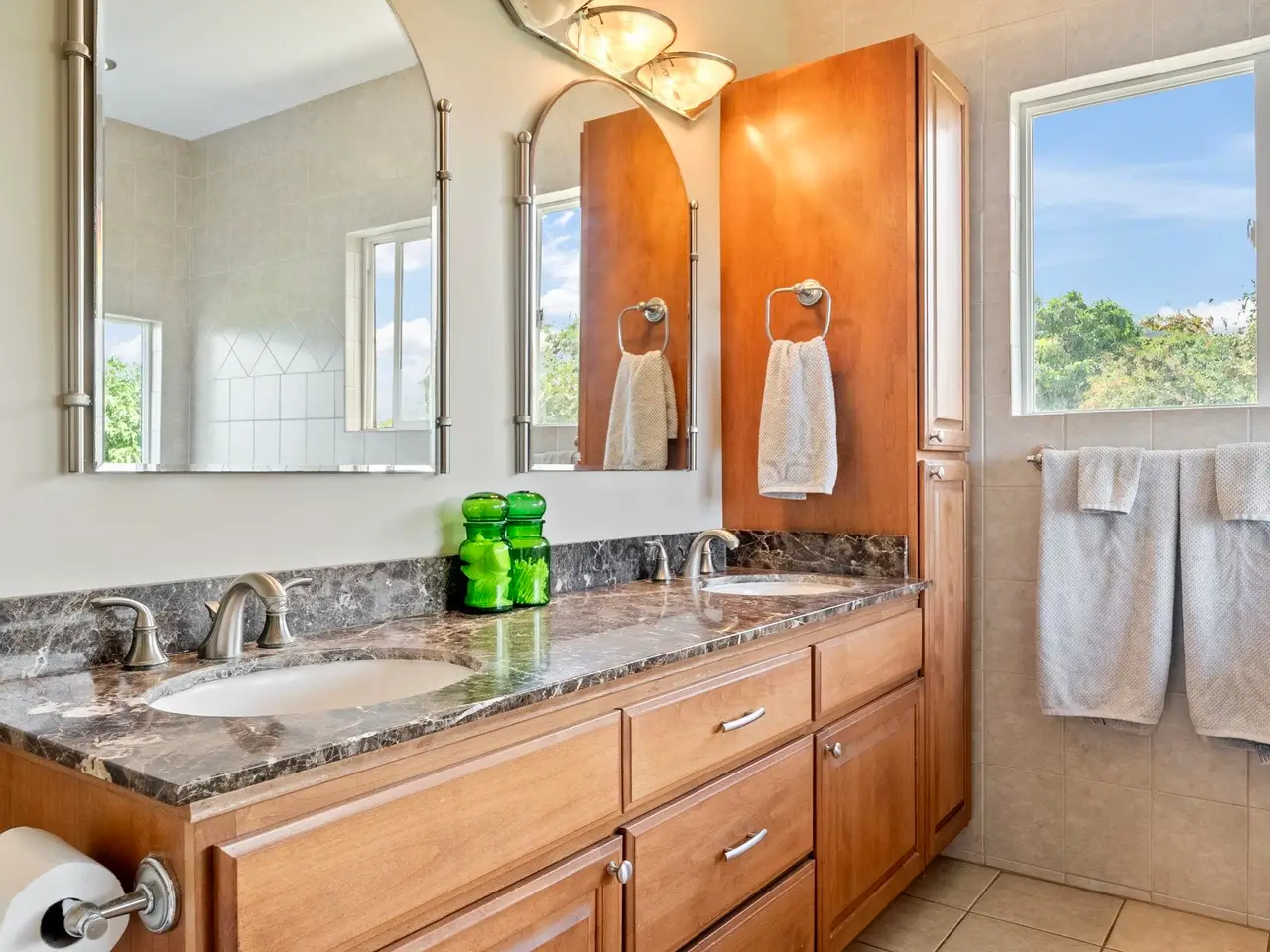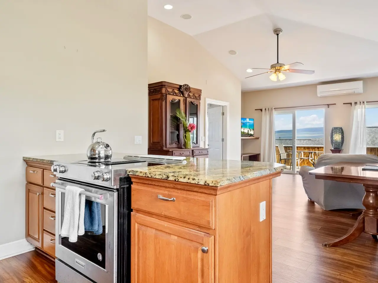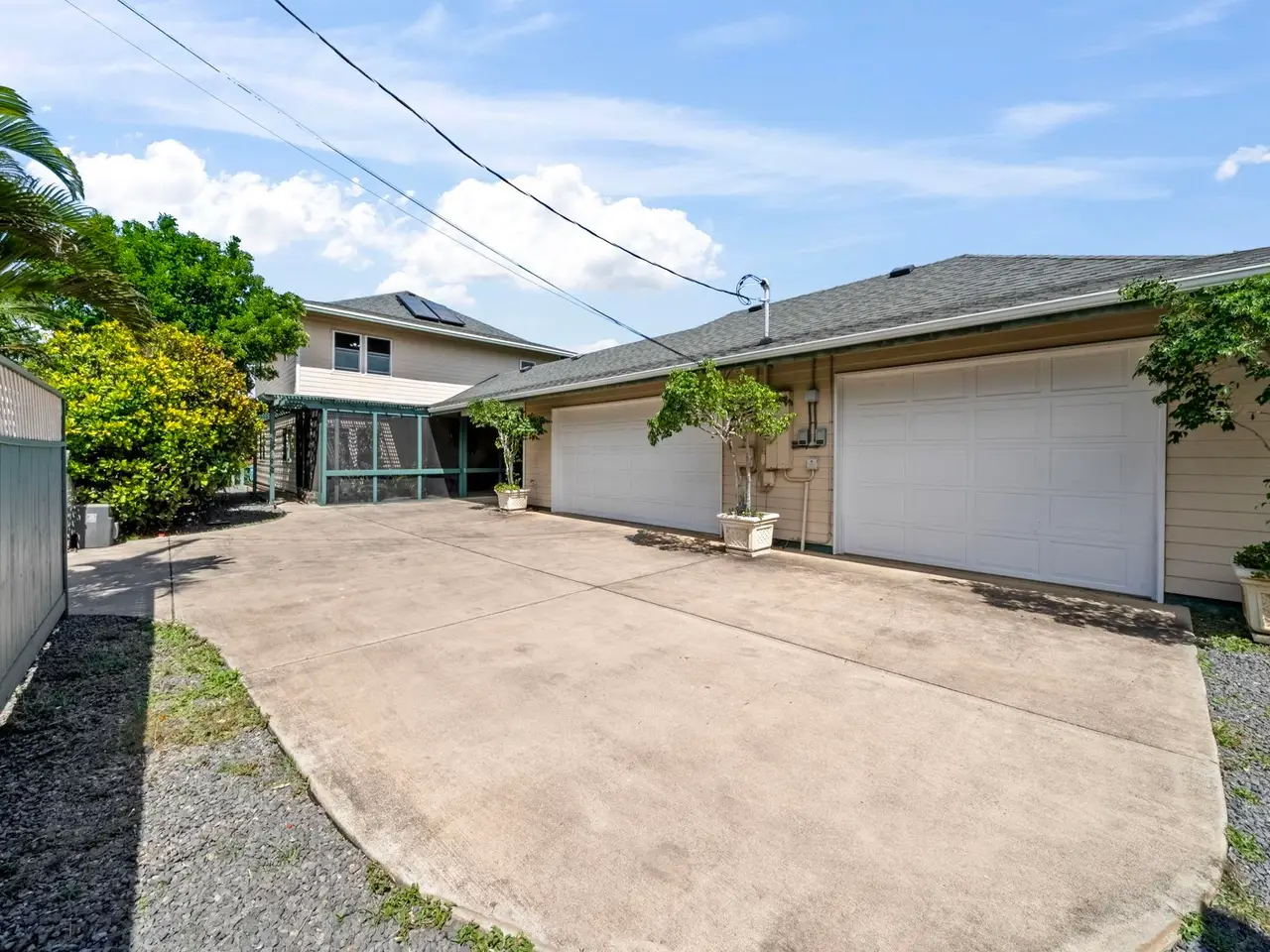 Tucked away in Old Sandhills, you’ll find this amazing gem of a home: beautiful views, updated kitchen and bath, gorgeous luxury vinyl plank floors upstairs, and a spacious downstairs with large bedrooms and a big family room. This home also features a wonderful attached Ohana. Incredibly private, tucked at the end of a flag lot. There’s a beautiful covered, enclosed screen porch with a Koi pond, a three-car garage and a work shed, plus 16 owned photovoltaic panels. Close to great surf and kiteboarding spots on the North Shore, This truly is a wonderful home in Wailuku.