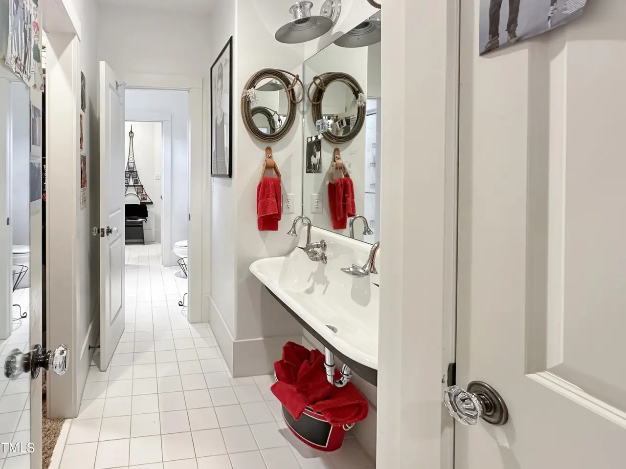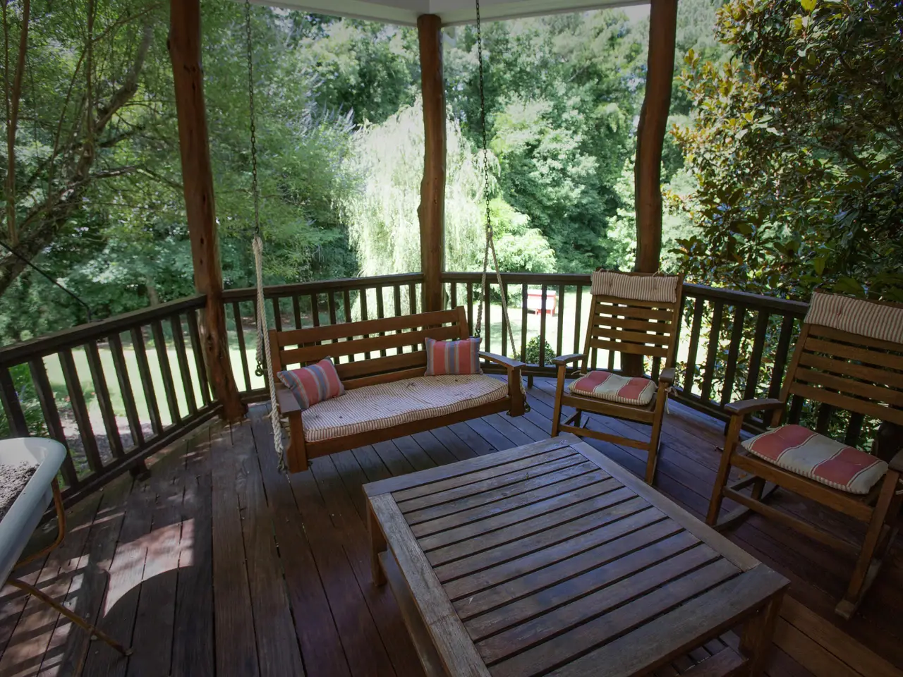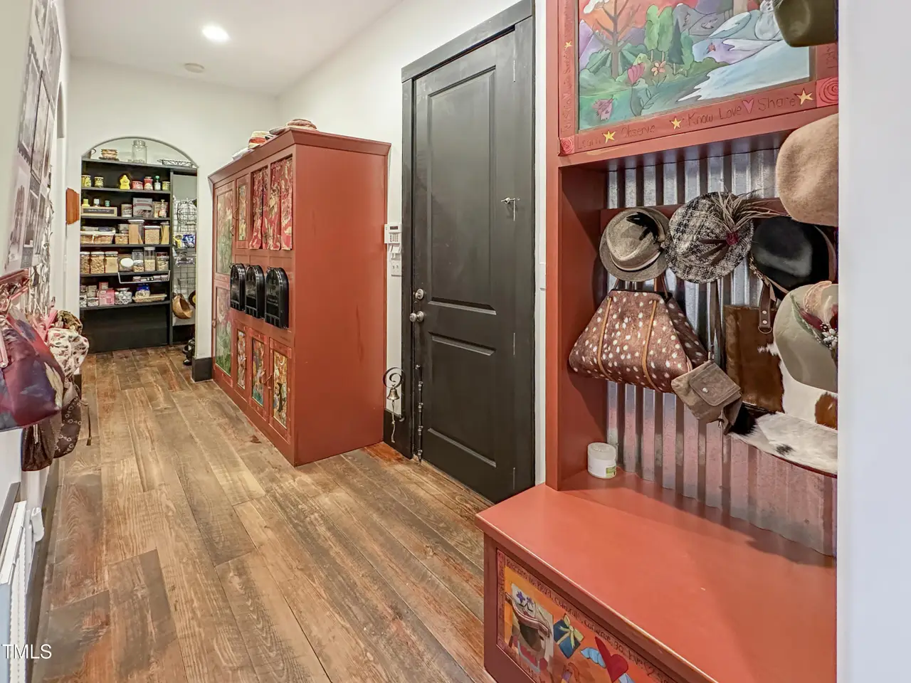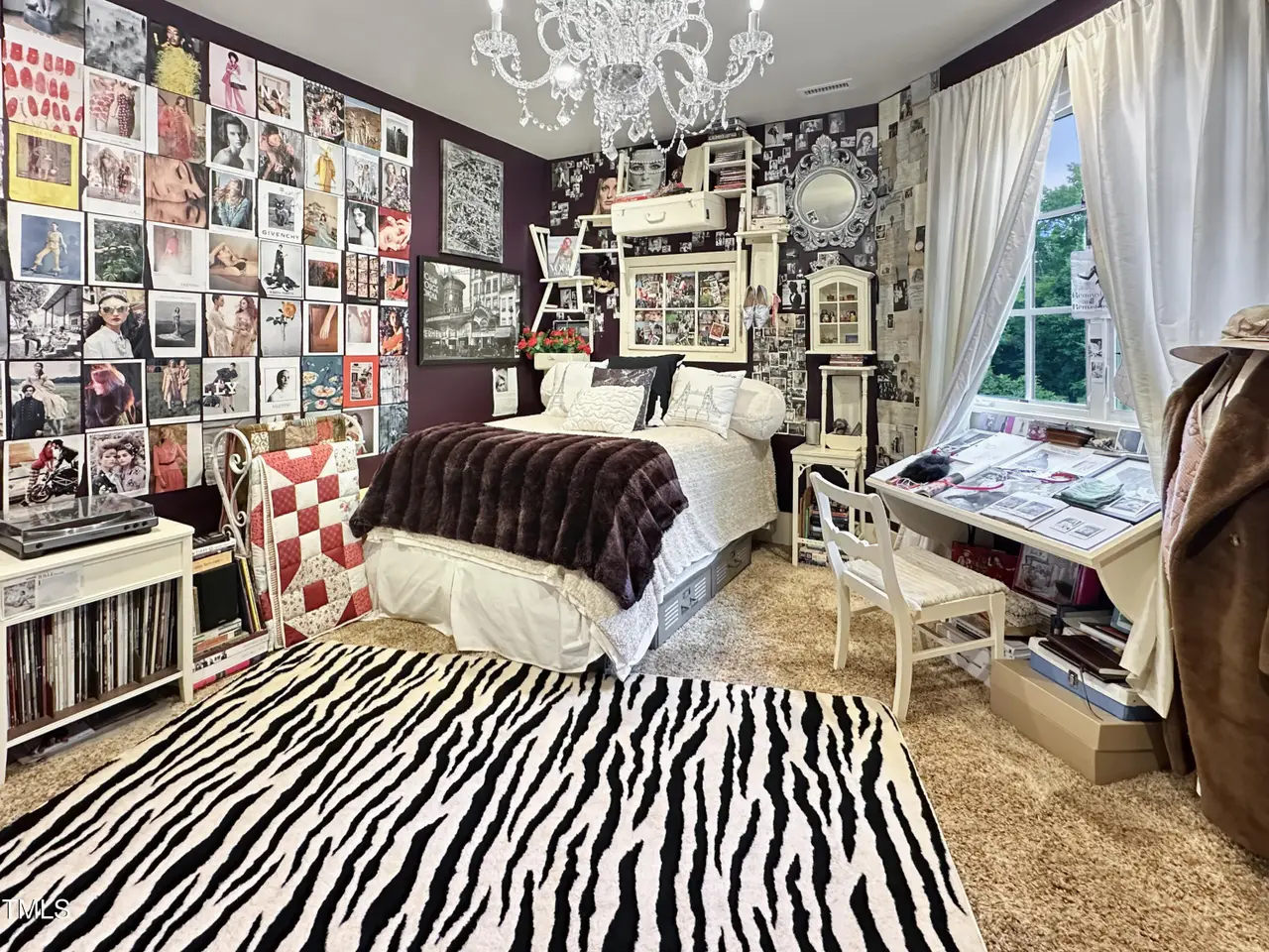 An Artist's Dream Home. This five bedroom and 4.5 Bath Custom Home is full of Character and Creative Flair. Nothing boring here! This home was designed with a vibe for the imaginative person who loves Free Flowing Rooms with whimsical touches. A uniquely different home surrounded by stunning landscapes. It's filled with natural wood carvings, art, and creative wrought iron accents. The home sits on 5.5 acres with stunning views of trees, open spaces, a swimming pool, a huge yard, and backs onto Falls Lake. It features an open kitchen with a bar and a sitting room with a fireplace, a craft room, an office area, and a pantry/mudroom. The second floor has a master suite, oversized bedrooms, private baths, and plenty of room to expand. The lower level includes a family room, guest bedroom, and ample storage. Enjoy a quiet walk around the grounds or to the lake. Relax on the large covered front porch or by the pool. It also offers easy access to shopping, RTP, and I-540.
