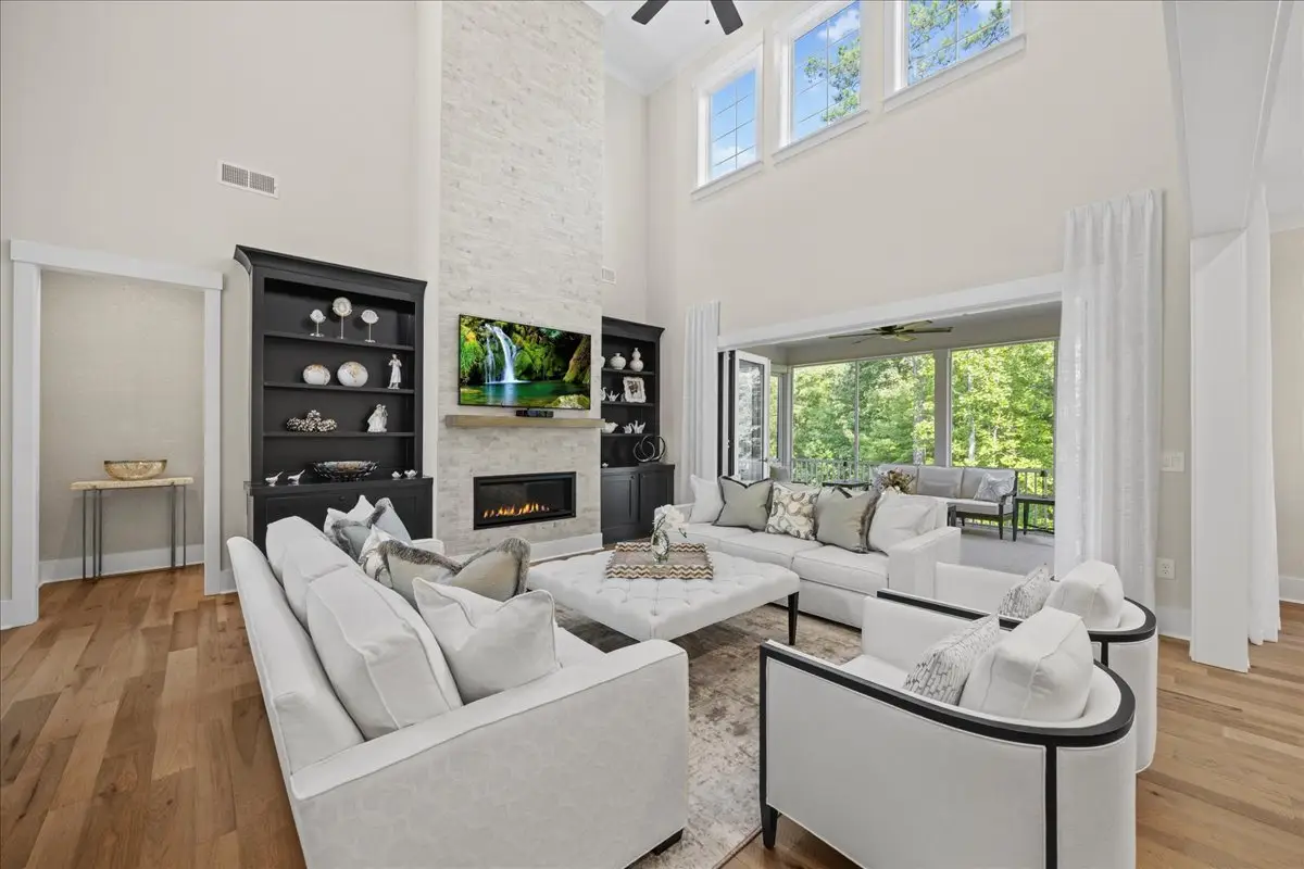 ''Turnkey'' Luxury Living! Featuring a pristine white facade, elegant double doors and a spacious 3 car garage- This is the one! Unique opportunity to purchase a fully furnished designer home! Every detail has been thoughtfully crafted for style and function. Meticulously maintained and appointed by a professional designer. This home features high end finishes and curated furnishings throughout-all of which convey! Just open the door to your exquisite new home and start living. Experience luxury and functionality in this 6 bedroom, 6.5 bath home. Less than 2 years old, this residence offers an elevated sense of style and comfort in every detail. You are greeted by a pristine, large dining room with elegant wallpaper. The family room is welcoming and has a stunning, 2 story brick fireplace that is anchored by sleek built-ins on each side. Inside, enjoy a seamless indoor-outdoor lifestyle with full retractable doors that open the living space to the tree top views of the outdoors and the screen porch - perfect for entertaining or quiet evenings at home. The show-stopping kitchen features a quartz waterfall back-to-back cabinet island with a Teflon farmhouse sink. The Green Certified ''Responsible-Sustainable'' stacked white cabinets with glass toppers, custom hood, top of the line Thermador cooktop, double ovens, refrigerator and a microwave drawer make this kitchen a culinary dream! The daylight basement provides exceptional versatility, perfect for multi-generational living, a private guest suite or extended entertaining space. If future needs require additional space this 5300 square home can be made even larger with expansion of almost an additional 1000 sq. feet of unfinished areas in the basement. The home features a large double garage that accommodates 2 large SUV's plus an additional 3rd car garage. The main floor offers an impressive owner's suite & large secondary bedroom with a full bath. (Currently being used as an office.) Upstairs you will find a loft, 3 additional bedrooms, 3 ensuite bathrooms and a office/bonus space. This area is a relaxing area for kids, extended family and guests to enjoy their own ''private sanctuary'' of the home. The daylight basement features a large den area, a kitchentte-, bar area and a game table area. The basement also features the 6th bedroom with an ensuite bathroom. This area is perfect for a nanny suite, teen suite or multi-generational living. This area has ample storage in the unfinished areas. This former model is elegant and sure to impress. This home is within minutes to the charming downtown Wake Forest, medical and dental offices, shopping, restaurants and Highway 98 & US 1. Enoy shopping at Wegman's or enjoying delicious pastries at Paul & Jack's. Explore the welcoming small town feel of Wake Forest but yet so close to Raleigh. Maintain an active lifestyle with miles of walkable trails right outside your door. (The Wake Forest Reservoir Trails ) Whether you're seeking space for extended family, a work-from-home sanctuary, or simply room to spread out in style, this home delivers modern elegance, functionality and lasting quality!