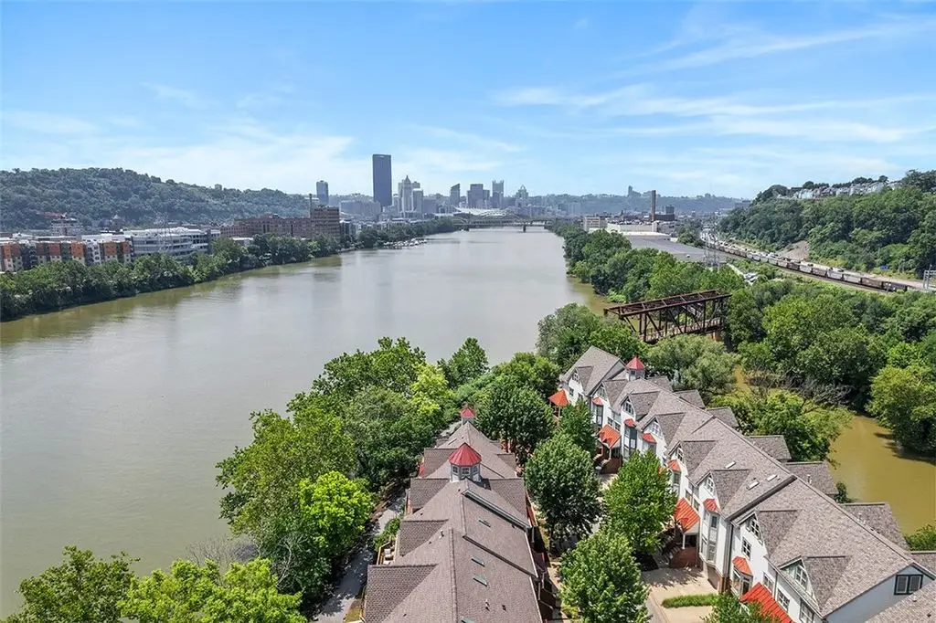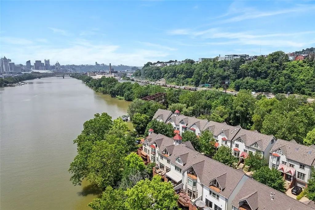 Modern, sophisticated & sun-filled, this stunning 3-story Herr's Island townhome is nestled on a quiet cul-de-sac in coveted Washington's Landing, offering spectacular Allegheny River views from every level/ Open-concept boasts rich hardwoods, 25' window wall flooding the entire main floor w/ natural light, built-in media center & access to 20'+ deck overlooking the water, High-end custom kitchen features creamy white cabinetry, 8x5 quartzite isle, wraparound quartz countertops & premium appliances. 2nd level w/3 bright bedrooms & roomy hall bath - 2 bedrms have river views, 1 w/enste. Sun-splashed 3rd lvl primary retreat showcases turret windows, soaring ceilings, 23' walk-in closet/ private water-view deck & luxurious ensuite/ LL impresses w/custom wine lounge w/ Venetian plaster walls, powder rm plus covered deck with trail access &, of course, river view. Experience modern luxury, timeless craftsmanship & stunning views, this extraordinary townhome truly has it all