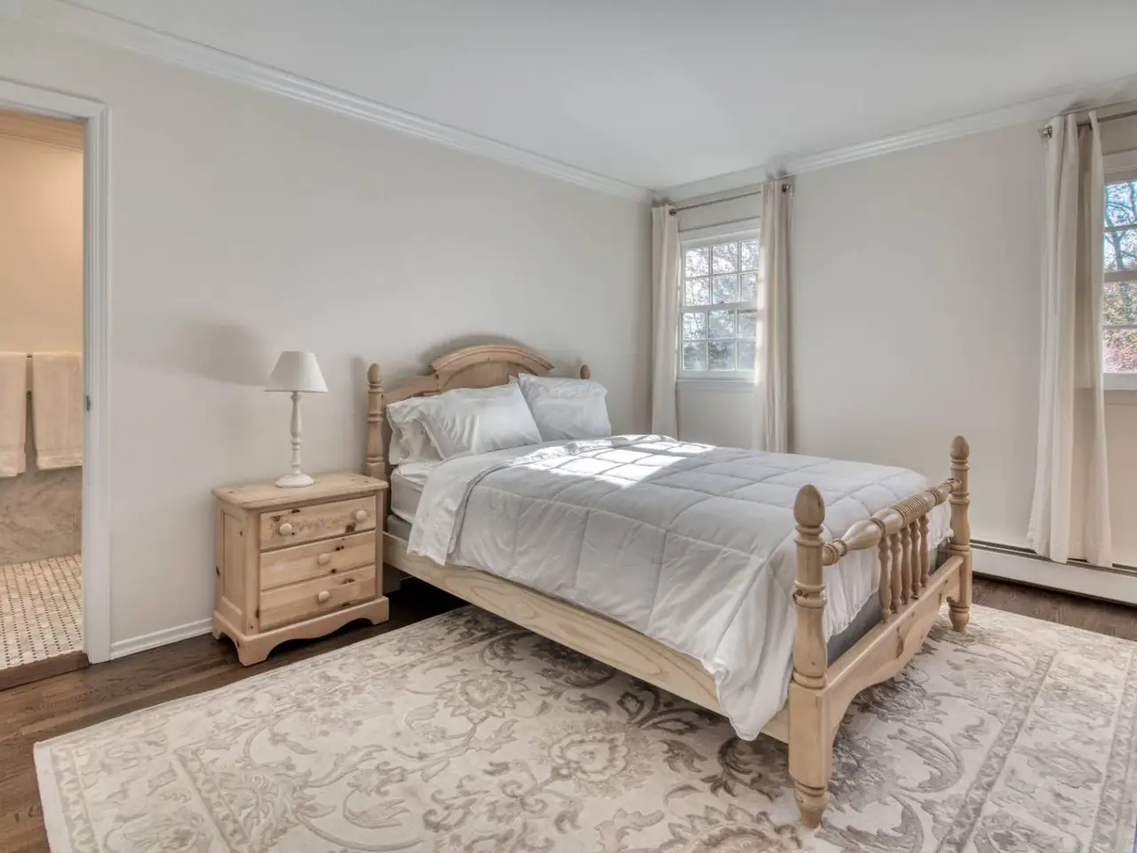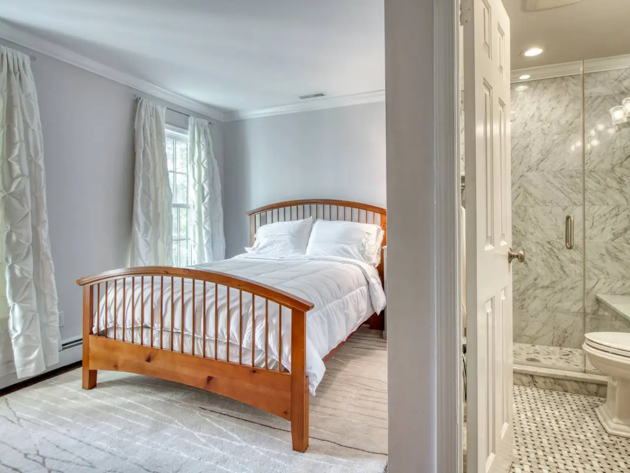 Beautiful Traditional home in Bridgehampton with new gourmet kitchen and new marble bathrooms. 3 spacious bedrooms each with a new flat screen television. Bright and large living room with double height ceiling and 2nd floor den overlooking the space. Freshly painted, newly furnished, refinished hardwood floors. Fenced in yard with heated pool and patio for dining. Central air. No pets. Listing ID: 735785