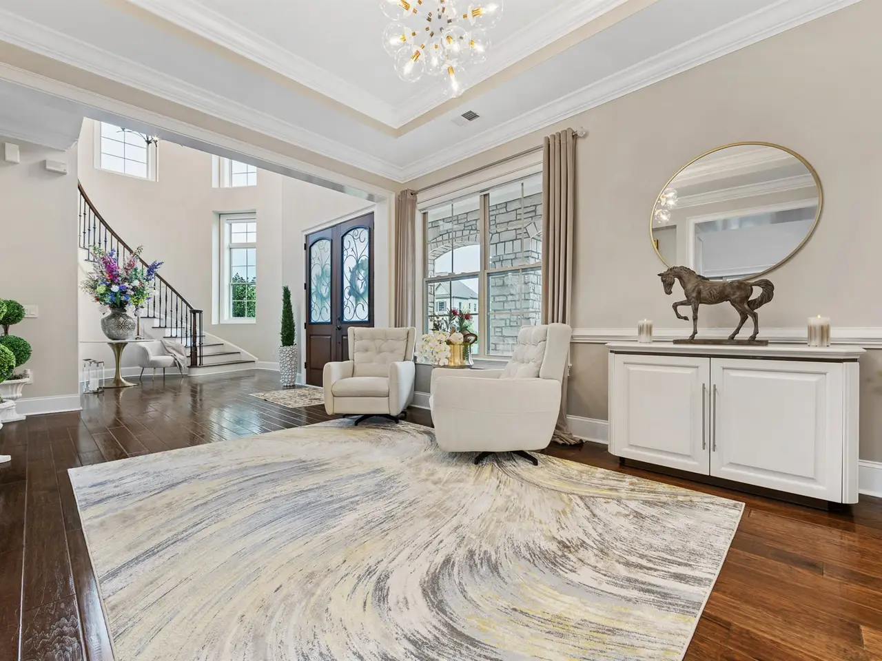 Stunning European castle style home in the premier gated Ladera community. Full brick & stone exterior. No expense was spared in the detailed and high end renovations thru-out-a true gem! Stunning two-story foyer with an elegant, curved staircase. Flowing & spacious first floor hosts a gourmet kitchen with a huge quartz island, 2 story great rm with gas fp, generous dining area, sunroom/study, scullery w/ sink, large pantry, private guest suite and powder rm. Telescoping sliding glass doors open to the airy screened-in porch overlooking the private and extensively landscaped yard. Second flr provides for the luxurious primary retreat boasting a spa-like bath which includes a dual vanity, large tiled shower, huge closet with tons of storage and sitting area. 3 additional bedrooms each with their own private bath. Open loft/flex space completes the picture. Enjoy the picturesque setting w/ koi pond, view of the pond & fountain as you relax on the oversized patio. Union county taxes only