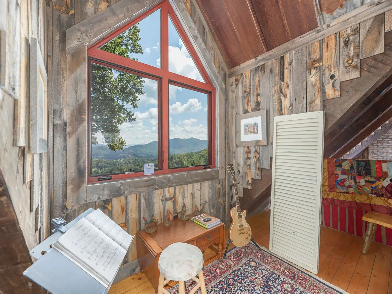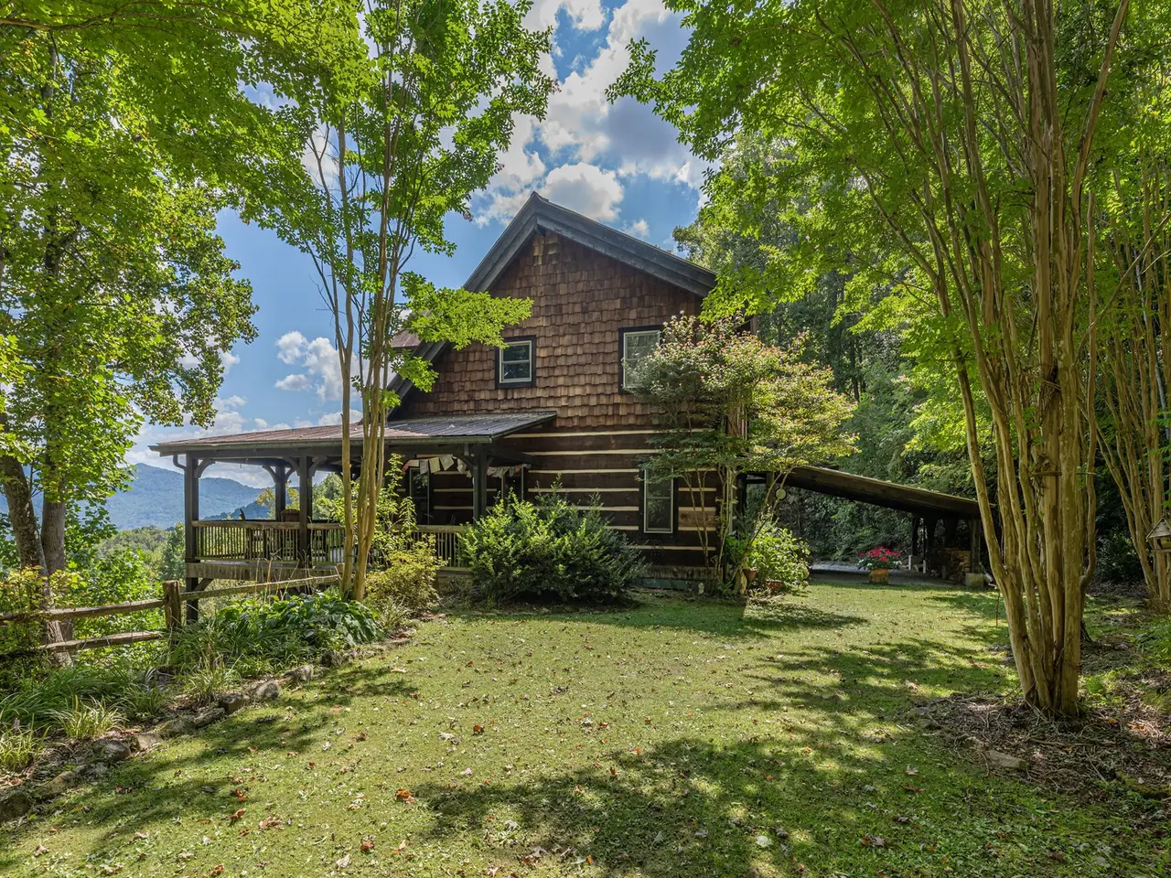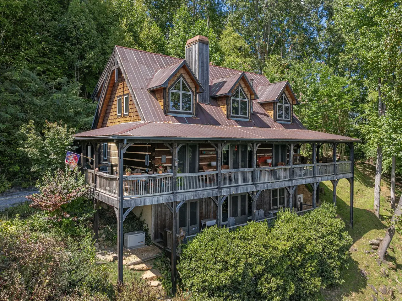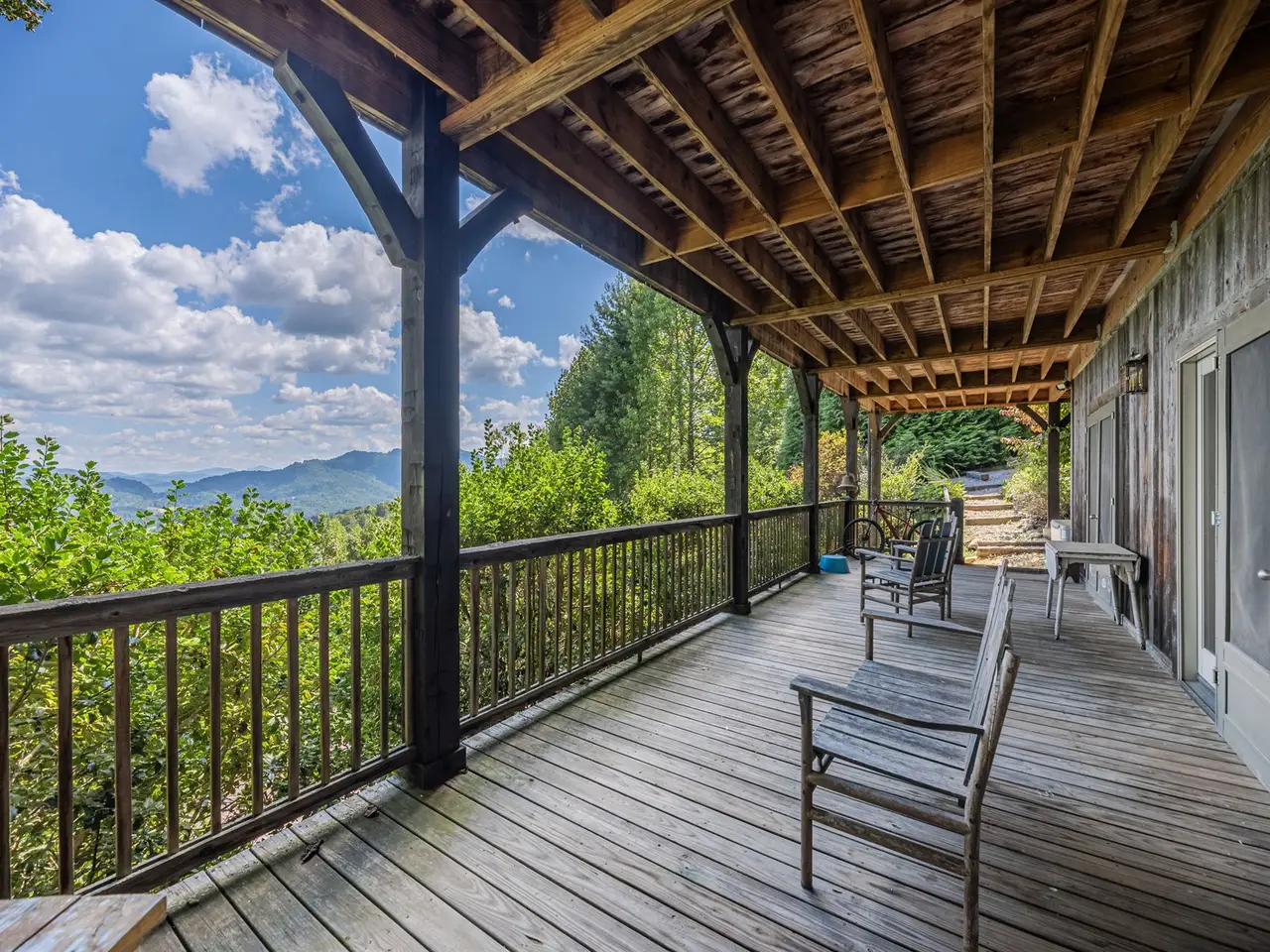 Only one home in Waynesville offers a seamless blend of luxury, craftsmanship, and breathtaking mountain vistas. Nestled on 2.44 acres of usable land, this custom-designed residence showcases artisanal reclaimed materials, open-concept living, and intentional design throughout. Built by the esteemed George Blackburn, this extraordinary property is a rare combination of artistry, functionality, and unparalleled mountain beauty. Step inside to discover remarkable custom woodwork, snow fence walls, and a stunning Chicago brick fireplace - all complimented by historic Maple Gin Mill floors. The gourmet kitchen features hand-painted cabinetry, tumbled marble tile, and stainless appliances. The great room boasts sweeping long-range mountain views, a cozy wood stove, and an adjoining dining space - perfect for entertaining. Retreat to the main level primary suite, complete with private deck access, two walk-in closets, and a luxurious bathroom with a clawfoot tub and walk-in shower. Upstairs, the guest rooms offer multiple spaces for rest or creative pursuits, two bathrooms, and two flexible alcoves - all framed by panoramic long-range mountain views. The terrace level allows for recreation, hobbies, and storage, finished with a full bathroom. The expansive main level cedar deck and terrace level deck seamlessly integrate the home with its natural surroundings, creating the perfect setting for outdoor enjoyment. Experience this one-of-a-kind luxury retreat where the mountains meet the clouds.