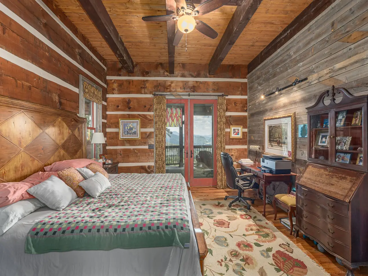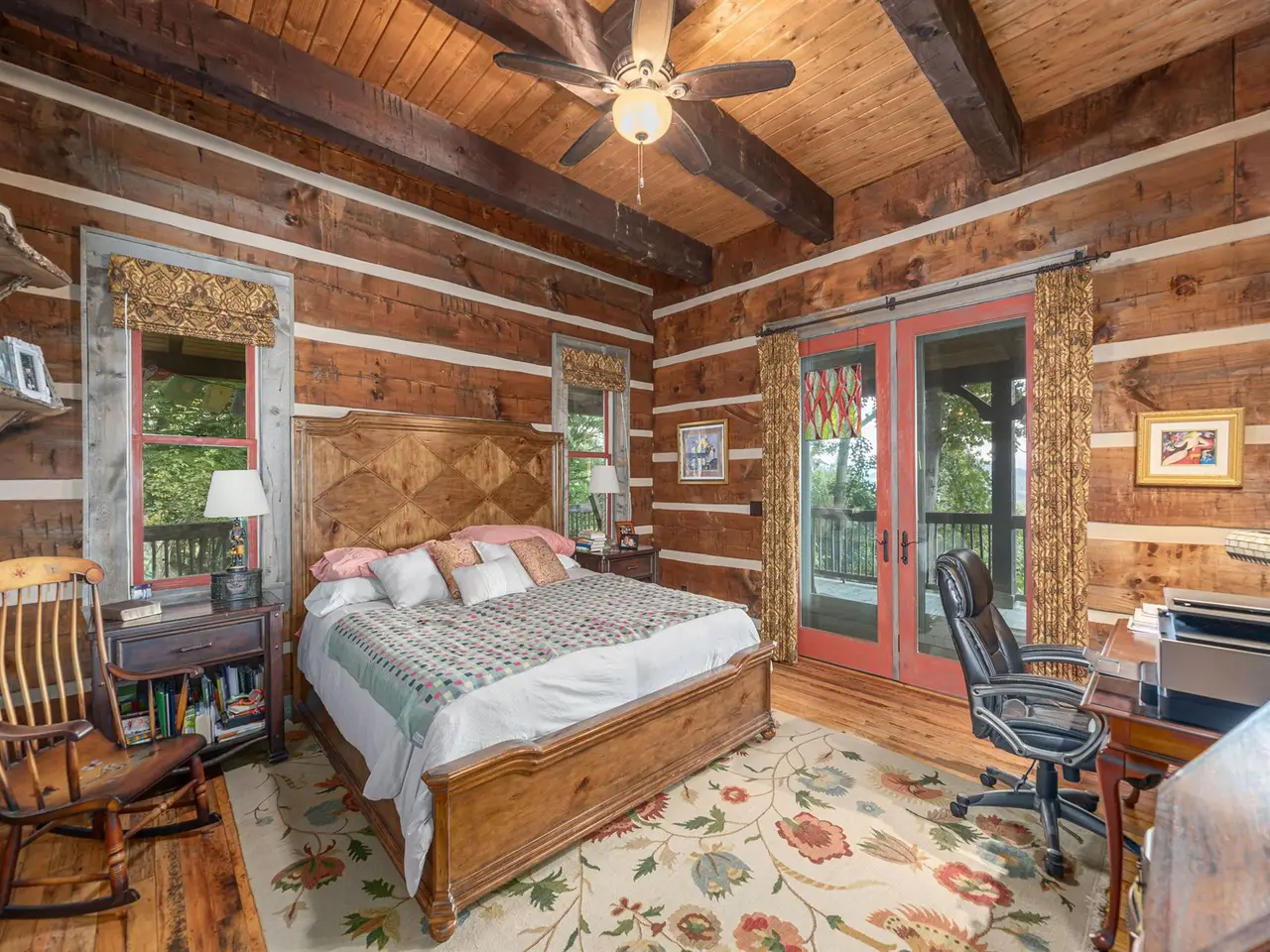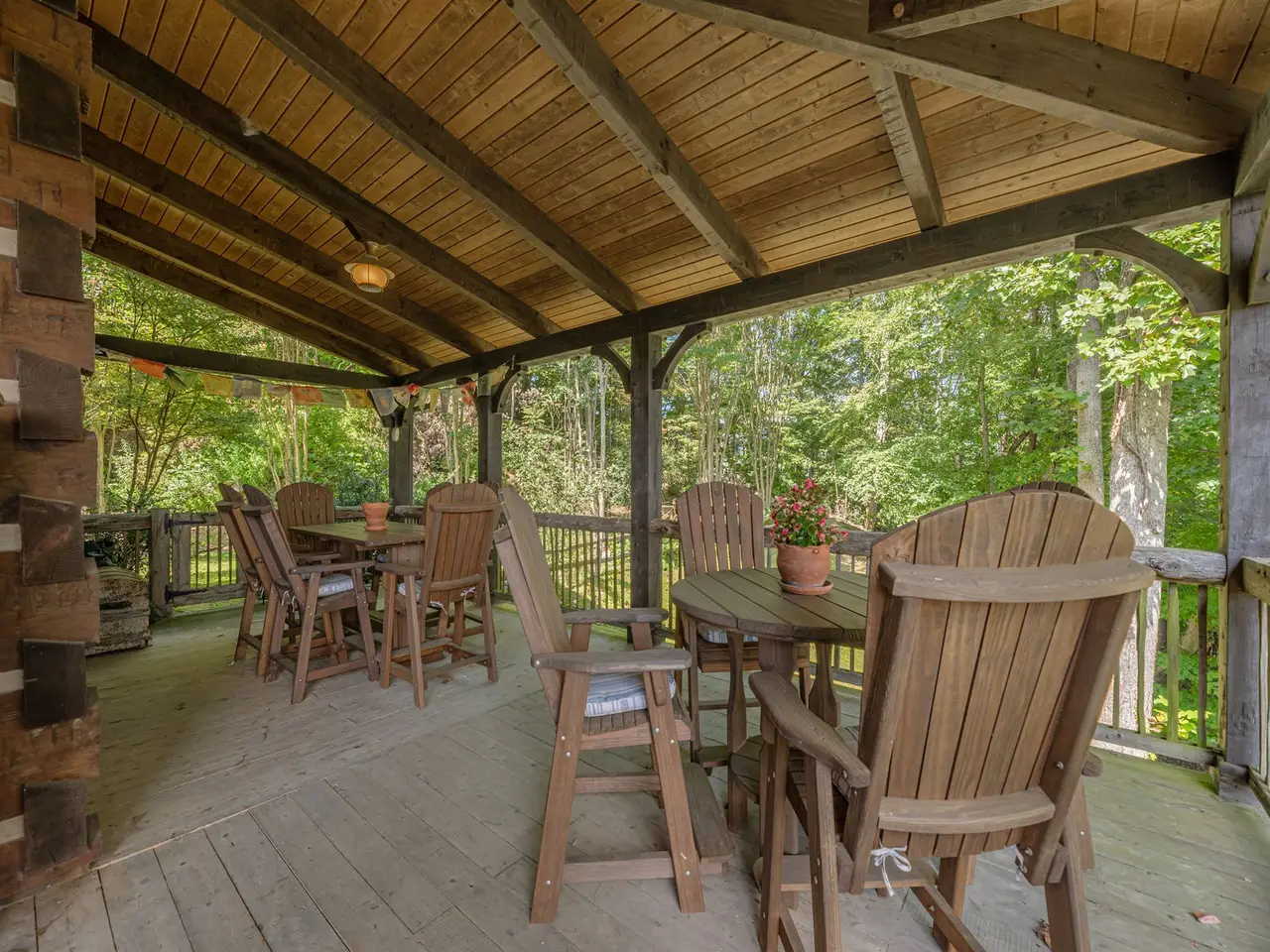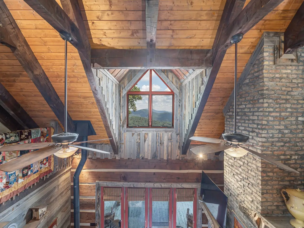 Only one home in Waynesville offers a seamless blend of luxury, craftsmanship, and breathtaking mountain vistas. Nestled on 2.44 acres of usable land, this custom-designed residence showcases artisanal reclaimed materials, open-concept living, and intentional design throughout. Built by the esteemed George Blackburn, this extraordinary property is a rare combination of artistry, functionality, and unparalleled mountain beauty. Step inside to discover remarkable custom woodwork, snow fence walls, and a stunning Chicago brick fireplace - all complimented by historic Maple Gin Mill floors. The gourmet kitchen features hand-painted cabinetry, tumbled marble tile, and stainless appliances. The great room boasts sweeping long-range mountain views, a cozy wood stove, and an adjoining dining space - perfect for entertaining. Retreat to the main level primary suite, complete with private deck access, two walk-in closets, and a luxurious bathroom with a clawfoot tub and walk-in shower. Upstairs, the guest rooms offer multiple spaces for rest or creative pursuits, two bathrooms, and two flexible alcoves - all framed by panoramic long-range mountain views. The terrace level allows for recreation, hobbies, and storage, finished with a full bathroom. The expansive main level cedar deck and terrace level deck seamlessly integrate the home with its natural surroundings, creating the perfect setting for outdoor enjoyment. Experience this one-of-a-kind luxury retreat where the mountains meet the clouds.