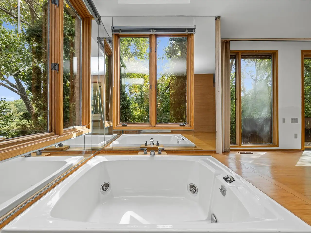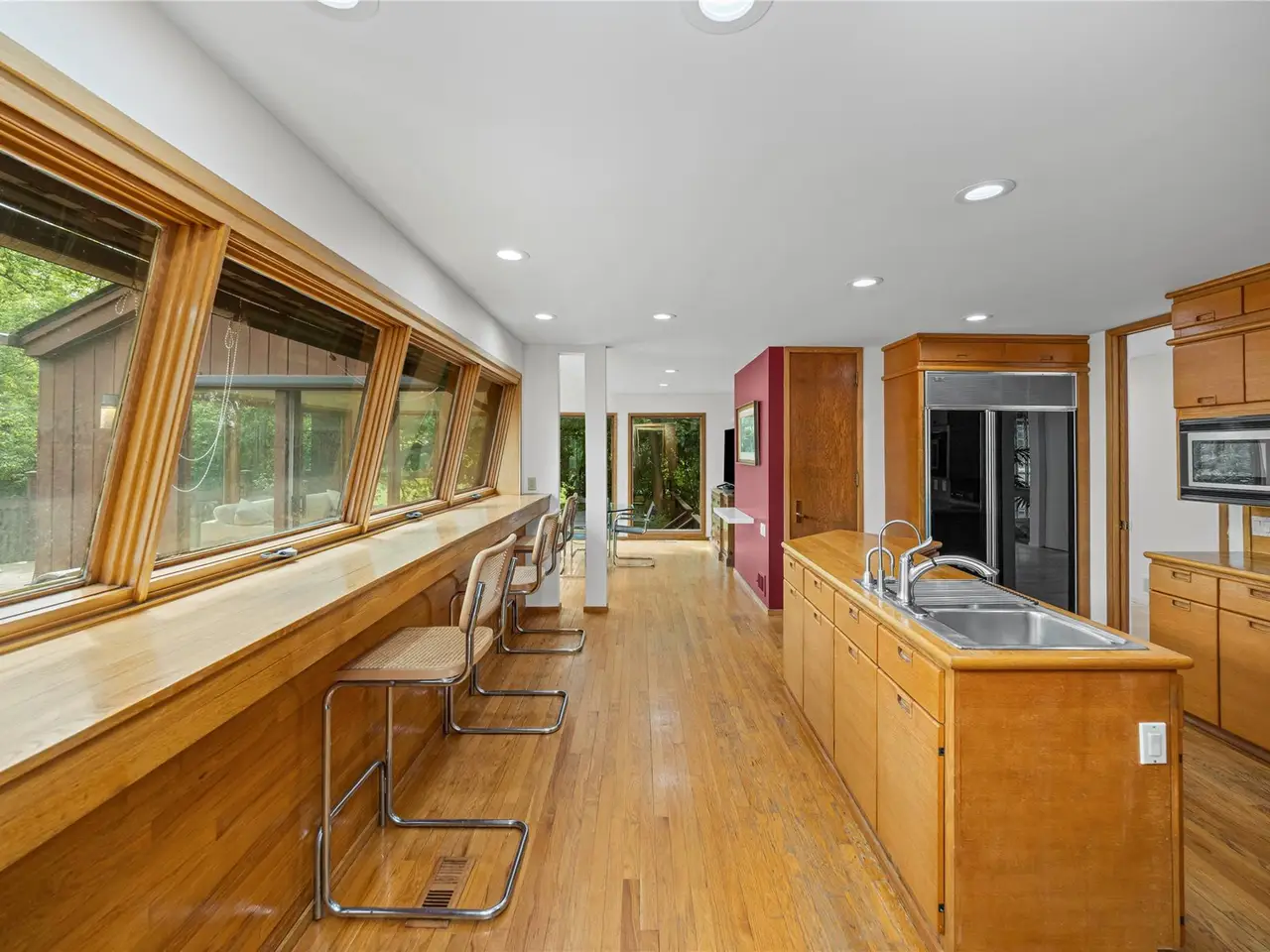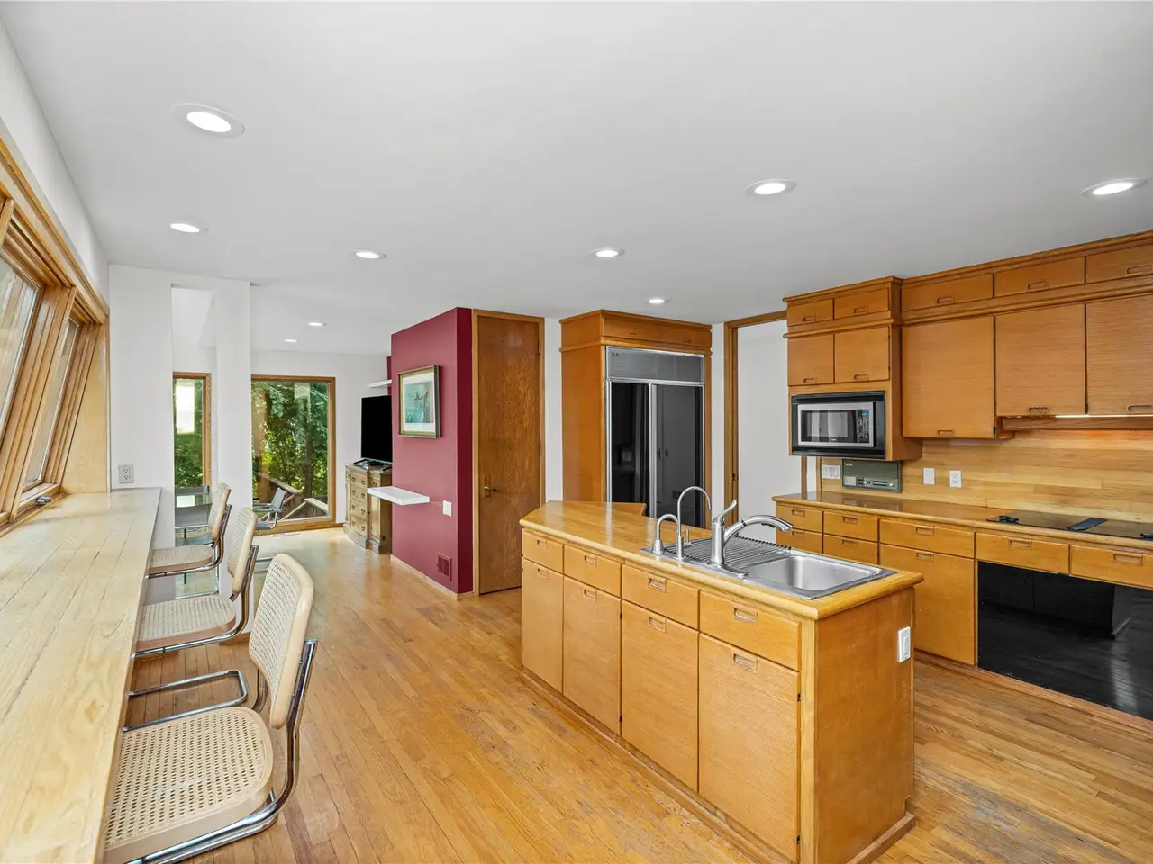 Welcome to this exquisite ranch estate nestled in the heart of West Bloomfield, meticulously designed and crafted by renowned architect David Lubin and being offered by its original owners. This stunning residence seamlessly blends sophisticated architectural elements with luxurious water-front living. Step inside to soaring ceilings in the expansive great room, adorned with floor-to-ceiling windows that showcase breathtaking water vistas. The gas fireplace and elegant travertine flooring create a warm, inviting ambiance perfect for entertaining or relaxing. The gourmet kitchen is a chef’s dream, featuring high-end appliances, abundant cabinet and counter space, a generous walk-in pantry, and an oversized nook/ living room overlooking the tranquil water—ideal for casual dining or a morning coffee. A striking spiral staircase ascends to a versatile loft area, complete with its own gas fireplace, balcony overlooking the water, and panoramic views of the entire first floor. The primary suite offers a private retreat with natural hardwood floors, soaring ceilings, and a private balcony overlooking the water. His and her walk-in closets lead to a luxurious private ensuite. The second main-level bedroom boasts a large walk-in closet, a private ensuite, and versatile space suitable for an office or lounge area. The finished walk-out lower level adds approximately 3,400 square feet of versatile living space, featuring two additional bedrooms, a full bathroom, and a half bath. A spacious entertaining area with floor-to-ceiling windows offers stunning views of the backyard and water, providing an ideal space for relaxation or entertaining. Located in the vibrant West Bloomfield community, this exceptional home is served by the award-winning Bloomfield Hills Schools. Experience luxurious waterfront living in this architecturally and functionally stunning estate.
