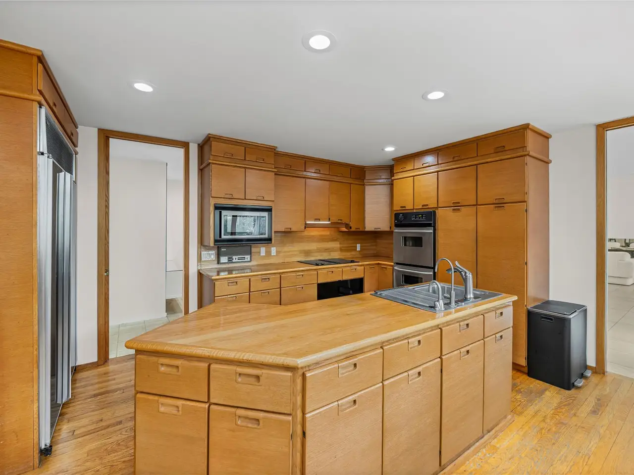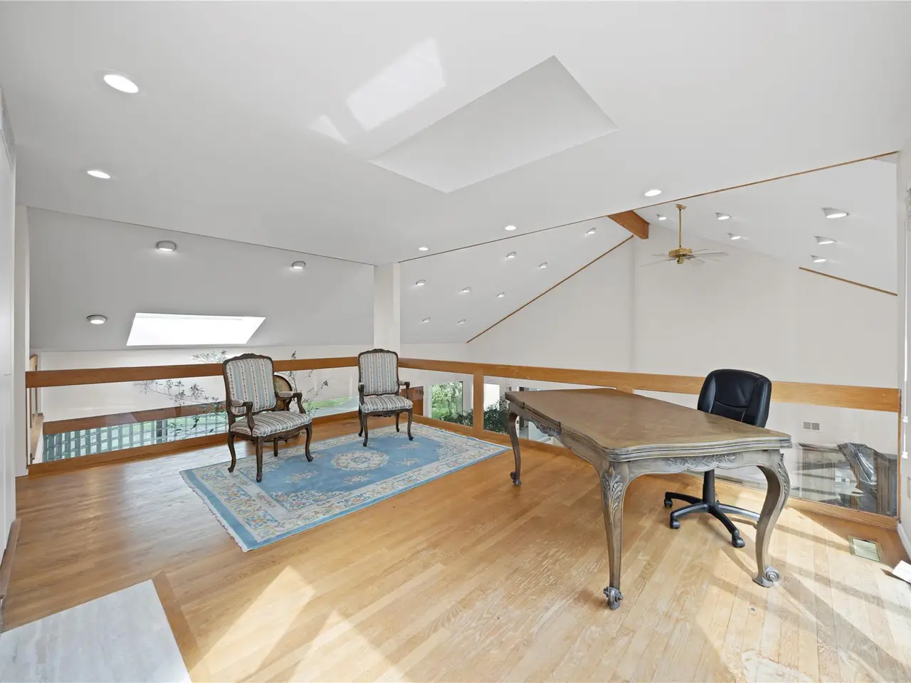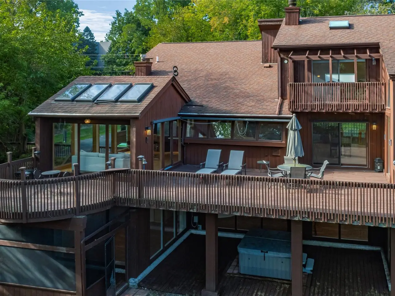 Welcome to this exquisite ranch estate nestled in the heart of West Bloomfield, meticulously designed and crafted by renowned architect David Lubin and being offered by its original owners. This stunning residence seamlessly blends sophisticated architectural elements with luxurious water-front living. Step inside to soaring ceilings in the expansive great room, adorned with floor-to-ceiling windows that showcase breathtaking water vistas. The gas fireplace and elegant travertine flooring create a warm, inviting ambiance perfect for entertaining or relaxing. The gourmet kitchen is a chef’s dream, featuring high-end appliances, abundant cabinet and counter space, a generous walk-in pantry, and an oversized nook/ living room overlooking the tranquil water—ideal for casual dining or a morning coffee. A striking spiral staircase ascends to a versatile loft area, complete with its own gas fireplace, balcony overlooking the water, and panoramic views of the entire first floor. The primary suite offers a private retreat with natural hardwood floors, soaring ceilings, and a private balcony overlooking the water. His and her walk-in closets lead to a luxurious private ensuite. The second main-level bedroom boasts a large walk-in closet, a private ensuite, and versatile space suitable for an office or lounge area. The finished walk-out lower level adds approximately 3,400 square feet of versatile living space, featuring two additional bedrooms, a full bathroom, and a half bath. A spacious entertaining area with floor-to-ceiling windows offers stunning views of the backyard and water, providing an ideal space for relaxation or entertaining. Located in the vibrant West Bloomfield community, this exceptional home is served by the award-winning Bloomfield Hills Schools. Experience luxurious waterfront living in this architecturally and functionally stunning estate.