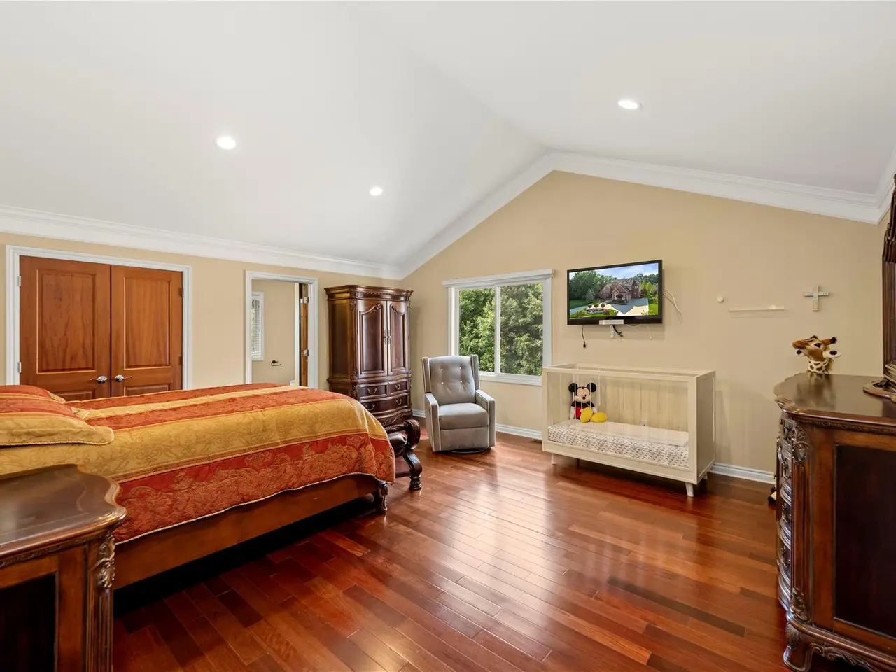 Welcome to this exquisite 4-bedroom, 3.2-bath estate featuring a coveted first-floor primary suite with a private deck overlooking beautiful woodlands. Nestled in a quiet cul-de-sac with minimal traffic, this home offers a 3-car heated side-entry garage, circular driveway, and a spacious unfinished walk-out basement with 10-foot ceilings, already plumbed for a bathroom. The gourmet kitchen is a chef’s delight with granite countertops, custom cabinetry, and premium finishes. Elegant crown molding, soaring ceilings, and generously sized rooms add a touch of grandeur, while a large bonus room with skylights above the garage provides the perfect space for a gym, office, playroom, or more. Enjoy peace of mind with a full-house generator and surveillance cameras surrounding the property. The beautifully landscaped grounds create an ideal setting for outdoor entertaining or peaceful relaxation. Conveniently located near expressways, fine dining, shopping, and more this home blends luxury, comfort, and convenience in one remarkable package.