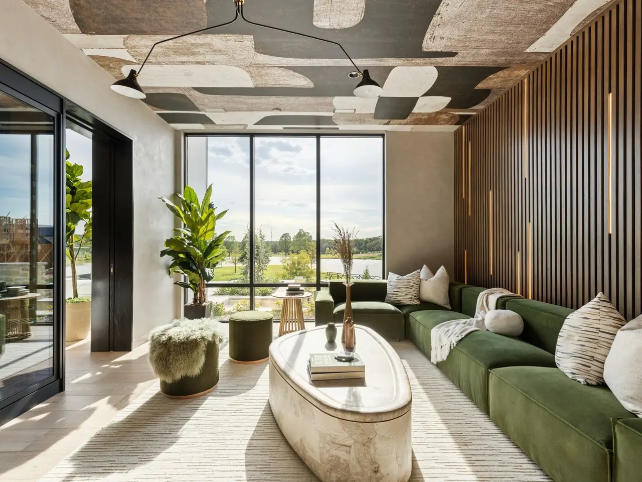 Pareti in vetro dal pavimento al soffitto che massimizzano la vista sul lago