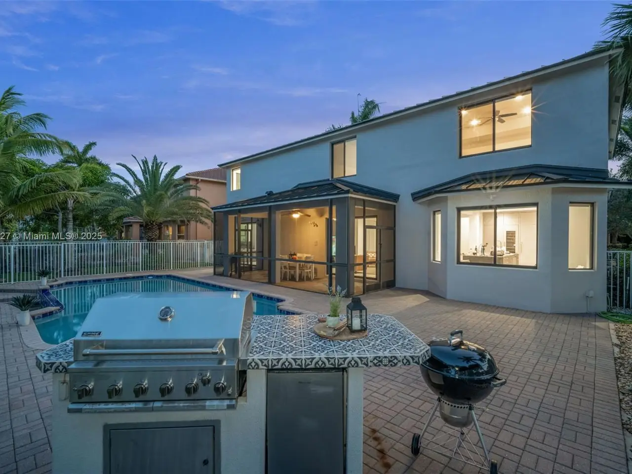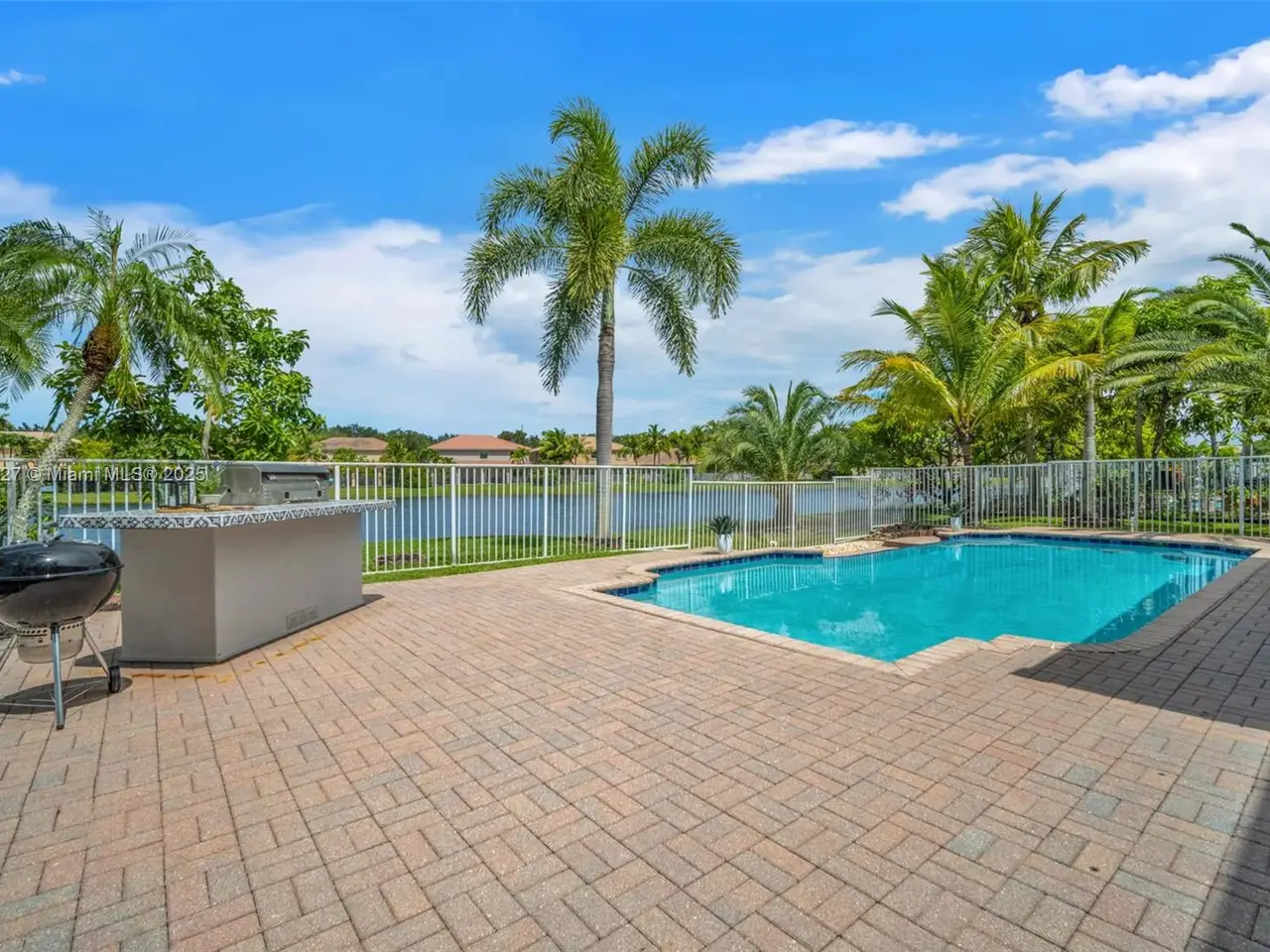 This showstopping, one-of-a-kind home is filled with upscale upgrades and eye-catching style! With 5 spacious bedrooms, a private office, and a flexible loft. all offering stunning lake views Brand-new 2024 metal roof and lush landscaping. Inside, soaring ceilings, a statement staircase, and sleek modern flooring create a grand welcome. The gourmet kitchen wows with a wine display, premium appliances, double ovens, and an oversized island. The primary suite offers a relaxing sitting area and spa-like bath with soaking tub. Enjoy the Florida lifestyle outdoors with a screened patio, summer kitchen, sparkling pool, & cabana bath. Located in the prestigious gated Isles at Weston, with a renovated clubhouse, resort-style amenities, and top-rated schools.