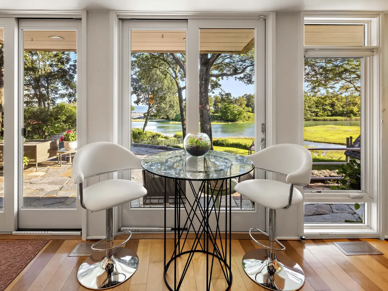 Short term fully furnished rental. Direct waterfront in Greens Farms. A true Westport icon, 11 Beachside Common is one of the most architecturally distinctive homes on the Connecticut coast-known to anyone who's ever strolled Burying Hill Beach. Set on 2.6 waterfront acres, the property offers sweeping southern views over Sherwood Island and Long Island Sound, with sunsets that rival the Low Country and birdlife that fills the surrounding marsh with movement and sound. With water access for kayaking and paddle boarding, it's a nature lover's paradise wrapped in high design.Originally built in 1971, the home underwent a $13M transformation under acclaimed architect James Biber of Pentagram. The goal: not to create rooms, but to dissolve them. Nearly 9,000 sq ft of open, gallery-like living space is unified by a 150-ft handmade tile path that runs the length of the main level. A soaring central room with exposed aluminum column is flanked by playful architectural elements -domes, portholes, skylight tubes, and a floating staircase.A 3-story tower, designed as the intellectual center of the home, offers 360-degree panoramic views and quiet workspace. This is a home where design, art, and imagination intersect-and where brilliant minds have found inspiration. From Academy Award winners to world-renowned scientists and adventurers, this home has drawn extraordinary lives.