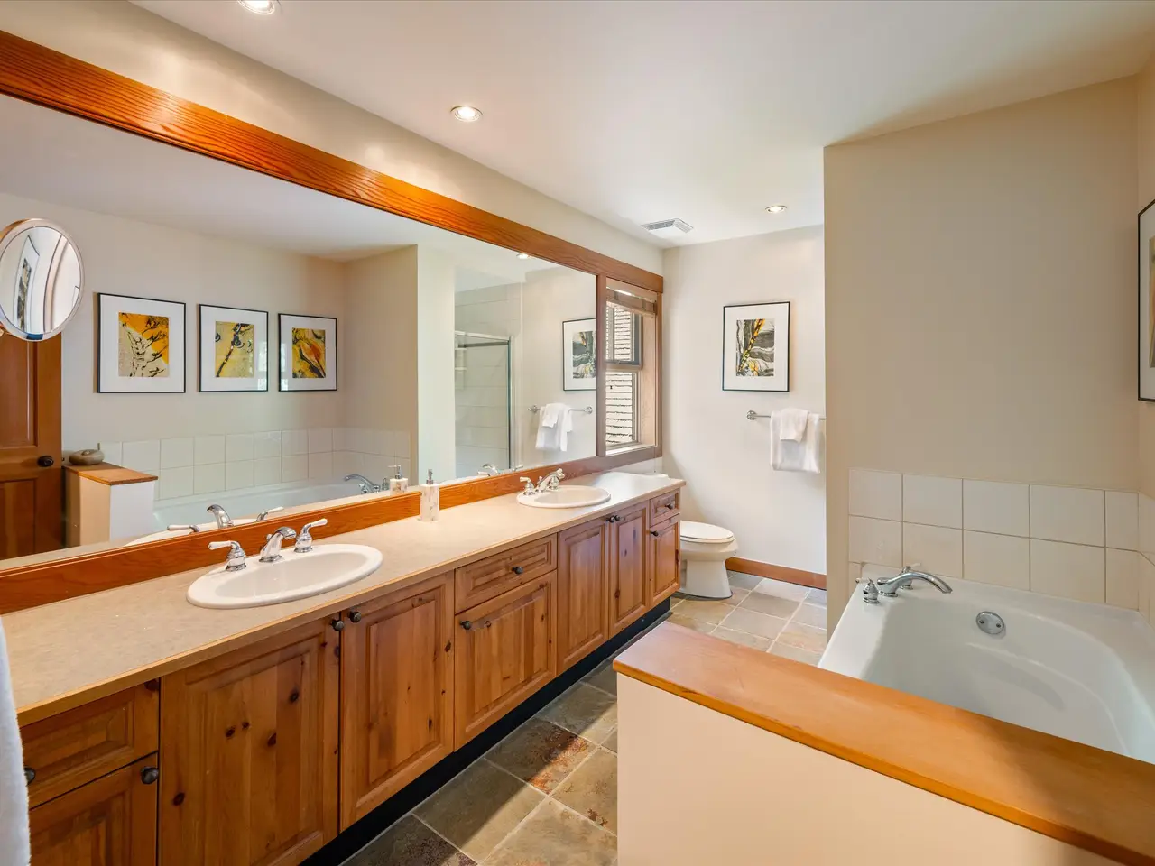 Enjoy year-round Whistler adventures from this ideally located ski-home with easy access to Lost Lake’s XC, biking & hiking trails, and steps from the Chateau Golf Course. The open floor plan welcomes natural light through a large window wall and sliding doors to a covered patio with creek sounds and a private treed outlook. Features include three well-proportioned bedrooms, a cozy fireplace, and a covered hot tub deck to unwind after mountain days. Zoned for nightly rentals with unlimited owner use, this low-maintenance retreat offers strong revenue potential and a private single-car garage. No GST.