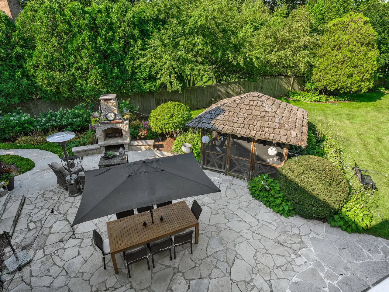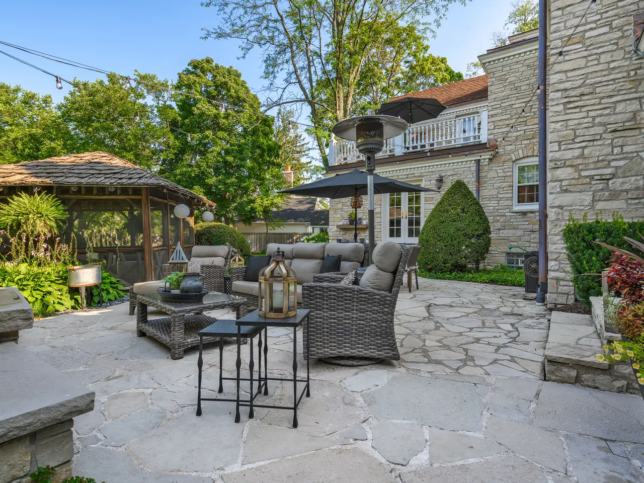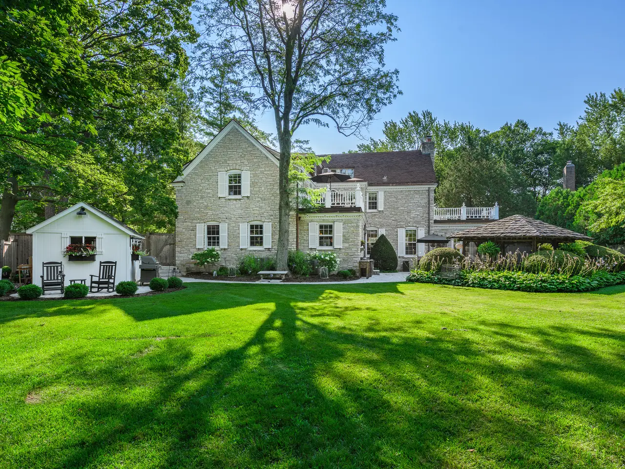 Beautifully renovated lannon stone luxury residence steps from town, train and the lake. Enter through the grand center hall that leads to both the dining room with floor to ceiling windows and an inviting living room with wood burning fireplace and views of the lush yard. The renovated Chef's kitchen features custom cabinets, high-end appliances including a La Cornue range, double oven, beverage fridge, soapstone counters and a butcher block island with prep sink. The first floor is complemented by the perfect game room leading to a back patio and dramatically decorated library/office offering a perfect retreat that opens to a patio overlooking the expansive 6/10+ acre lot. Ascend to the second floor, where a beautiful brand new primary spa suite with soaking tub, separate shower, a spacious walk-in closet and a walk out deck. Three additional bedrooms, two sharing a Jack and Jill renovated bath, and one with a 2nd private renovated en-suite bath complete the second-floor living space. The third floor offers versatile updated finished space with a 5th bedroom, ideal for an additional office along with a family room and additional storage rooms. The beautifully renovated lower level space is perfect for family entertaining around the custom built-in bar space and wood-burning fireplace. Additional exercise room/play area, wine closet, ample storage, updated powder room, and all new laundry area. The lush property boasts an expansive lawn with stone patios, outdoor fireplace complemented by a charming decorated gazebo screened porch, a new shed. The 2-car attached and heated garage with new epoxy floors. Two new double exterior doors. New fireplace liners, 2 new sump pumps with battery back ups, updated boiler auto-feeder and steam traps, Space Pac & 2 heat and A/C splits for the 3rd floor & basement water heater. New outdoor fireplace, shed, flagstone walkways, patio extensions, redwood fence, exterior lights, sprinkler system, copper gutters and asphalt driveway - all new. This home has been well maintained, updated and ready to move right in!
