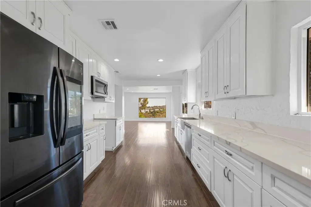 Arroccata su un terreno privato di 17.000 piedi quadrati (circa 1600 metri quadrati) in cima a una collina, questa splendida casa moderna di metà secolo su tre livelli offre viste panoramiche mozzafiato sulla San Fernando Valley e sulle montagne circostanti. Situata in un ricercatissimo quartiere di Woodland Hills a sud del boulevard, questa residenza con 3 camere da letto e 3 bagni fonde perfettamente stile, comfort e funzionalità. Il piano superiore presenta un design open space, ideale per intrattenere gli ospiti, con finestre a tutta altezza che inondano l'ambiente di luce naturale. Questo piano comprende un ampio soggiorno, una zona pranzo, una cucina, un bagno per gli ospiti e l'accesso diretto al garage per due auto. Scendendo al secondo piano, troverete la lussuosa suite padronale, due ulteriori camere da letto, un bagno completo e un'accogliente soggiorno con camino e angolo bar. Il piano inferiore vanta un versatile studio con angolo cottura, bagno e ingresso privato, perfetto come unità abitativa in affitto, ufficio o suite per gli ospiti. Inoltre, la proprietà include un'unità separata per la suocera, offrendo ancora più flessibilità per l'affitto o per la vita con la famiglia allargata. Ogni piano è dotato di un proprio sistema di aria condizionata dedicato, che garantisce un comfort ottimale tutto l'anno. Situata a pochi minuti dalle autostrade, dal Warner Center, dal Village, da scuole di prim'ordine, ristoranti raffinati e dalla vivace vita notturna, questa casa è il rifugio perfetto per chi cerca la quintessenza dello stile di vita californiano, sia indoor che outdoor.