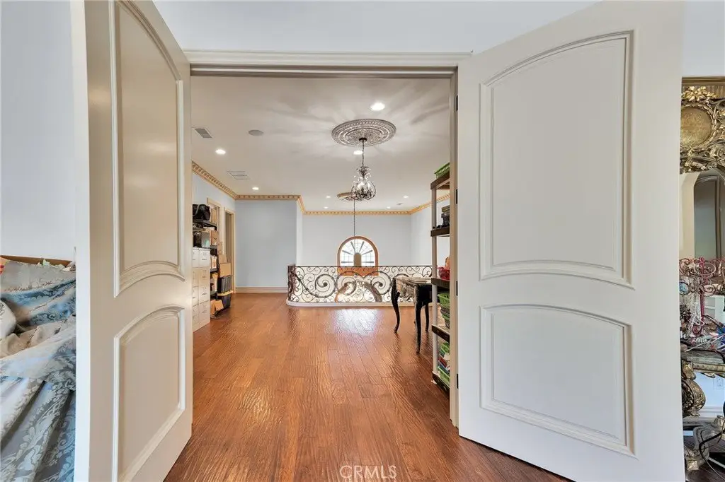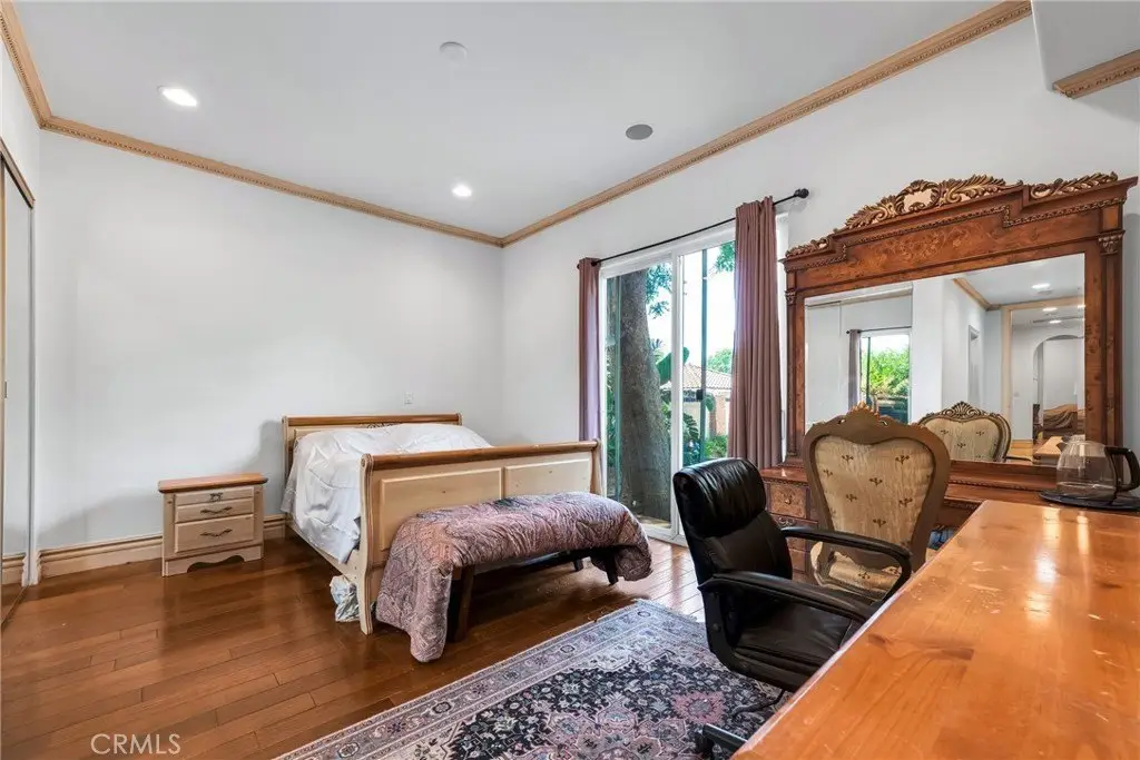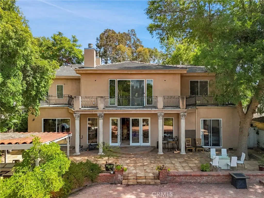 Set on a quiet, tree-lined street, this stunning 6,250 sq ft residence, rebuilt in 2007, sits on a sprawling 22,804 sq ft lot. Designed for both luxurious living and seamless entertaining, the home features 6 bedrooms, 7.5 bathrooms, and a flexible bonus room—two bedrooms and the bonus room are conveniently located on the main level. Enter through grand double doors into an impressive foyer with vaulted ceilings, elegant crown molding, and a formal living room with a striking marble fireplace. The gourmet kitchen, inspired by French design, includes custom European Craftsman cabinetry, granite countertops, a large center island, and high-end Sub-Zero and Wolf appliances. A cozy breakfast nook overlooks the expansive backyard with a sparkling pool—perfect for both entertaining and peaceful moments. Upstairs, an antique wrought-iron staircase leads to four spacious bedrooms, including the opulent primary suite with a private balcony, dual walk-in closets, and a fireplace. Additional highlights include marble flooring throughout the first level, an integrated sound system, a fully gated semi-circular driveway, a 3-car garage, and energy-efficient solar panels. With a perfect blend of classic elegance and modern convenience, this home offers unparalleled living in one of Woodland Hills' most coveted neighborhoods. Owner may consider seller financing or lease options.