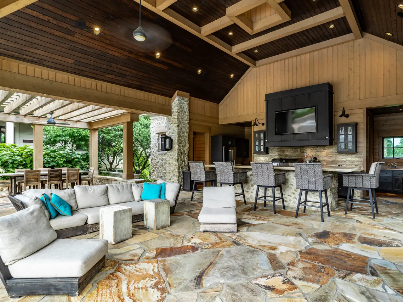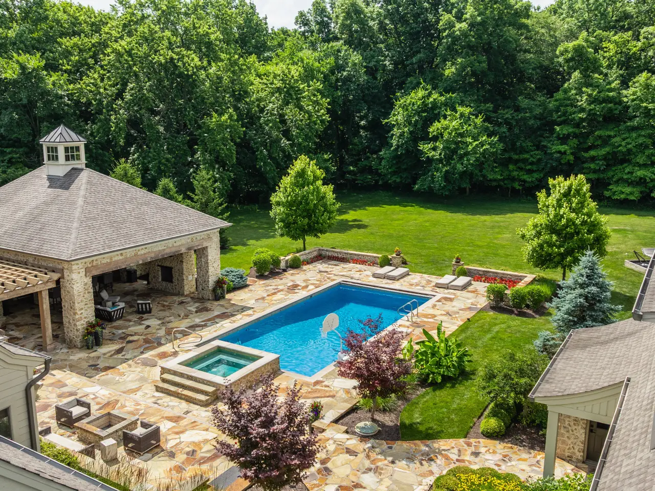 Possession to be February 1st, 2026. This stunning property is a true entertainer's paradise, with a backyard that feels like a private resort. Lounge by the in-ground pool, unwind in the hot tub, or gather around the firepit. Effortlessly host unforgettable gatherings with a fully equipped outdoor kitchen featuring a grill, Green Egg, wine fridge, refrigerator, dedicated bathroom, washer and dryer, and plenty of extra storage! A charming carriage house provides flexibility and privacy for guests or extended family, offering a full bedroom and bath, office nook, and cozy living space. Step inside and enjoy the inviting layout, where the great room welcomes you with a stone fireplace, built-ins, and picturesque views of the backyard. It opens to a stylish kitchen complete with a built-in bar, and flows into a sunlit breakfast room overlooking the outdoor oasis. Just across from the great room, you'll find a formal dining room, ideal for special gatherings. The main-floor primary suite is a peaceful retreat with a fireplace, spa-like bathroom with a soaking tub, walk-in shower, and a layout that ensures complete privacy. Upstairs, you'll find three additional bedrooms, a spacious loft, and a rec room, perfect for work, play, or relaxation. The finished basement expands your living options with another bedroom, large rec room, family room, game room and wet bar, ideal for movie nights or game day gatherings. With endless spaces to spread out, entertain, or simply enjoy quiet moments, this home truly has it all.