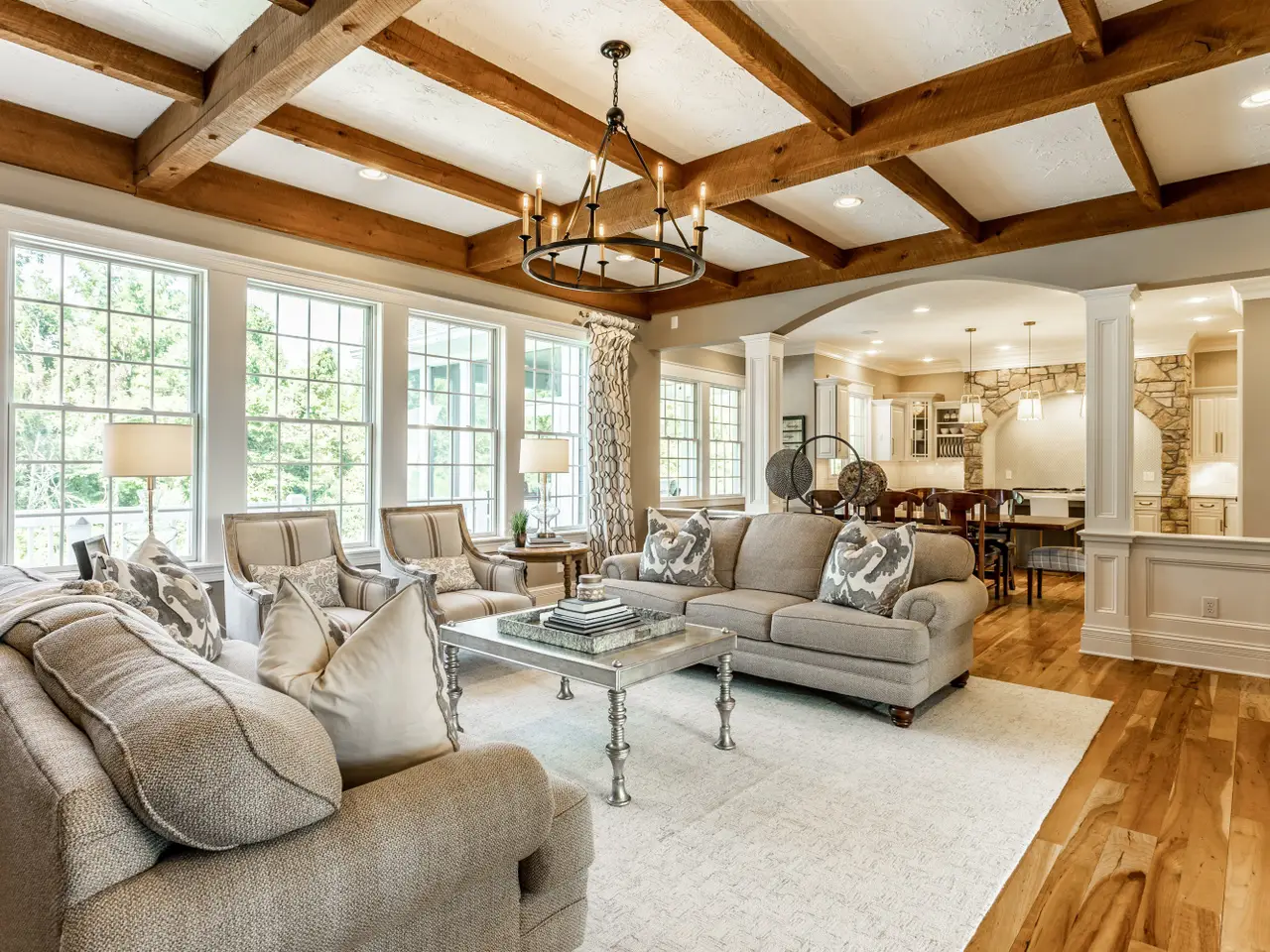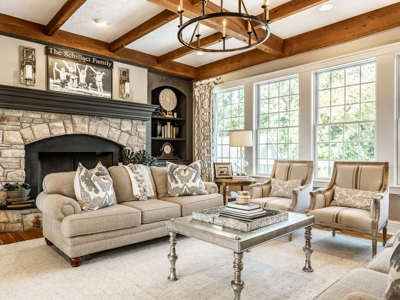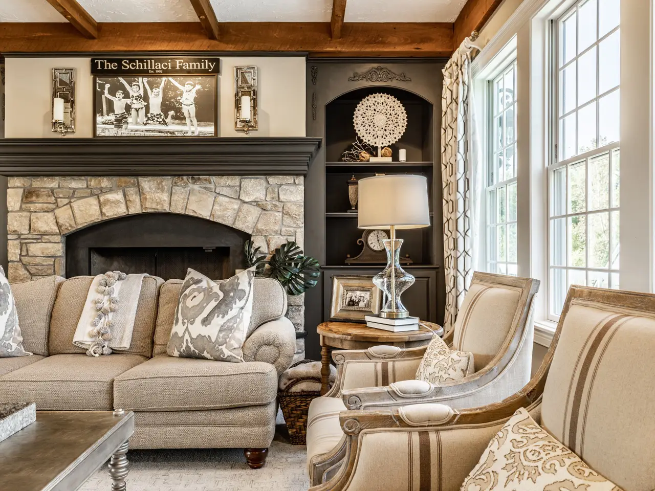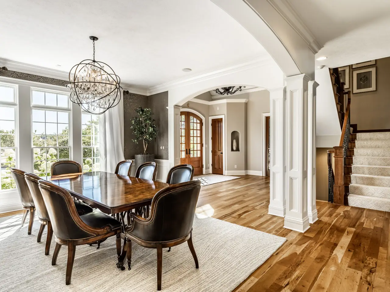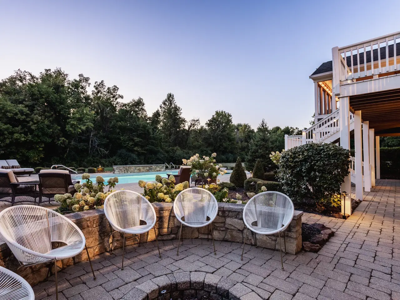Nestled on 4 private acres at the end of a quiet cul-de-sac, this extraordinary 8-bedroom, 7 full and 2 half bath estate offers the perfect blend of elegance, warmth, and everyday livability. It's more than just a house....it's a home. Offering 9,900+ finished square feet, this home was designed with a calming, inviting flow. The enchanting floor plan showcases soaring ceilings, abundant natural light, and exquisite craftsmanship at every turn. The main level features newly refinished hardwoods throughout, anchored by a show-stopping great room with an oversized stone fireplace and coffered ceilings. The dreamy chef's kitchen is a true centerpiece, featuring double commercial-grade gas ovens and ranges, quartz surfaces, custom backlighting, and seamless access to both formal and casual dining areas. The primary suite is a sanctuary of its own, complete with a private sitting room, cozy fireplace, spa-inspired bath, and direct access to the outdoor deck. Up its own private staircase is a fully outfitted in-law/guest suite perfect for extended stays. The finished lower level is equally impressive, bathed in sunlight through two sets of French doors and designed for both entertainment and relaxation. Highlights include a state-of-the-art theater room, full wet bar, wine cellar, exercise room, and two additional fireplaces. Outdoor living is equally spectacular. Framed by lush woods, the in-ground pool with poolhouse creates a resort-like setting, while a basketball court, soccer field and baseball diamond offer endless recreation. Enjoy 'smores by the firepit, watch pool shenanigans, or enjoy a happy hour cocktail from the enormous deck--the choice is all yours. Property parcel includes 2 lots, allowing for additional building options. PVE Elementary and ZMS Middle School.