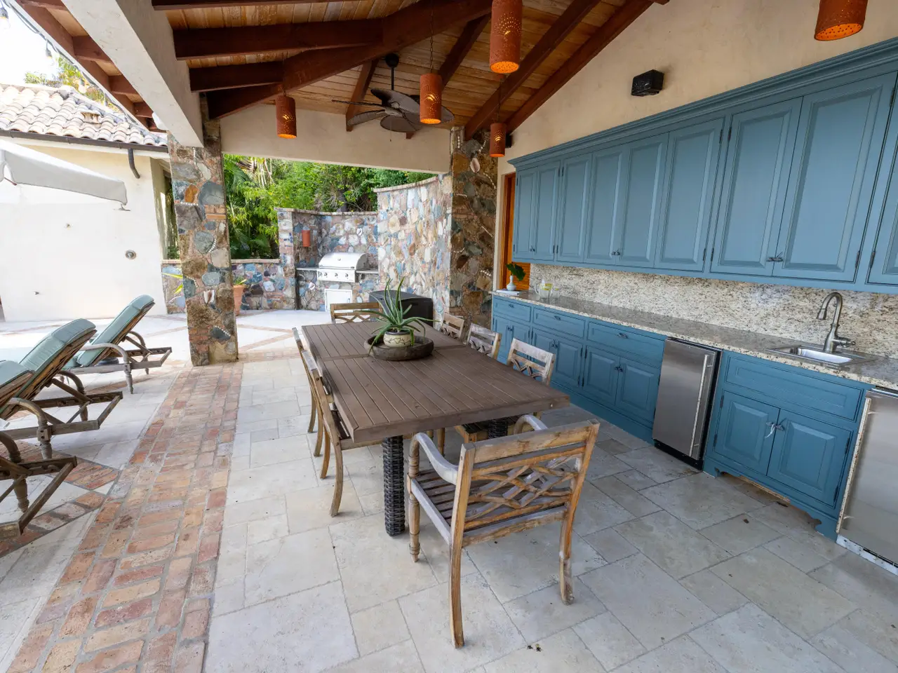 Perched above the sparkling turquoise waters of Dreeket's Bay, La Pura Vida Villa is a masterpiece of island elegance. Designed by Barefoot Architect and built by Alex Brooks, this 5-bedroom, 5-bathroom estate seamlessly blends luxury with sustainability. Sun-drenched interiors feature travertine floors, a chef's kitchen with Sub-Zero and Wolf appliances, and a game room with a bar and pool table. Expansive verandas and an infinity-edge pool with a waterfall create a resort-like retreat. A rare sanctuary where refined comfort meets breathtaking beauty.