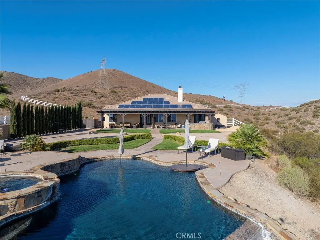 Luxury Meets Privacy at the Top of Star Point Ranch! Panoramic views! Welcome to your dream retreat in Acton, CA — a stunning 5-bedroom, 3-bath estate located in the exclusive Star Point Ranch community. Set on 20 private and fenced acres, this 2,823 sq ft home offers the perfect blend of luxury, seclusion, and breathtaking views. At the end of a long, gated driveway, perched above the neighborhood, this beautifully upgraded home boasts a truly elevated lifestyle. Enjoy an unmatched location, a resort-style infinity pool, paid solar system, solar pool water heater and a fully landscaped property designed for comfort and elegance. The exterior of the house features a custom smooth plaster finish. Room for a large shop with 50 amp power service for RV hookup. Inside, you'll find spacious living areas, modern finishes and thoughtful upgrades throughout. The upgraded kitchen features high end Kitchen Aid appliances and finishes. Custom cabinetry. Open floor plan off kitchen to main living area with fireplace and faux beamed ceiling The primary retreat features a fireplace, exterior entry and the ensuite bathroom offers separate shower and soaking tub with ample closet space. Large formal dining room and oversized living room with fireplace. Step outside to your outdoor kitchen oasis, complete with a built-in BBQ, smoker and wood-fired pizza oven and refrigerator — perfect for entertaining under the stars. Whether you're lounging poolside, enjoying the sunsets, or hosting gatherings, this home offers peaceful privacy without sacrificing convenience — just minutes from the freeway for an easy commute. Luxury. Privacy. Location. This is California living at its finest. Come for a visit. Stay for a lifetime. Welcome home!