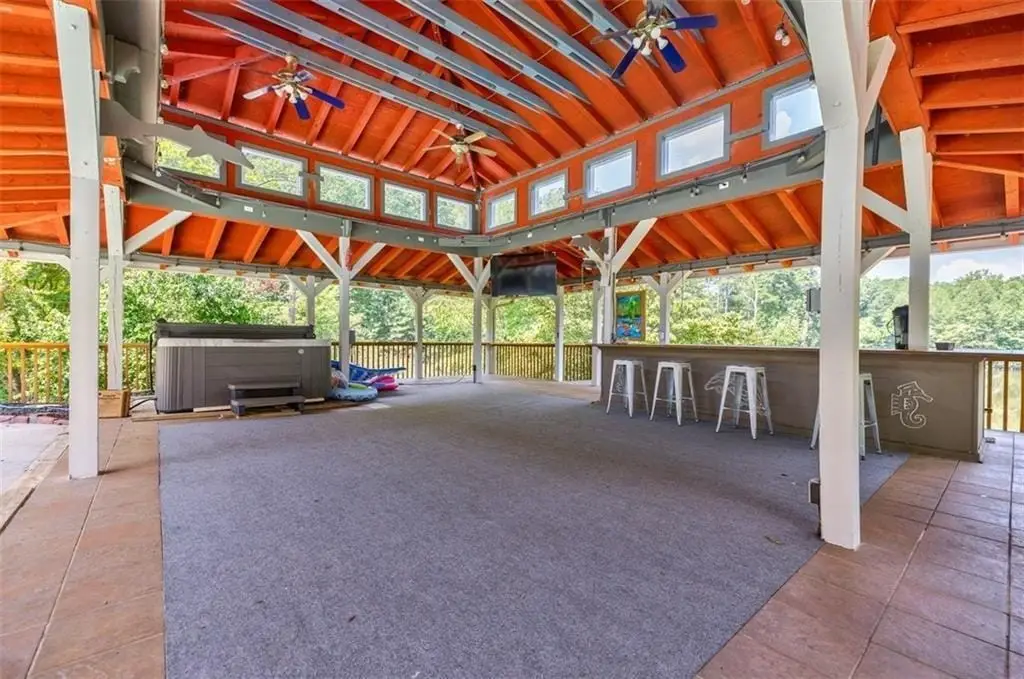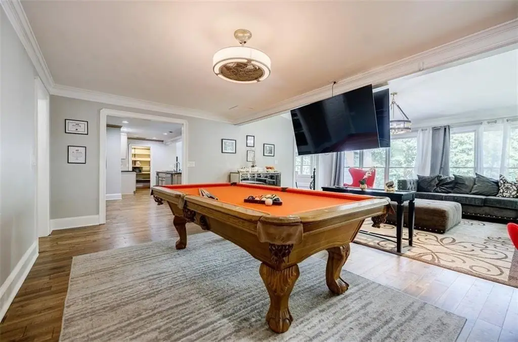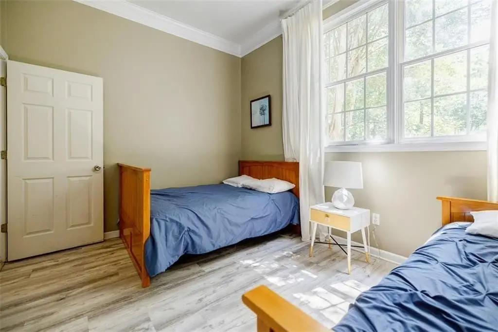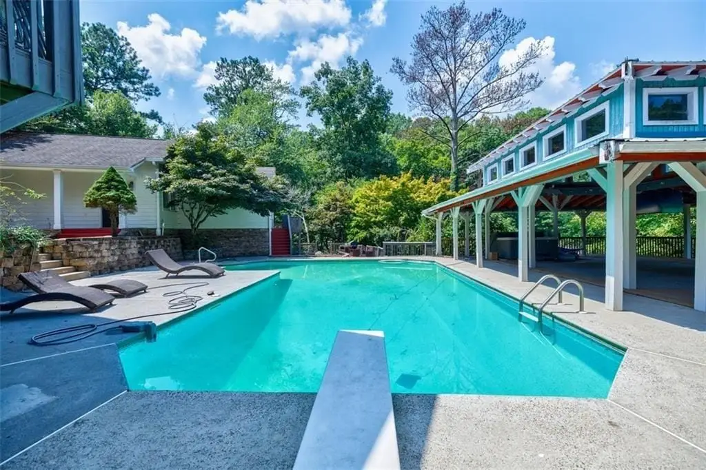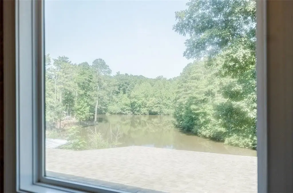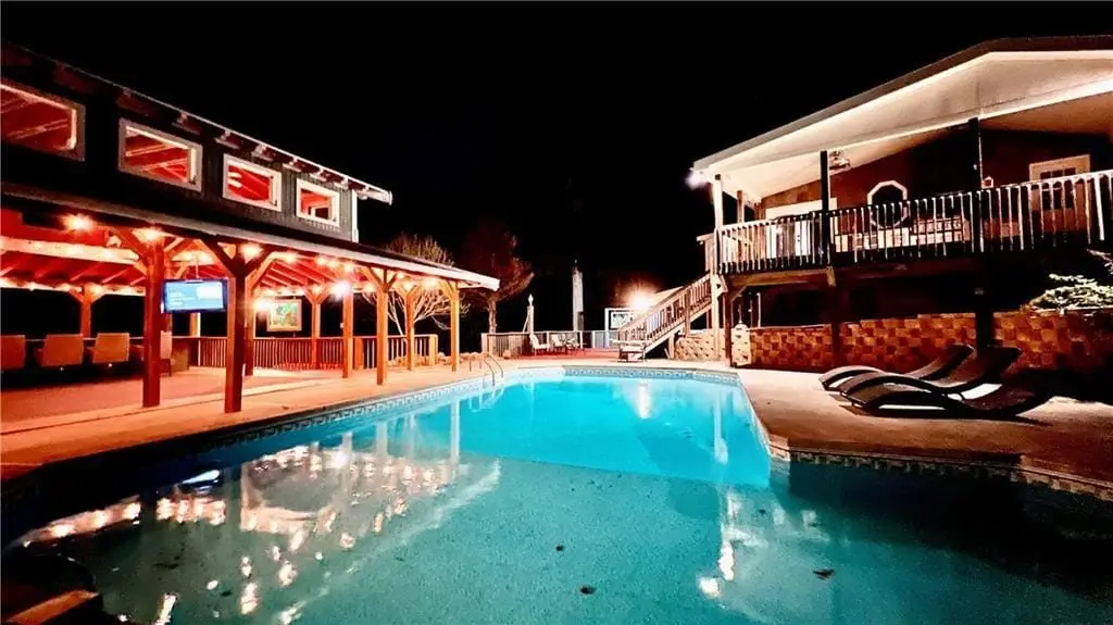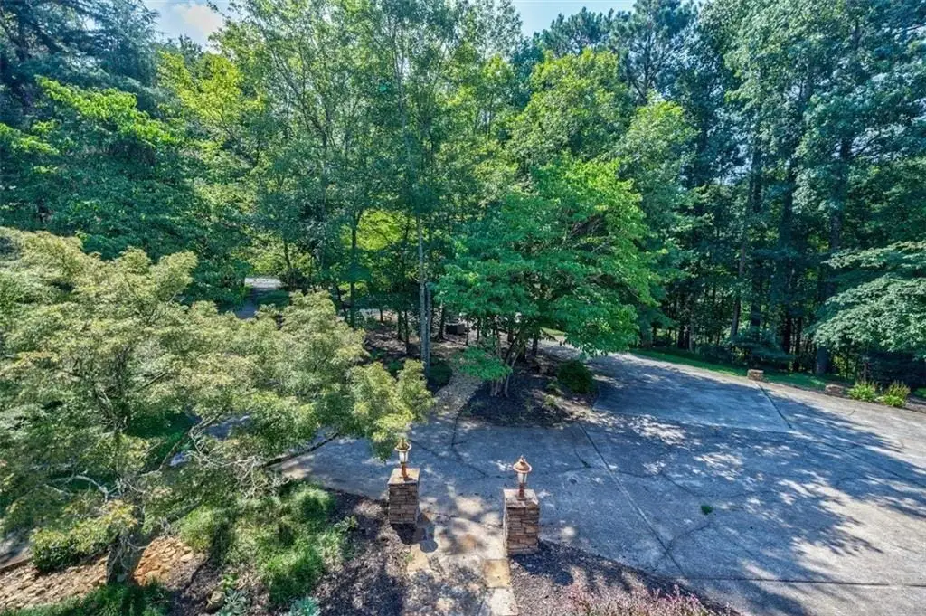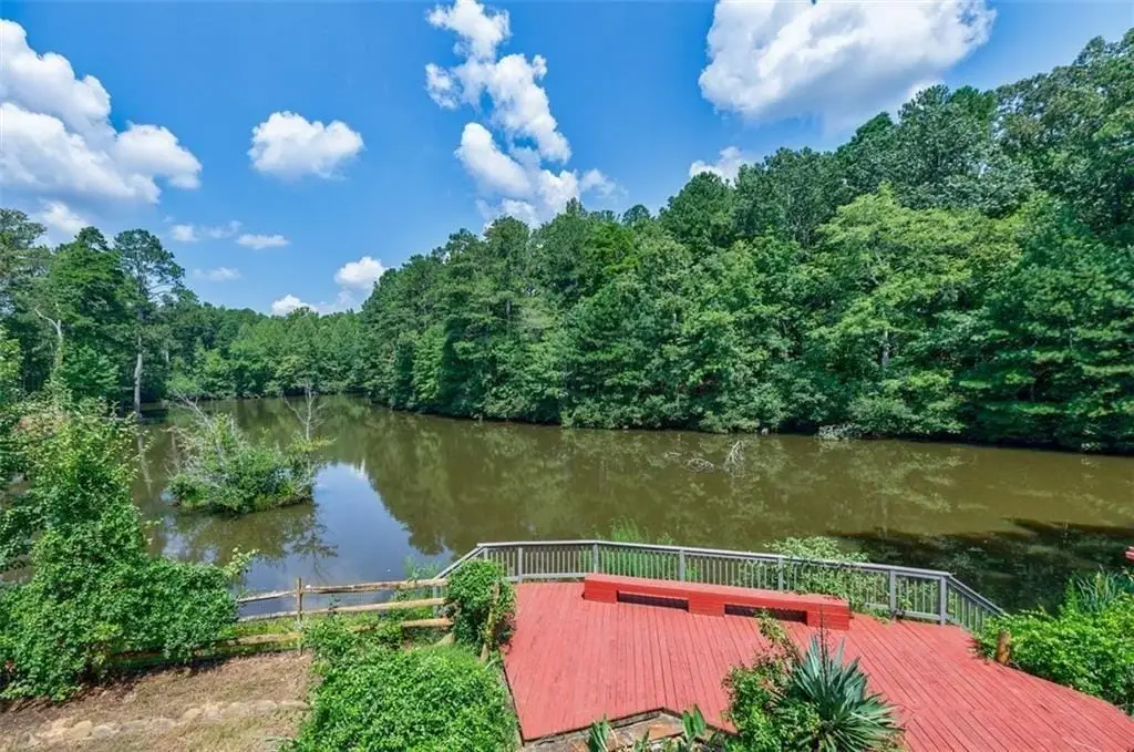 This beautiful home on a cul-de-sac with a guest house on 3.5 private wooded acres, has an in-ground swimming pool with waterfall, overlooking a private shared lake with boat dock. You can lounge on the many decks overlooking the lake, relax in the Hot Tub in the covered pavilion, walk through the landscaped grounds or enjoy time around the outdoor fire area. Outdoor kitchen joins half bath and changing room. The main is house has five bedrooms and three full baths and two half baths. Main house has hardwood floors. The updated kitchen opens to a large den and living room with views of the lake. The finished basement includes living room, game room, 1 bedroom, full bath and flex room. Upstairs is the master bedroom with joining office/den plus two bedrooms, one with coffee bar., and full bath.The guest house has 3 bedrooms 2 full baths and separate parking. Great for guest or rental income. Two storage units,. Lots of space for outdoor garden! Conveniently located near Lakepoint Sports Complex for the active athlete.