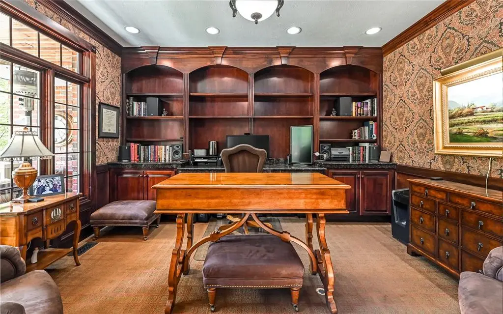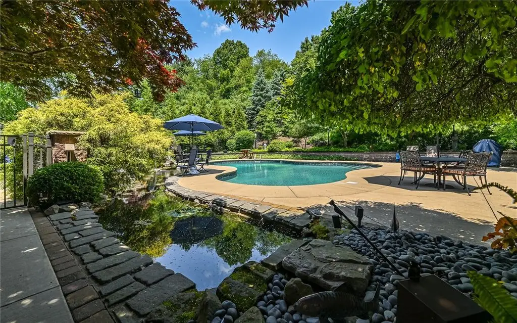 Indulge in luxury living in this custom built all brick home. Tree lined fenced lot is an entertainer's delight w/pool, outdoor kitchen, waterfall & pond. Grand entry leads to dining room & sun-drenched living room w/ floor-to-ceiling windows & fireplace. Inspire your inner chef w/the kitchen featuring Thermador double gas ovens, gas cooktop, Sub-Zero refrigerator, large center island & walk-in pantry. Warm & welcoming family room w/fireplace & French doors to outdoor oasis. Handsome office w/custom cabinetry, laundry room & oversized 3 car attached garage. 2nd level has 5 generous sized bedrooms & 4 full bathrooms. Gracious sized primary suite & sitting room that overlooks the two-story living room w/walk-in closet ensuite bathroom w/ceramic step in shower, jacuzzi tub & double vanity. Embrace the opportunity to create your dream space in this enormous basement w/wood burning fireplace & is pre-plumed for full bathroom. Abundant storage room & direct staircase to garage as well.