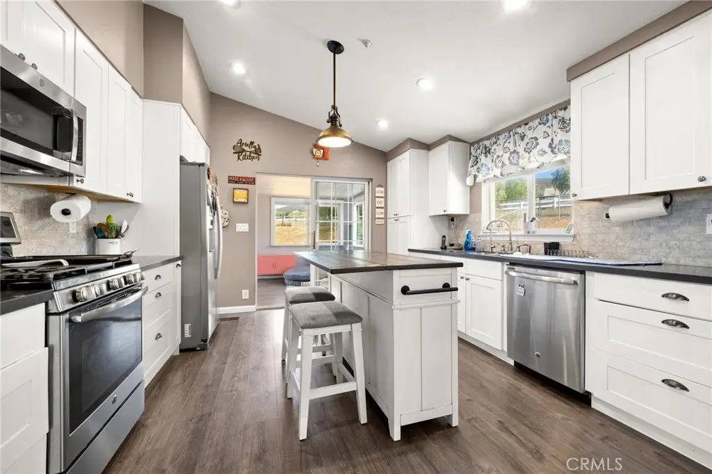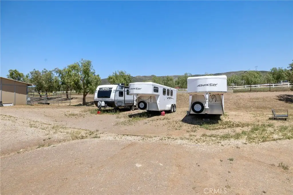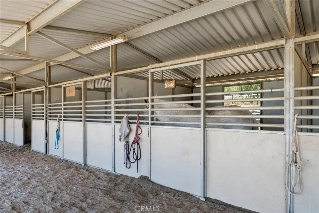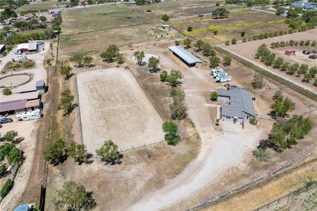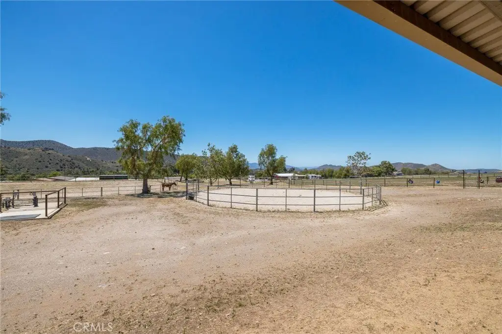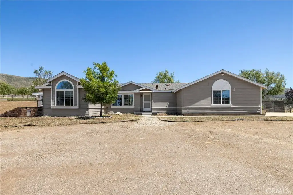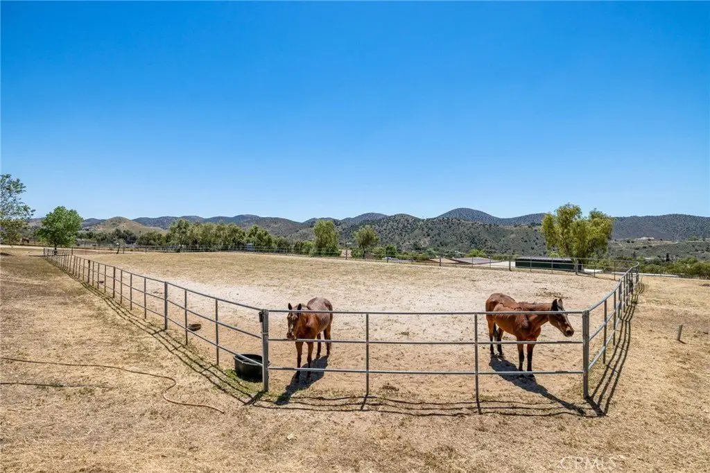 Bring your livestock and look no further, this Agua Dulce ranch has it all. Two primary suites! Incredible home with amazing sunset views. Four bedrooms and four baths. Five-acre horse ranch, perfect for the equestrian lover. Newer roof, air conditioner, exterior and interior painting. Laminate flooring throughout, upgraded appliances and recessed lighting. New water heater and automatic backup Generac propane generator. A two-car attached garage converted to a second primary residence with private full bath, a mini split HVAC, lots of closet space and a separate exterior entrance. The open and bright floor plan features a large living room and dining room open from the kitchen. Ther is a second spacious primary suite with a private full bathroom and a large walk-in closet. The third bedroom has a sliding glass door which leads to a private sitting patio. The fourth bedroom can be used as an office or a gym. The open kitchen leads to an enclosed patio with an exterior access and includes a half bathroom and mini split HVAC. Upgrades include four perimeter Lorax cameras, water purifier system, ring doorbell at the front gate, 220 Volt car charger, wired WIFI boosters, window blinds and door awnings, locked mailbox, solar lights over shed doorway, package drop off box in front of gate, above ring doorbell camera, and over address sign on the street. Multiple sensor lights around outside perimeter of the house. The back of the house is fenced with two gates perfect for a dog yard. There is an extra-large Tuff shed on a concrete slab with shelving and loft. There is also a partially completed outdoor kitchen. Private location has an upgraded electric gated entrance and is fully fenced and cross fenced with steel pipe fencing with no climb wire and forty mature trees. Horse facilities include a FCP six stall shed row barn (could be eight) with hay shed, tack room and wired lined corrals. There is a large (100 x 300) sand arena with footing and paneling and a sixty-foot round pen with sand and DG base. There is also a 2.5-acre cross fenced pasture with large shader. With panoramic sunset views, you just found your slice of heaven. Come for a visit. Stay for a lifetime. Welcome home!