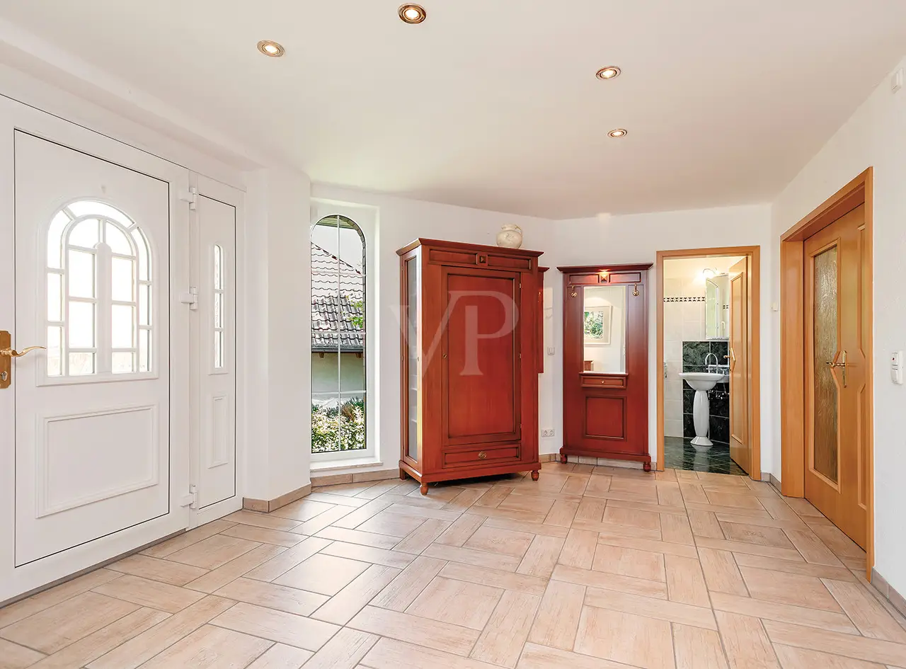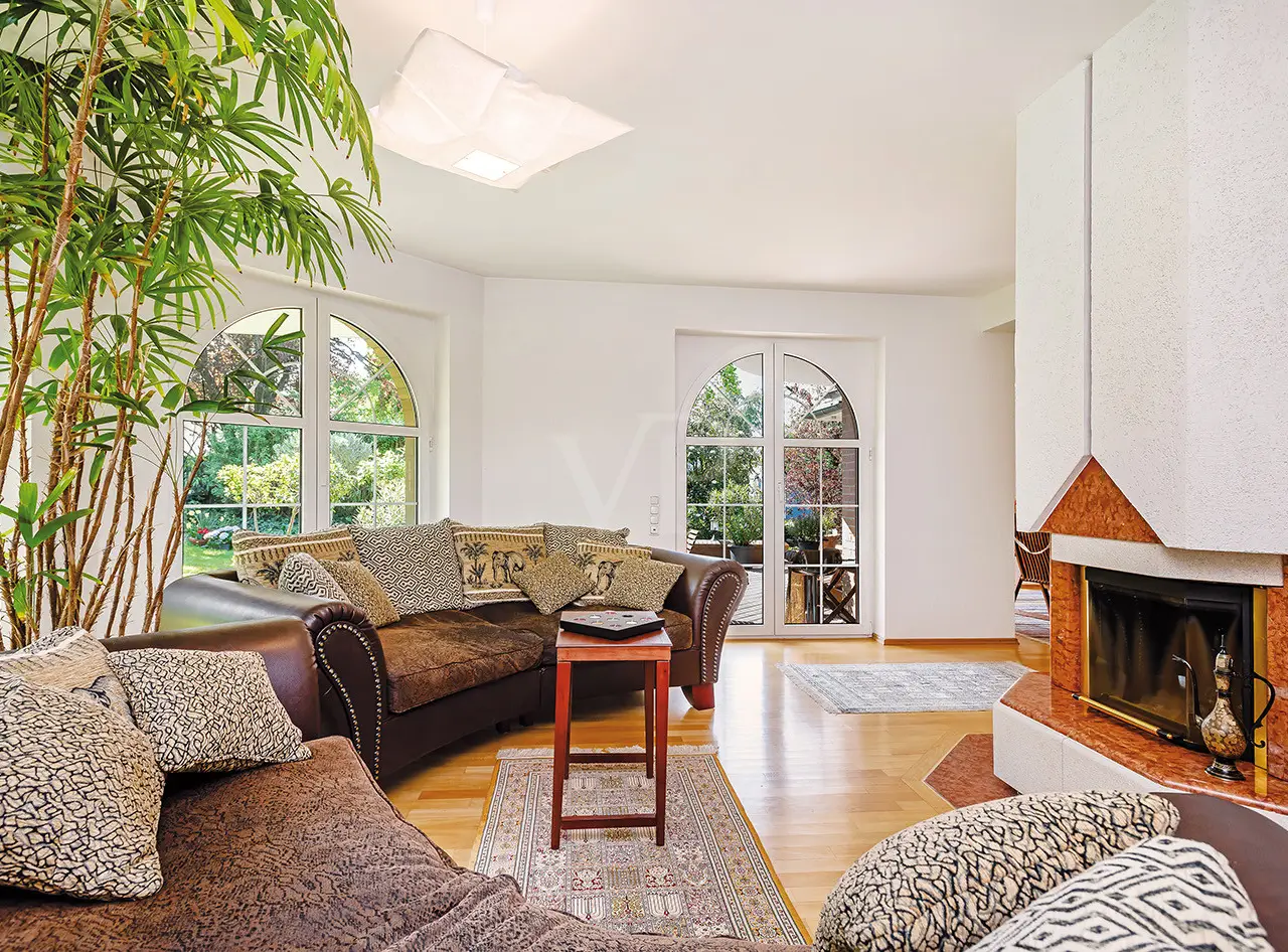 In a quiet residential street, just a stone's throw from the vibrant heart of the city, an architectural gem is revealed that impressively combines individuality, quality and security. This extraordinary architect-designed house in solid construction is more than just a home - it is a place to arrive, live and enjoy. Even the high-quality clinker brick façade gives an idea of the care and sense of style that went into the planning and implementation. The elegant building is crowned by an elegant natural slate pitched roof with a bat dormer - a real statement in terms of durability and aesthetics. The interior of the house impresses with a well thought-out room composition and fittings that meet even the highest demands. The heated full basement with an integrated underground garage for two vehicles not only offers generous storage space, but also comfort and security at the highest level - a secure archive in the basement and an alarm system underline the very special security concept of this property. A modern lightning protection system provides additional protection and peace of mind in stormy times. A water softening system protects the pipes and appliances from limescale. Comfortably warm underfoot thanks to underfloor heating, supplemented by classic radiators, you will find a pleasant climate in every room. The floors are a stylish interplay of high-quality parquet, tasteful tiles and soft carpet - each room radiates its own harmonious atmosphere. Two elegantly appointed bathrooms offer space for individuality and comfort, whether for the family or guests. The modern fitted kitchen, equipped with first-class Miele appliances, invites you to cook, enjoy and linger - a real center of the house. Two balconies offer airy views, while the 40 m² terrace leads directly into the well-tended, lush garden - a green oasis where time seems to stand still. Here you can start or end the day in peace and quiet - surrounded by birdsong, flowering shrubs and plenty of space for relaxation. This house is a retreat with a soul - carefully embedded in a mature neighborhood, quiet and yet central. A place that combines the best of both worlds: the peaceful seclusion of a stylish home and the immediate proximity to vibrant city life.