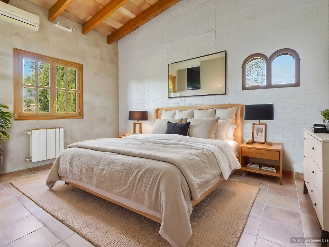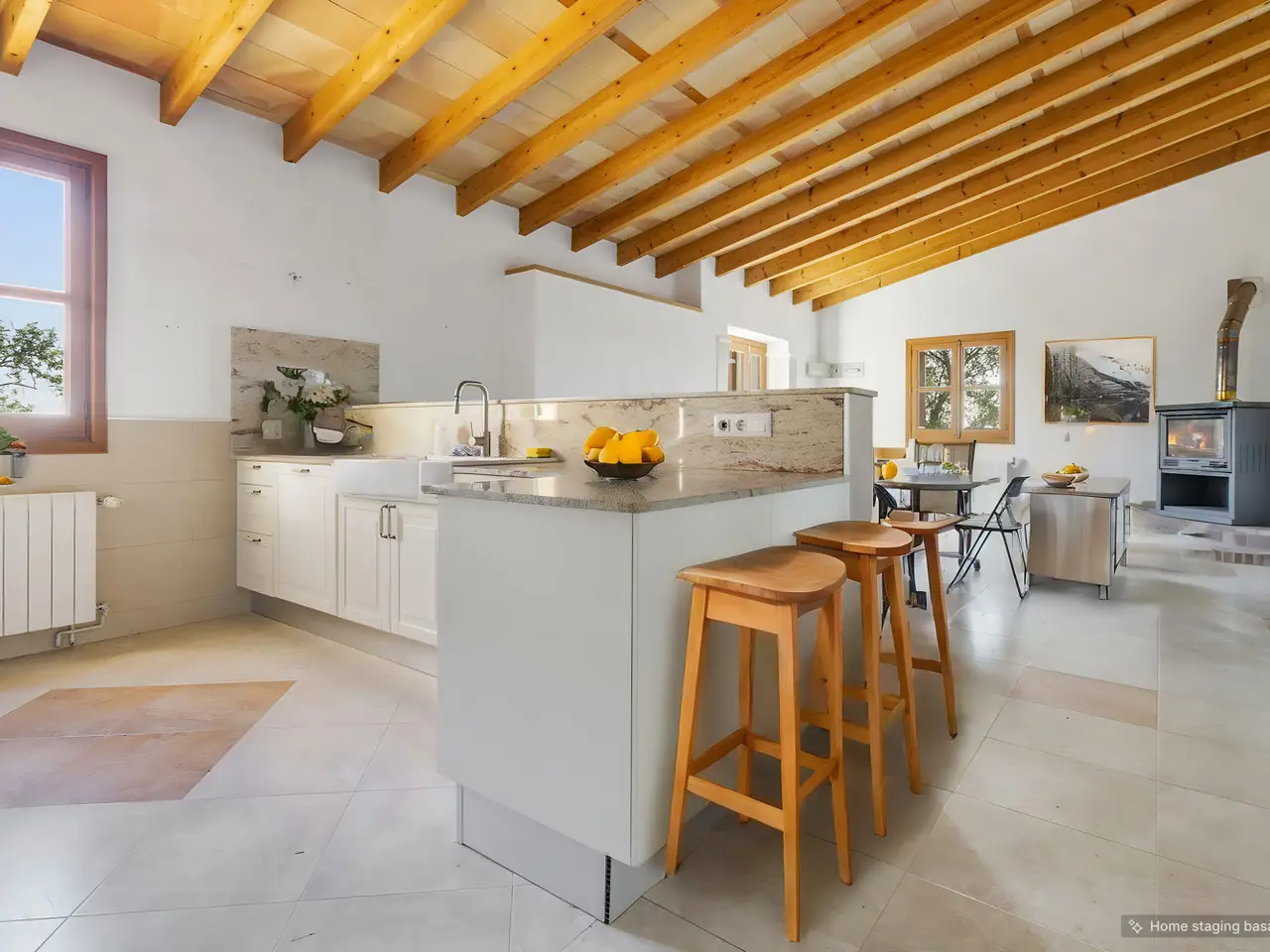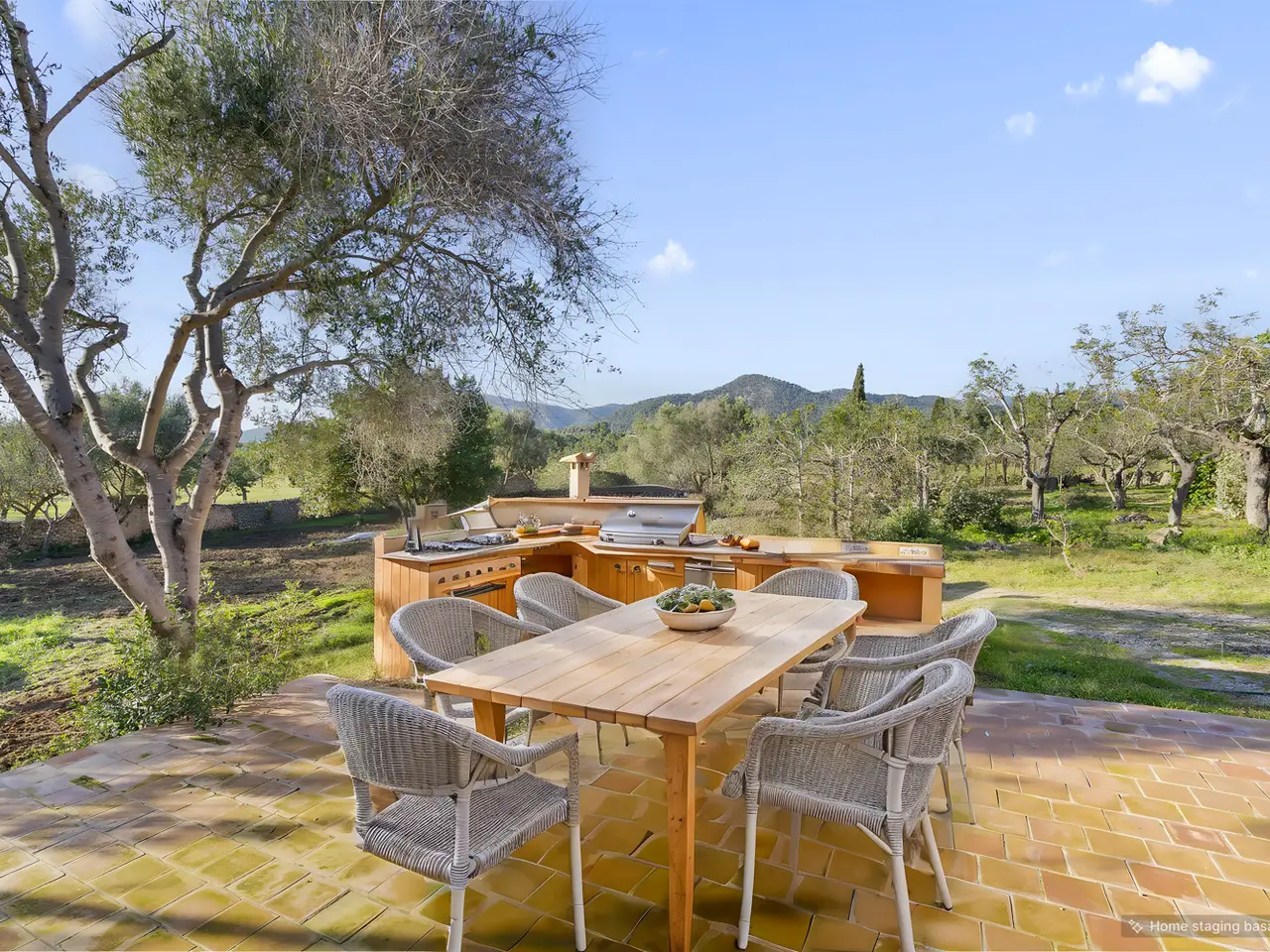 For sale is a finca with potential that was built in 1996. The constructed area of the property is approximately 170 m² and offers the possibility of extending the area by a further 170 m², which offers additional design freedom for individual living dreams. The house has a total of four rooms, including three spacious bedrooms, which offer enough space for the whole family. Two bathrooms provide additional comfort and are modernly equipped. The condition of the property is well maintained and promises a comfortable living experience. At the heart of the finca is the bright living room, which is equipped with a large fireplace. This creates a cozy atmosphere and invites you to spend relaxed evenings. The open fitted kitchen is functional and, together with the living room, forms the center of the living space. The finca extends over a spacious plot of approx. 4093 m². The surrounding nature of fruit and olive trees offers a charming backdrop and harmonizes perfectly with the overall image of the property. From the terrace you can enjoy an impressive mountain panorama that creates a special ambience in every season. Practical features of the finca include its own well and a photovoltaic system, which guarantee an environmentally friendly energy supply. There is a parking space available for vehicles. The garden not only offers space to relax, but also to grow your own fruit trees, which supports a sustainable lifestyle. The property is ideal for buyers who value a quiet location in the middle of nature and at the same time do not want to do without modern amenities. The possibility of expanding the living space also makes it particularly interesting. In summary, this well-maintained finca, with its harmonious location between Santa Maria del Camí and Alaró and the possibility of expansion, is ideal for families and nature lovers who are looking for a mix of modern living and life close to nature. If you are interested in a viewing or further information, we are happy to help. Do not hesitate to contact us for personal advice. We look forward to your inquiry. Alaró is located in the heart of Mallorca, about 26 km from Palma, in the Tramuntana Mountains. The municipality is known for the Alaró mountain (825 m) with the historic Alaró Castle and the Alcadena mountain (817 m). Its history dates back to the Talayotic era. The castle fortress was first mentioned in the 12th century, is located on a mountain peak and offers stunning panoramic views over the island. There is an inn there and you can also stay overnight. The climb is a popular hiking route for nature lovers and history buffs. The Gothic church of Sant Bartomeu, in the center, is surrounded by cozy cafes and restaurants. In the late 19th century, industrialization and innovation made Alaró the first town in Mallorca with electric lighting and the first cinema. Today the town is a popular starting point for hikers and cyclists. The region is known for its olive groves and wineries, which offer first-class local products. Alaró celebrates on June 29th in honour of San Pedro and the week before August 16th in honour of San Roque, with traditional dances such as the Cossiers dance. Alaró has many restaurants, hotels, agrotourism farms and cultural events, such as the organ concerts in the church of Sant Bartomeu. The lively village life, coupled with the proximity to Palma and the island's beaches, makes Alaró a desirable place to live. Discover the beauty and charm of this unique village - an ideal investment for property buyers looking for authenticity and tranquility. - Terraces - Garden with fruit trees - Well - Photovoltaic system - Parking space We generally recommend having the building law situation checked by a specialist lawyer. All information is based exclusively on information provided by the owner or client. We do not guarantee that the information is complete, correct or up-to-date. The brokerage fee is borne by the seller. Taxes incurred on the purchase, notary and land registry costs are to be borne by the buyer.