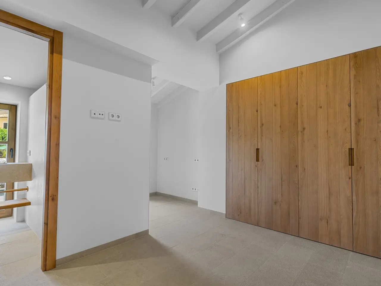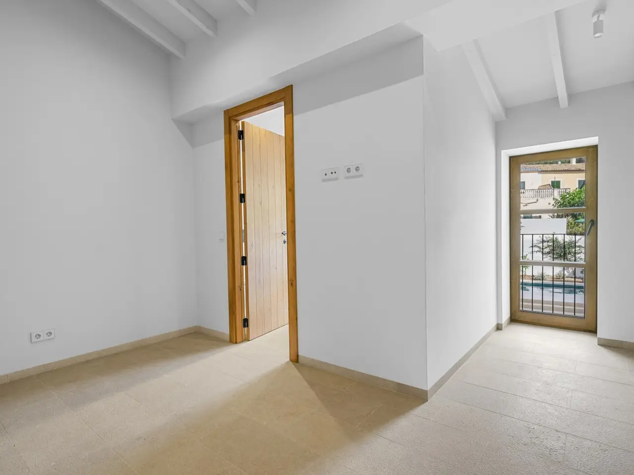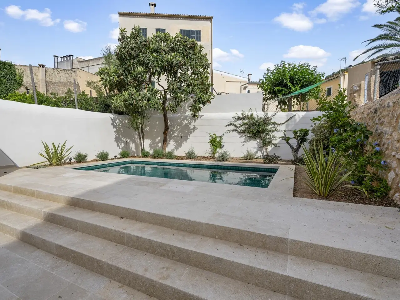Discover a unique townhouse in the picturesque village of Alaró, built in 1900 and completely renovated. This exclusive property combines the highest elegance and modern living comfort on a living space of approx. 233 m². Set on a plot of approx. 274 m², this charming house extends over two floors. On the first floor, you will find an open, light-flooded living concept with flowing transitions between a stylish dining area and a modern, open fitted kitchen. From here, you have direct access to the idyllic garden, which has a private swimming pool that invites you to relax. The attention to detail is reflected in the elegant tiled and natural stone floors, which together with a fireplace create a warm and inviting atmosphere. The upper floor houses three spacious bedrooms, each with a luxurious en-suite bathroom. The bathrooms are finished with stylish micro-cement surfaces and brushed copper fittings by Iconico, while skylights provide natural light accents. The exclusive interior design is harmoniously rounded off by custom-made doors and fittings made of high-quality oak and a minimalist country-style kitchen with charming wooden fronts. The entire house has underfloor heating and is air-conditioned to ensure a pleasant living climate all year round. This townhouse in Alaró is not only a dream home, but also an investment in stylish and comfortable living. Be inspired by the perfect symbiosis of modernity and rustic charm.