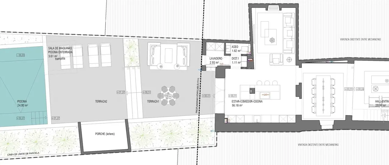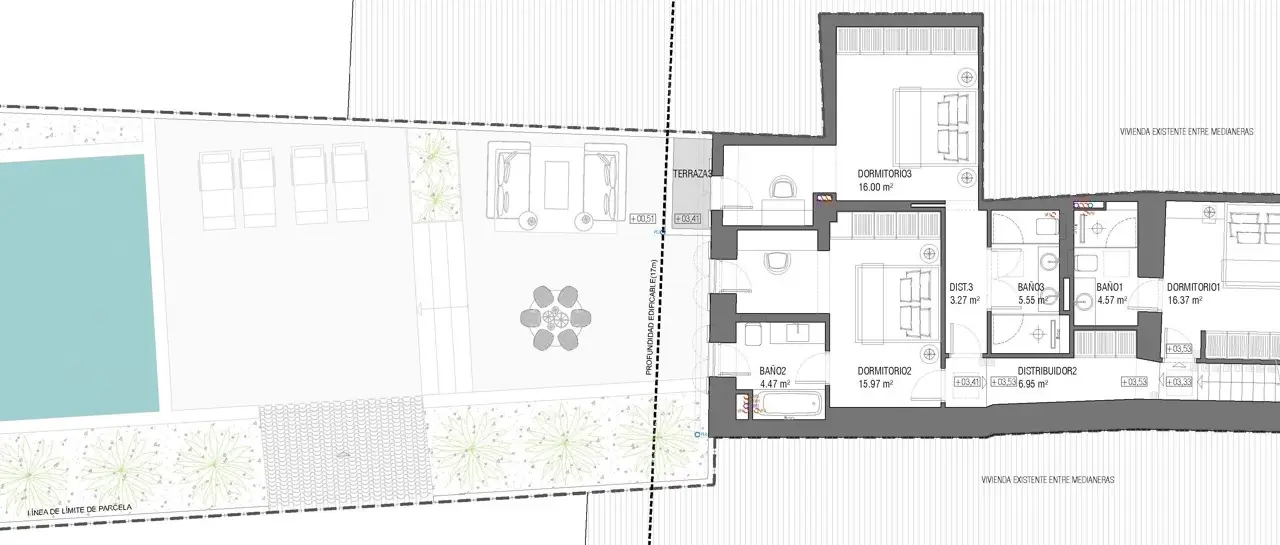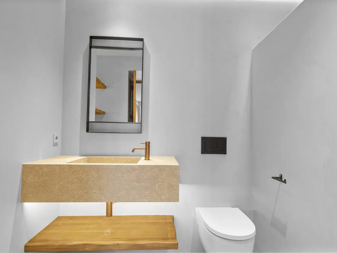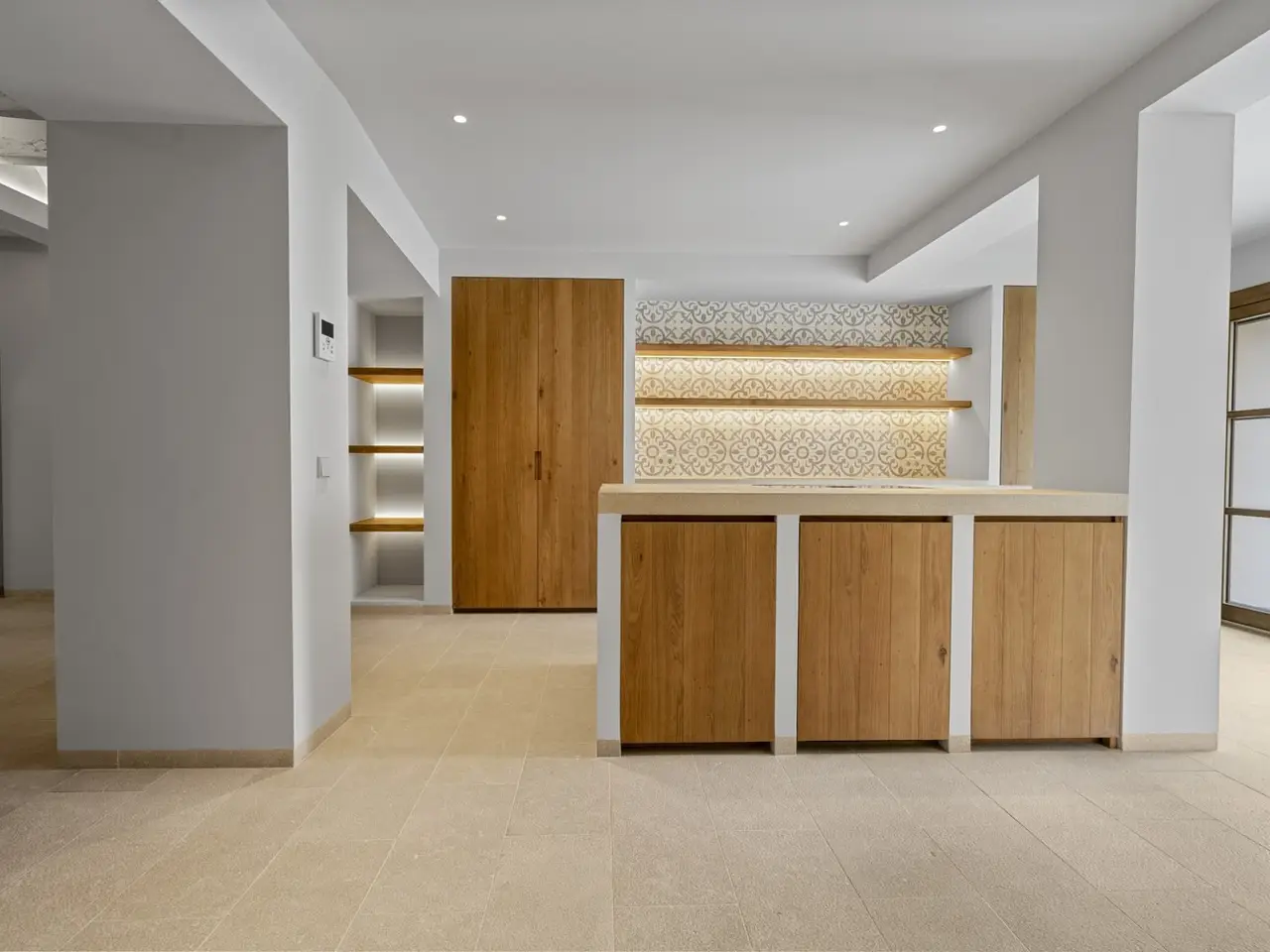 Discover a unique townhouse in the picturesque village of Alaró, built in 1900 and completely renovated. This exclusive property combines the highest elegance and modern living comfort on a living space of approx. 233 m². Set on a plot of approx. 274 m², this charming house extends over two floors. On the first floor, you will find an open, light-flooded living concept with flowing transitions between a stylish dining area and a modern, open fitted kitchen. From here, you have direct access to the idyllic garden, which has a private swimming pool that invites you to relax. The attention to detail is reflected in the elegant tiled and natural stone floors, which together with a fireplace create a warm and inviting atmosphere. The upper floor houses three spacious bedrooms, each with a luxurious en-suite bathroom. The bathrooms are finished with stylish micro-cement surfaces and brushed copper fittings by Iconico, while skylights provide natural light accents. The exclusive interior design is harmoniously rounded off by custom-made doors and fittings made of high-quality oak and a minimalist country-style kitchen with charming wooden fronts. The entire house has underfloor heating and is air-conditioned to ensure a pleasant living climate all year round. This townhouse in Alaró is not only a dream home, but also an investment in stylish and comfortable living. Be inspired by the perfect symbiosis of modernity and rustic charm.