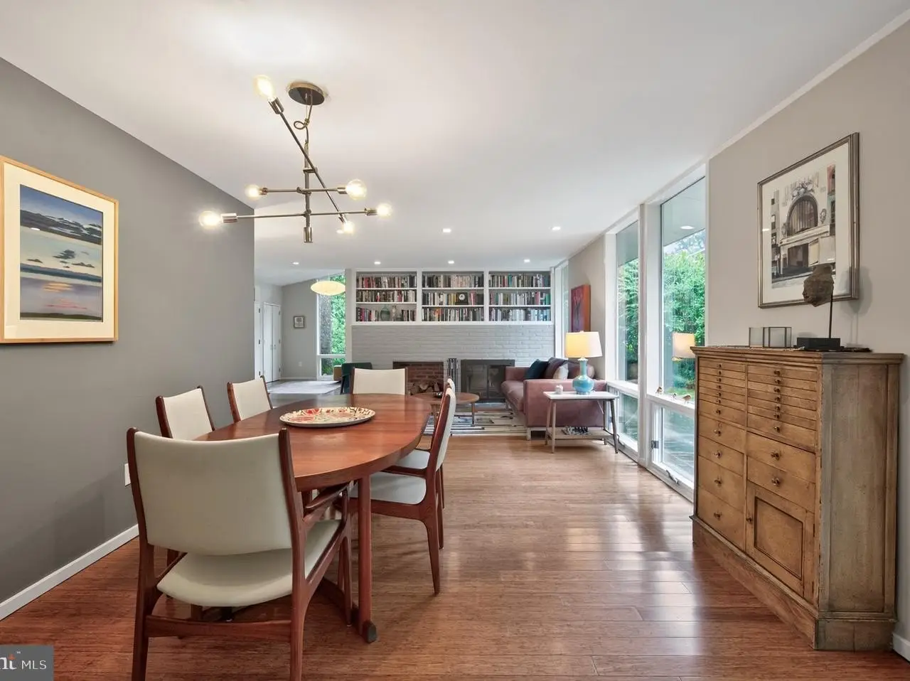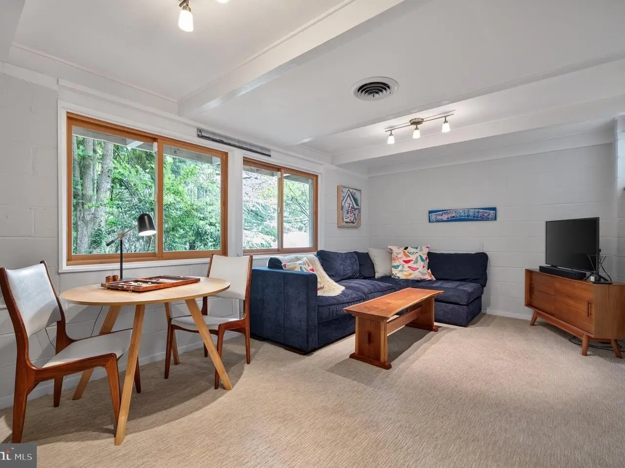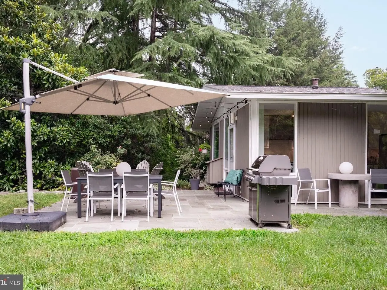 This extraordinary Mid-Century Modern home designed by Architect Charles Goodman is located in the highly sought-after Hollin Hills community. Home has been thoughtfully expanded to over 2,300 square feet with additions by renowned architects Casper Neer and Eason Cross. Extensively remodeled while preserving its iconic MCM charm, the home welcomes you with an impressive entry foyer featuring soaring ceilings, a coat closet, and a striking bubble chandelier. A private home office boasts a brick wall with built-in shelving, ideal for work or study. The open-concept living spaces include a welcoming living room and cozy family room with a wood-burning fireplace and custom built-in bookshelves, as well as a separate dining room perfect for entertaining. The custom kitchen features a large center island with seating, granite countertops, stainless steel appliances, and direct access to the patio, making it a true centerpiece of the home. The main level includes a spacious primary suite with a built-in dresser, a large custom closet, and a beautifully remodeled en-suite bathroom showcasing a walk-in shower with custom marble tile. A second main-level bedroom offers a custom closet organizer and light filled windows. There is another remodeled full bathroom, complete with a skylight. A convenient main-level laundry closet adds to the home's functionality. Upstairs, two additional bedrooms offer access to a Juliet balcony, with one bedroom featuring a walk-in closet. The large, sunlit lower-level recreation room provides additional living space, ideal for relaxing or entertaining as well as additional storage. Outdoor features include extensive hardscaping with a concrete driveway, slate patios and walkways that wrap around the home. The private, flat backyard is surrounded by mature landscaping and offers an ideal setting for outdoor gatherings. Additional storage is provided by both a detached outdoor shed and an attached exterior shed. With double-pane windows throughout and exceptional attention to detail, this home is filled with character and timeless style. Hollin Hills offers membership to 2 community pools as well as membership to a tennis and pickleball club. The scenic neighborhood boasts 7 parks, trails, an active Civic Association with seasonal celebrations, delicious super society and a friendly, close-knit environment. A commuter's dream location minutes from GW Parkway and trails, DC & the Pentagon; and south to Fort Belvoir, or north to Andrews AFB & Tysons Corner via I-495. This special address is an idyllic sanctuary to call home!