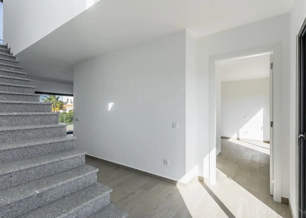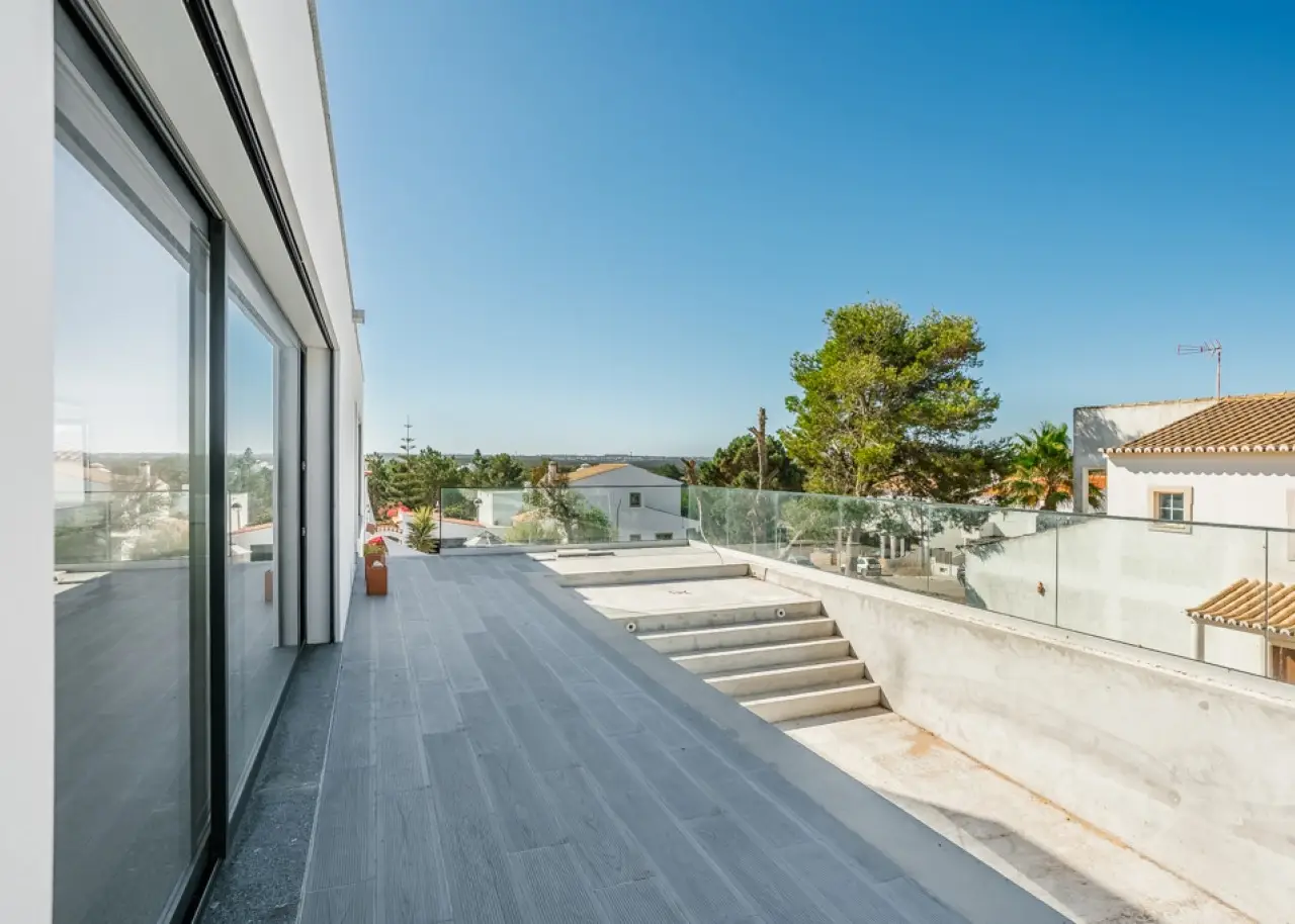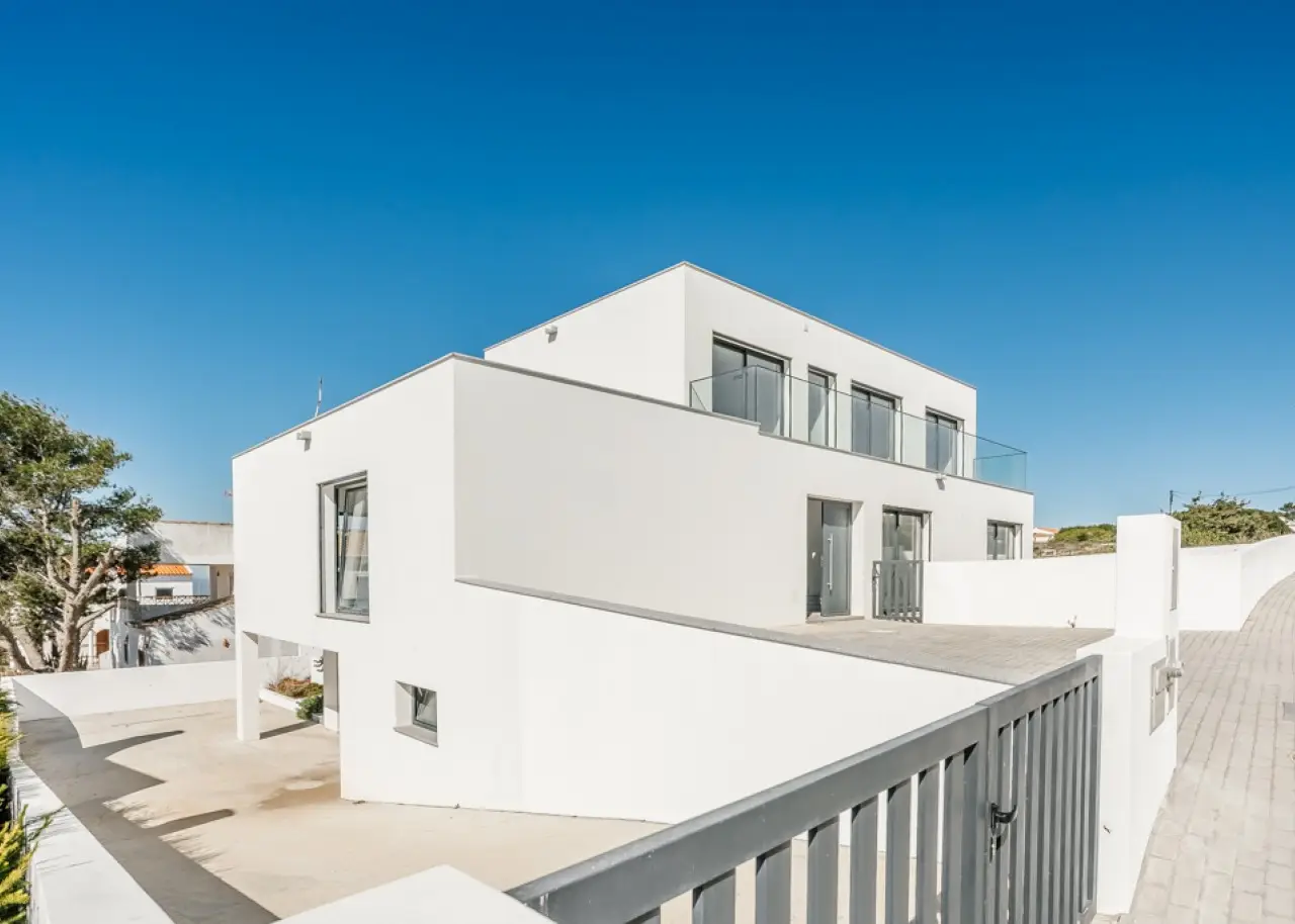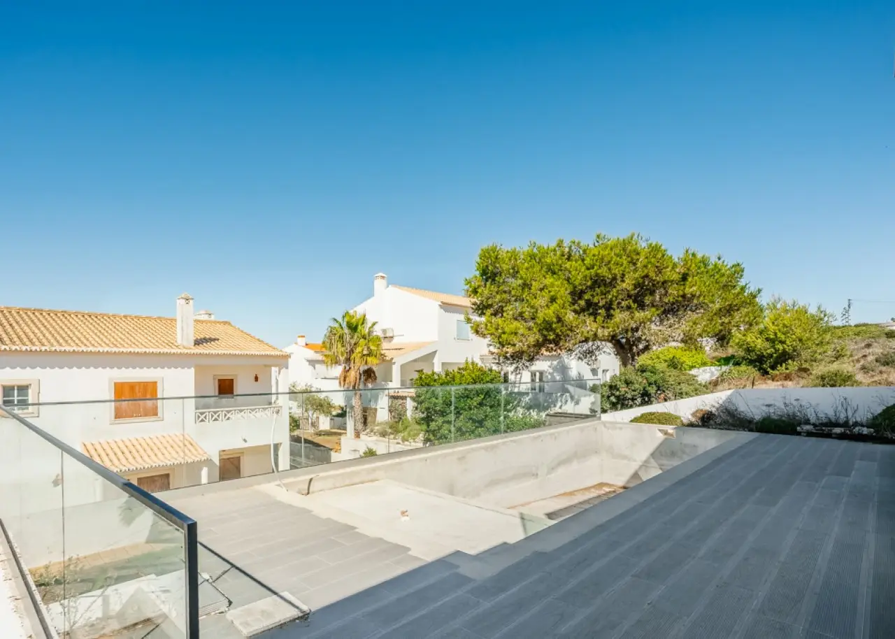 Modern 4-bedroom villa for sale in Aljezur, about 5 minutes from Monte Clérigo beach in the Algarve. Recently built with attention to detail, the villa has three floors, including a garage in the basement. On the main floor is the living area, with the kitchen equipped with modern, efficient appliances and an island, with plenty of space for storage and preparing meals. It's an open and spacious space, in harmony with the living room, with large windows, making the space full of natural light and welcoming. From the large living room there is access through the large windows to the outside, namely to the terrace and swimming pool. Also on this floor is a bathroom and a spacious bedroom with an en-suite bathroom, with direct access to the garden. On the upper floor are the remaining three good-sized bedrooms, all with en-suite bathrooms and a fantastic balcony. The villa is equipped with air conditioning in every room, and the windows have electric shutters. The large basement can be used as a garage for up to 6 cars, or part of the space can be used as a games room, cinema or gym. With a privileged location, in a protected area of the Costa Vicentina Natural Park, next to Monte Clérigo beach and close to Arrifana beach, it is around 80 minutes from Faro International Airport. For lovers of nature and water sports, Aljezur is an excellent area for hiking, mountain biking and surfing. CHARACTERISTICS: Plot Area: 465 m2 | 5 005 sq ft Area: 233 m2 | 2 503 sq ft Deployment Area: 150 m2 | 1 615 sq ft Bedrooms: 4 Bathrooms: 5 Garage: 2 Energy efficiency: A+ FEATURES: 4 bedrooms Equipped kitchen Garden Swimming pool Garage Balconies / Terrace