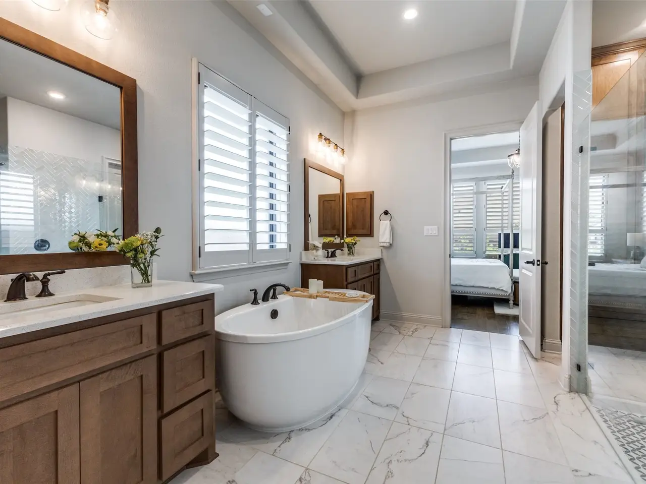 Where luxury meets comfort - your dream home awaits! This modern, chic Toll Brothers masterpiece in the heart of Allen combines stylish design, thoughtful functionality, and exceptional craftsmanship. The open-concept floor plan is perfect for both vibrant entertaining and effortless everyday living. The main living area flows seamlessly into the designer kitchen and casual dining space, creating the true heart of the home. The gourmet chefs kitchen features a six-burner cooktop, oversized island, double ovens, stunning cabinetry, and a walk-in pantry, making every meal a delight to prepare. The luxurious primary suite offers a private retreat with a spa-inspired bath, while a secluded home office provides the perfect space for work or study. Ideal for guests or multi-generational living, the main floor also includes a secondary bedroom with its own ensuite bath. Upstairs, the ultimate game room awaits complete with built-in cabinetry and a full bar ideal for lively gatherings or cozy movie nights. Two additional spacious bedrooms complete the second level. Outdoor living is just as impressive, with three distinct retreats: sip your morning coffee on the covered front porch, relax with a book on the back patio, or enjoy dinner in the gorgeous tiled courtyard at the heart of the home. Large windows fill every space with natural light, creating a bright, calming atmosphere. Additional features include multiple organization zones, ample storage, an efficient HVAC system, tankless water heater, and three car garage. Located near Central Expressway, Hwy 121, top dining, shopping, and scenic trails - this home truly has it all.
