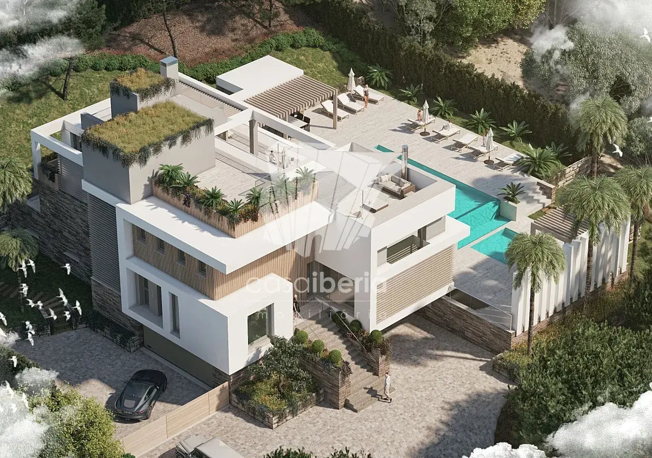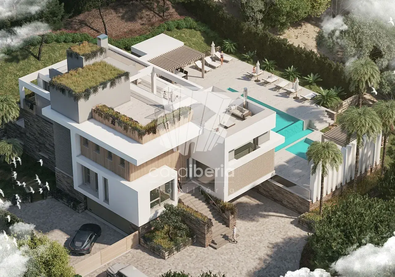 6 Bedroom Villa in Quinta do Lago This majestic villa, with six bedrooms and six bathrooms, is a true symbol of refinement and sophistication. Located in the prestigious Quinta do Lago, one of the most exclusive and desirable areas in the Algarve, with a total area of 732m2, this property exudes elegance in every detail. As you enter this magnificent residence, you are greeted by a charming office, a modern, fully-equipped kitchen, a spacious storage area and a stunning open-plan living room, which leads out onto a generous terrace with direct access to the outdoor pool area. On the ground floor, there are two cosy guest bedrooms, ideal for hosting family and friends. On the upper floor, there are two more stunning bedrooms with en-suite bathrooms, large walk-in wardrobes and breathtaking terraces with privileged views of the surrounding area. One of the many highlights of this property is the panoramic rooftop terrace, full of varied leisure and comfort areas, where you can enjoy unique moments outdoors. For the comfort of the residents, the villa also has a garage for two cars, two spacious additional bedrooms and an elegant wine cellar. The harmonious layout of the interior and exterior spaces of this magnificent villa provides an atmosphere of serenity and refinement, where the lush gardens, large covered terrace, swimming pool and jacuzzi with barbecue area and bar stand out as the perfect setting for memorable moments of conviviality and recreation.
