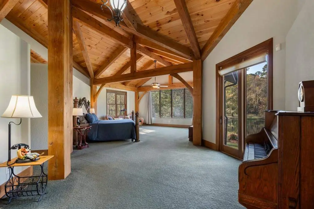 Nestled on over 16 +/- acres, this custom-built home is truly a unique gem. This astounding property features; expansive picture-book grounds, a serene pond, a detached four-car garage with a finished loft space and so much more. As you approach this stunning home you will begin to notice all the intricate details; greeted by the eclectic charm of this impressive home, from the white oak beams, the lofty vaulted ceilings, and intricately designed iron railings, to the floor-to-ceiling windows that fill the home with warmth and light, this home offers a quiet oasis. The main floor has designated spaces while also offering an open floor plan; including a cozy library and office, a formal dining room, a theatre room, and a well-appointed kitchen complete with a walk-in pantry. The chef's kitchen boasts a charming breakfast nook that overlooks the scenic landscape, two dishwashers, stainless steel appliances, and a kitchen island made of exquisite cut stone. This culinary space flows beautifully into the living room, where family and friends can gather around the handcrafted fireplace while enjoying views of the tranquil pond. Venturing beyond the living room, you'll discover the expansive primary suite with two custom closets, a linen closet, and a luxurious spa-like bath featuring a soaking tub adorned with a stained glass window, a custom stone shower, and charming separate vanities. Additionally, on the main floor, you will find a bonus room that is ideal as a guest room or office space and a fully equipped laundry room. As you make your way up the staircase, you'll come across two cozy loft spaces, a billiards and game room, and a quaint living space with a Juliet balcony overlooking the beautiful landscape. There are three guest suites on this level, each with oversized closets and adjoining Jack and Jill baths. The stone wrap-around porches are truly magnificent and perfect for a rocking chair or swing to enjoy the tranquil outdoors. The four-car garage is the perfect setup for a workshop and great for car enthusiasts. The added office and flex space upstairs add extra convenience to the home. Seamlessly blending elegance and charm this home is beautifully designed inside and out, from the flagstone pathways that guide you to tranquil outdoor spaces, great for gatherings and peaceful retreats to the intricately designed beams inside the home, no detail is missed